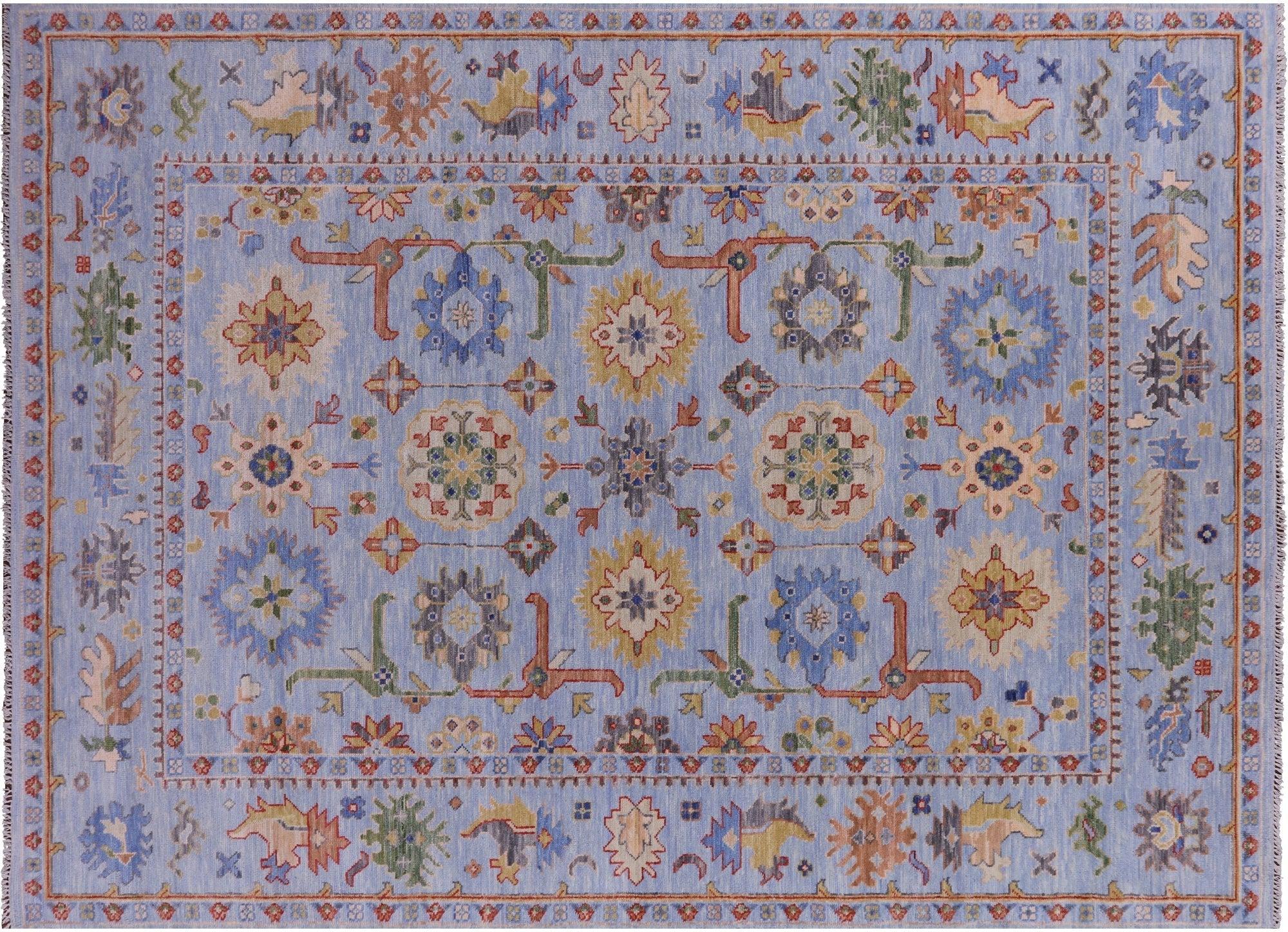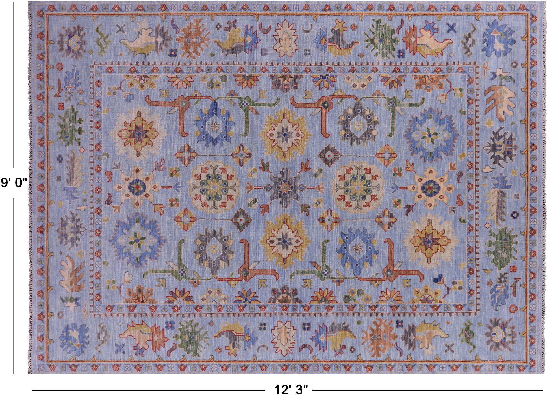 Blue Turkish Angora Oushak Hand-Knotted Wool Rug 9' 0" X 12' 3" - Q15418