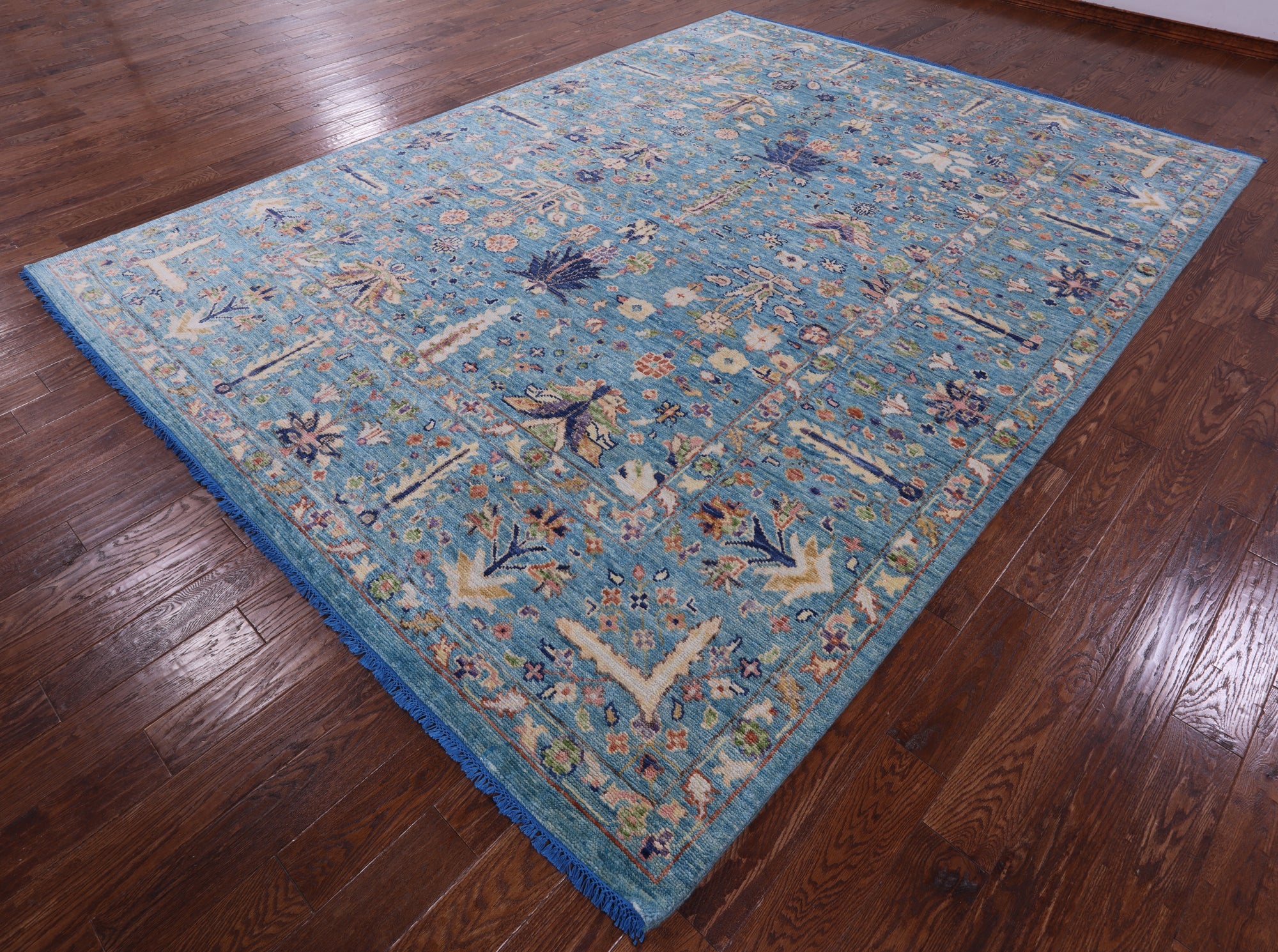 Blue Turkish Angora Oushak Hand-Knotted Wool Rug 9' 3" X 12' 5" - Q15595