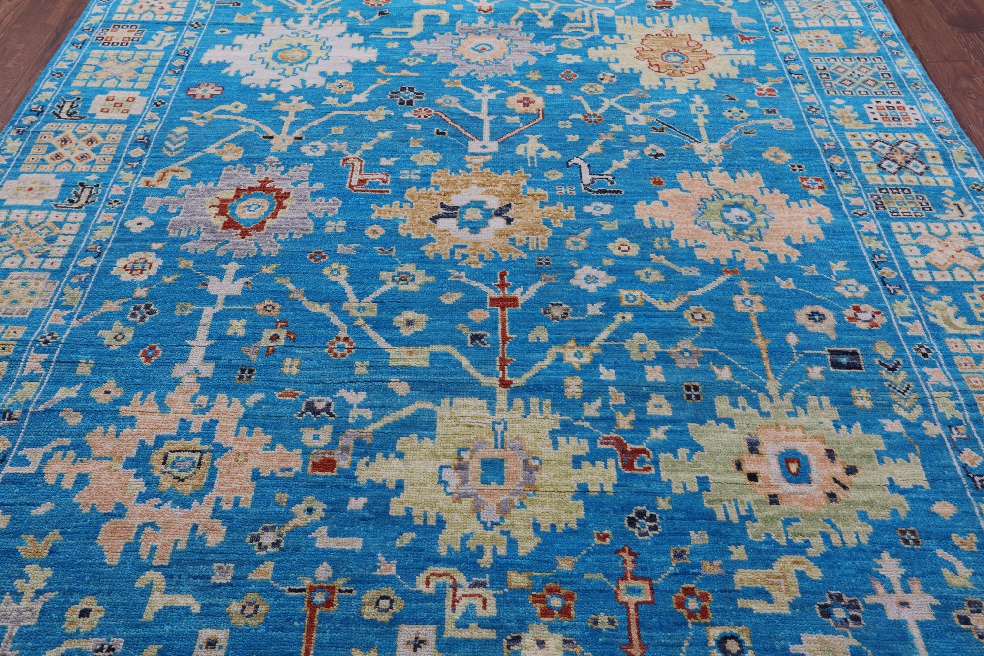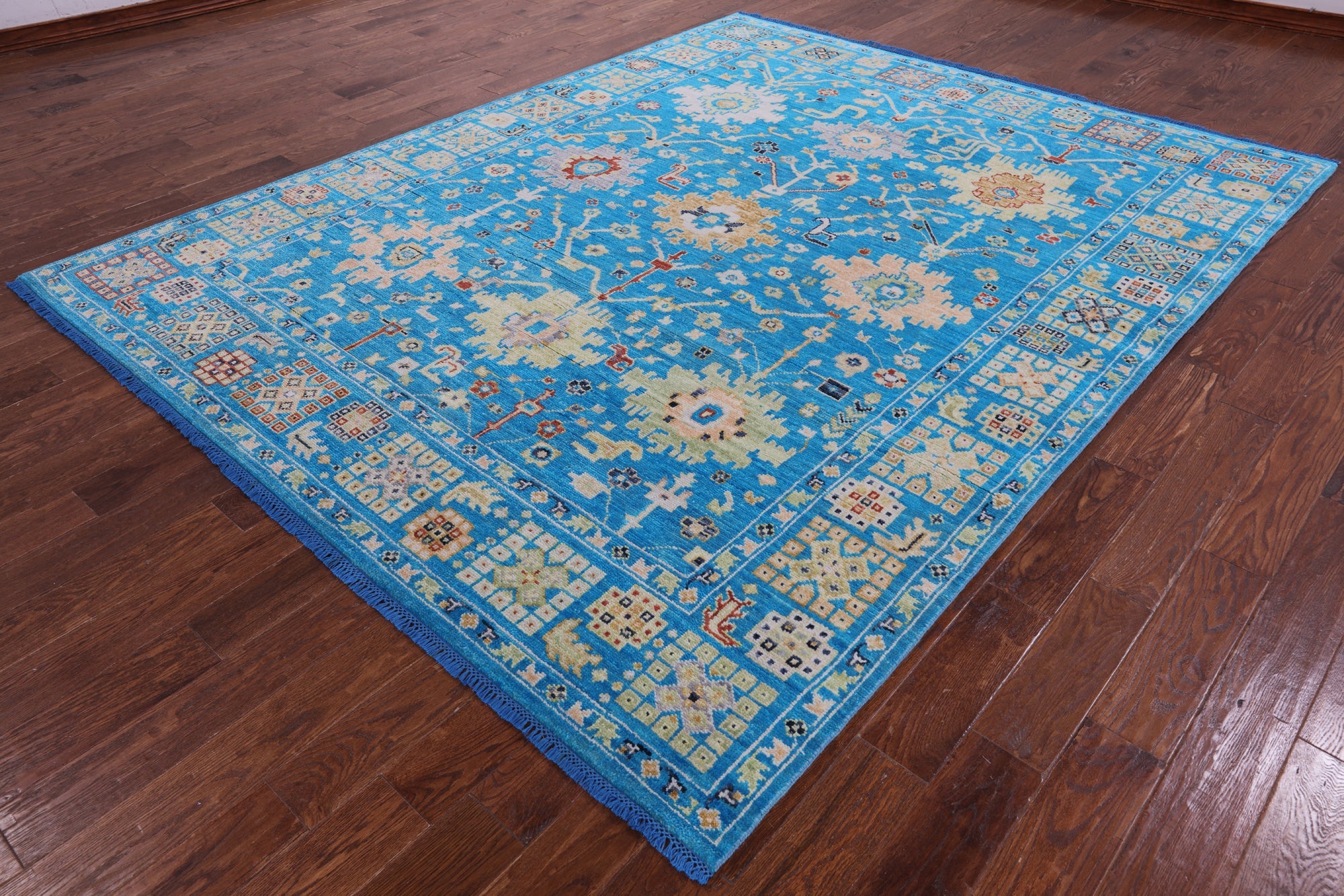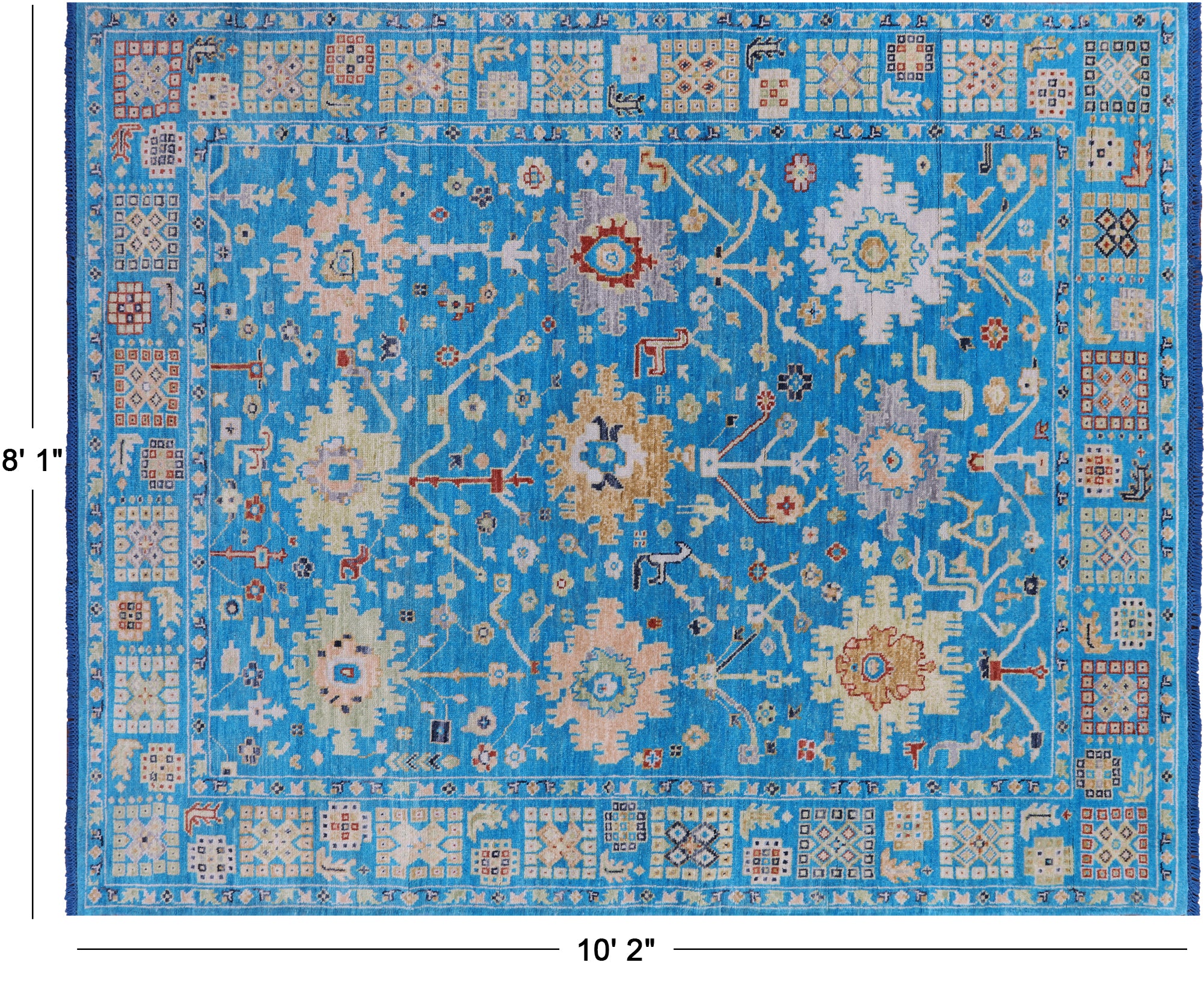 Blue 8' 1" X 10' 2" Turkish Angora Oushak Hand Knotted Wool Rug - Q15642