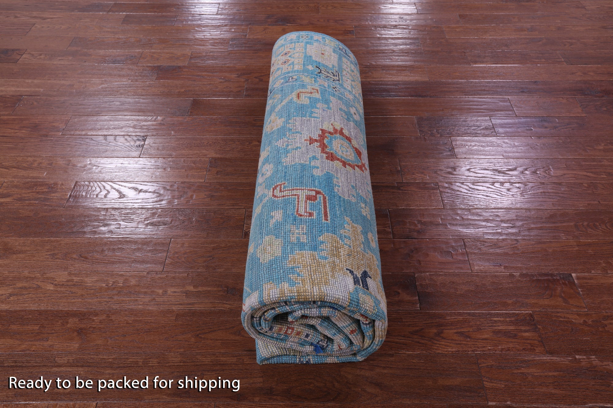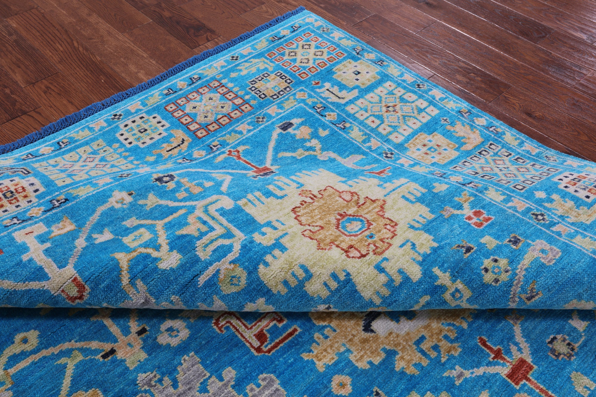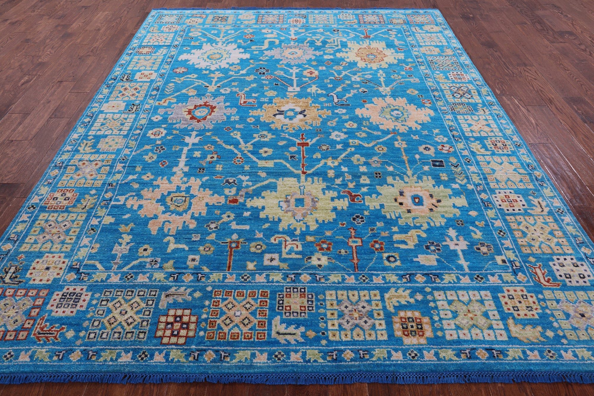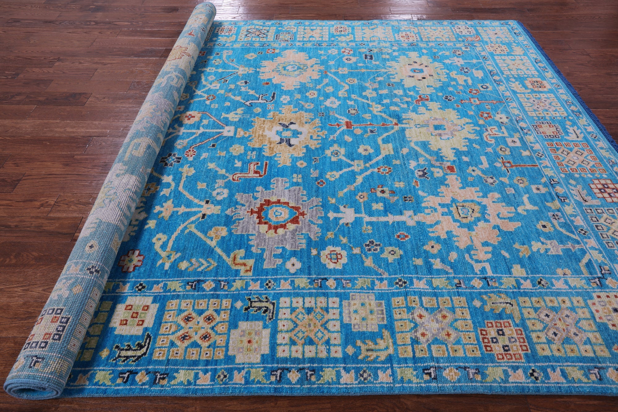 Blue 8' 1" X 10' 2" Turkish Angora Oushak Hand Knotted Wool Rug - Q15642