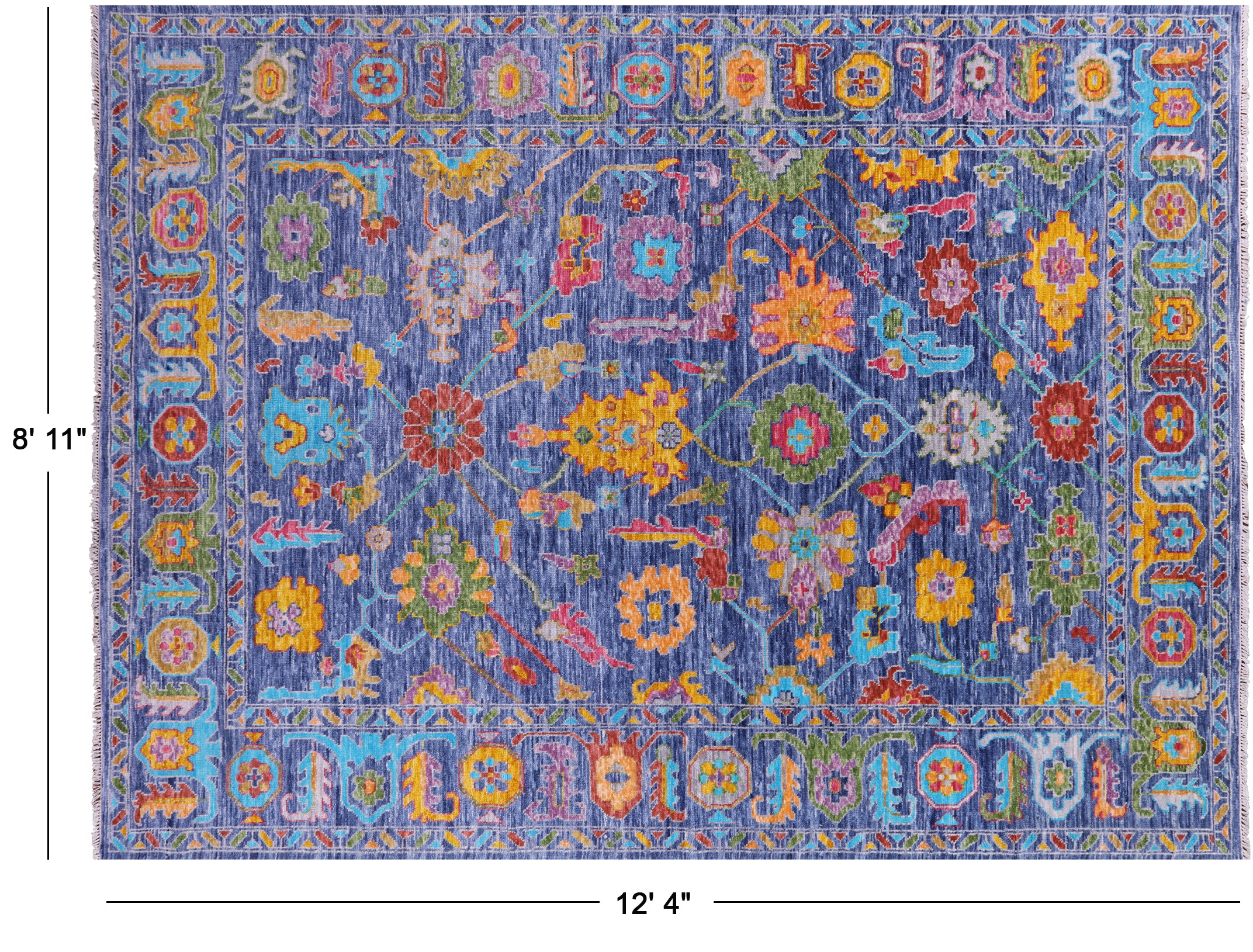 Blue 8' 11" X 12' 4" Turkish Angora Oushak Hand Knotted Wool Rug - Q15669