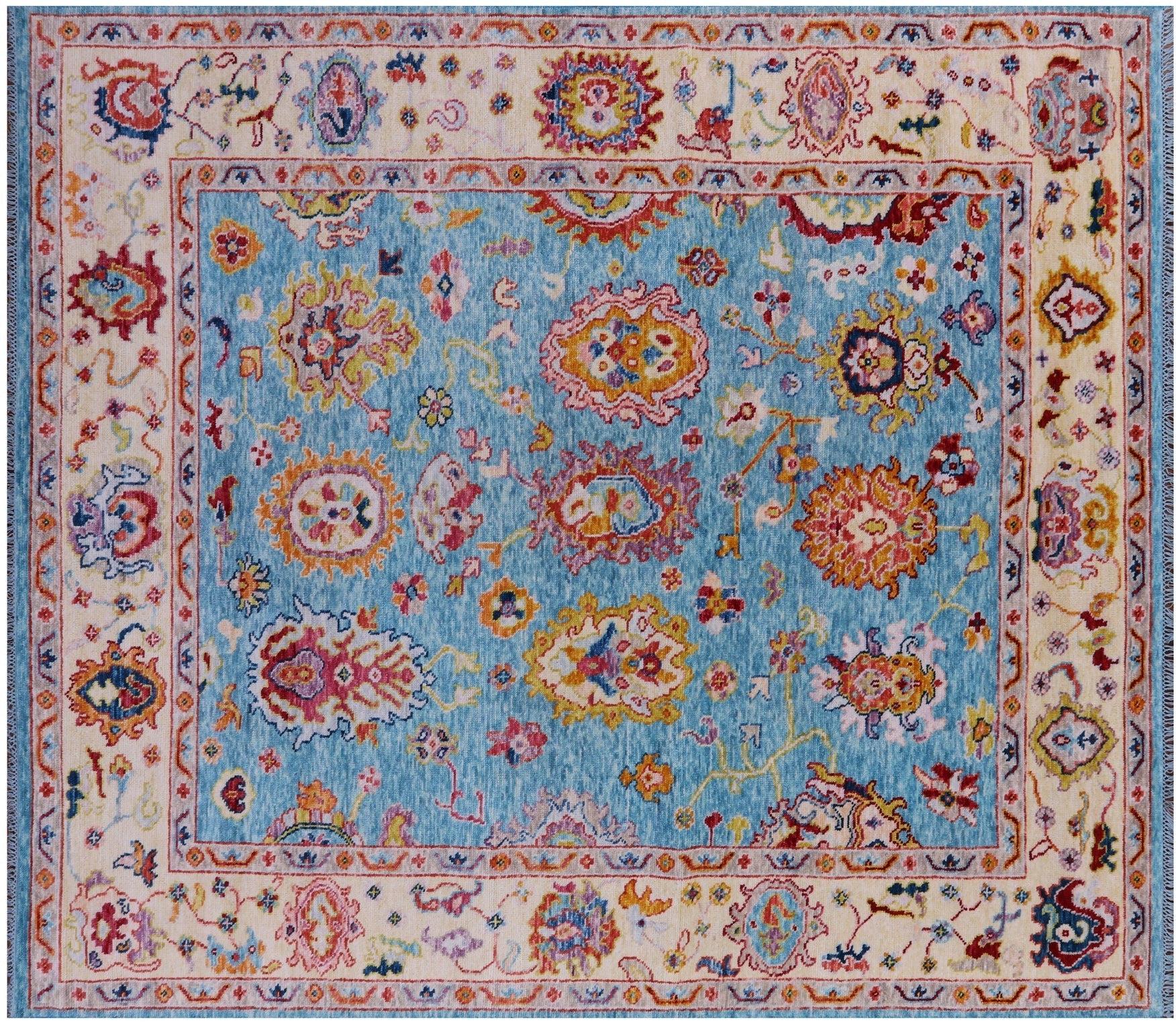 Blue Turkish Angora Oushak Hand Knotted Wool Rug 8' 3" X 9' 8" - Q16125
