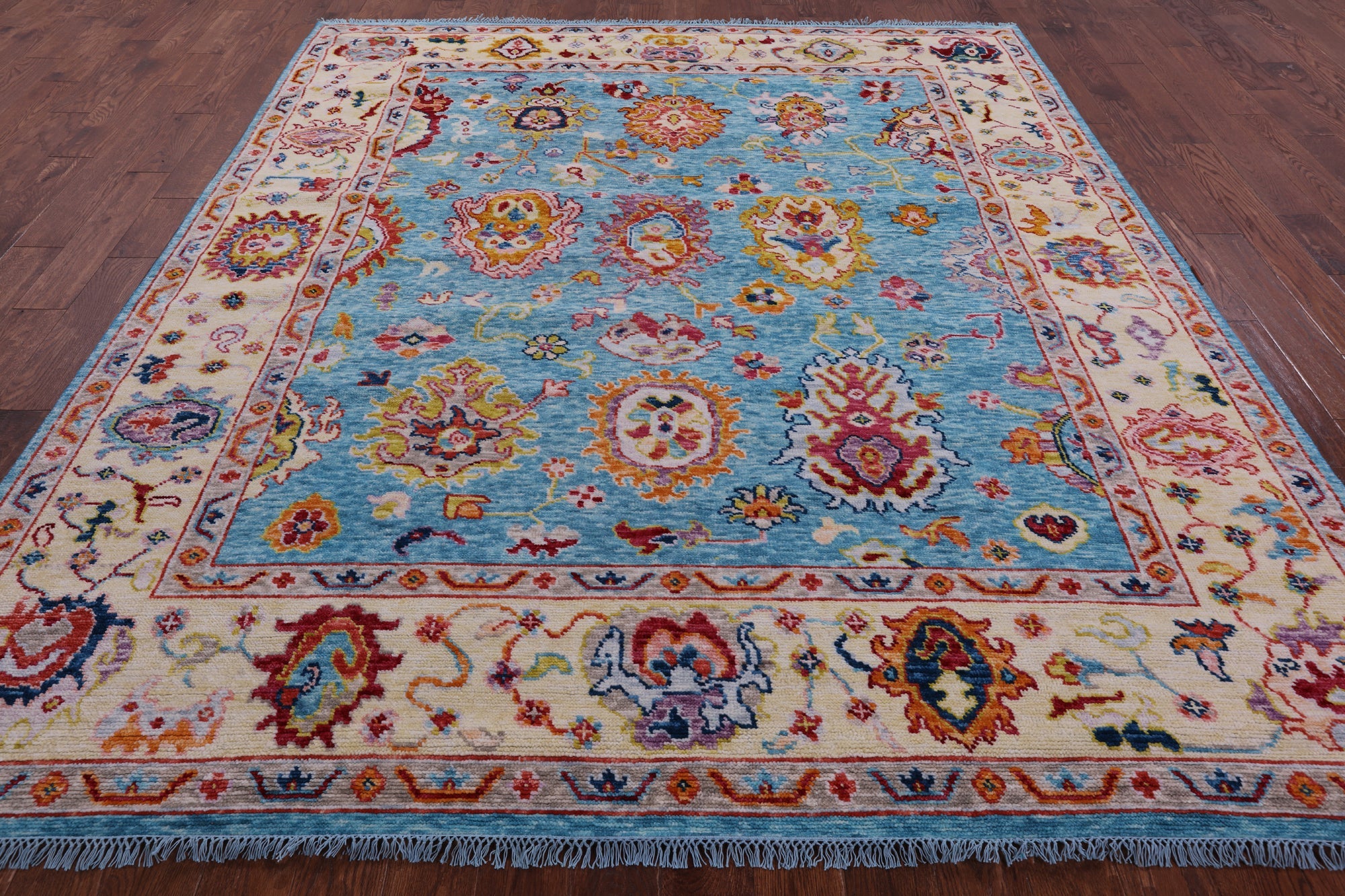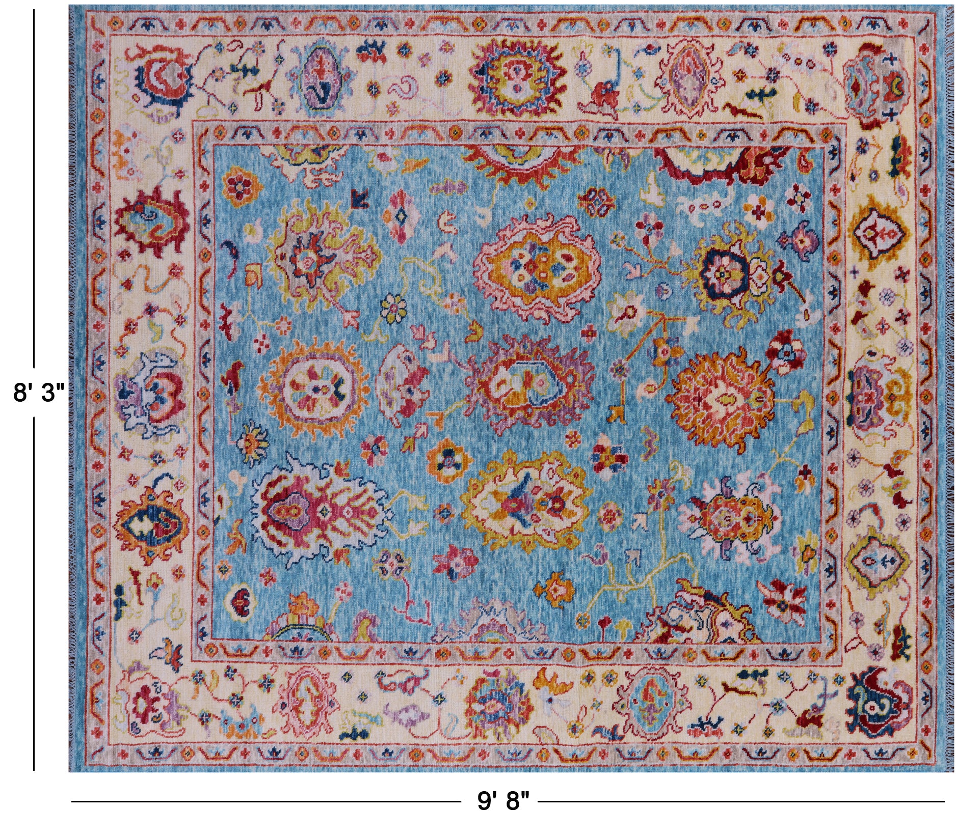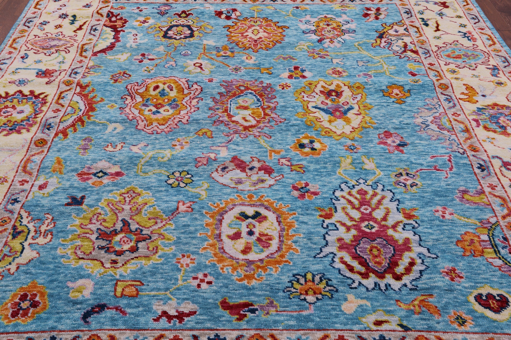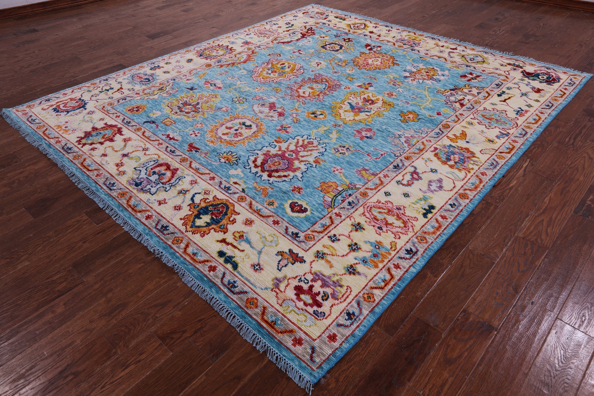 Blue Turkish Angora Oushak Hand Knotted Wool Rug 8' 3" X 9' 8" - Q16125 is backordered and will ship as soon as it is back in stock.