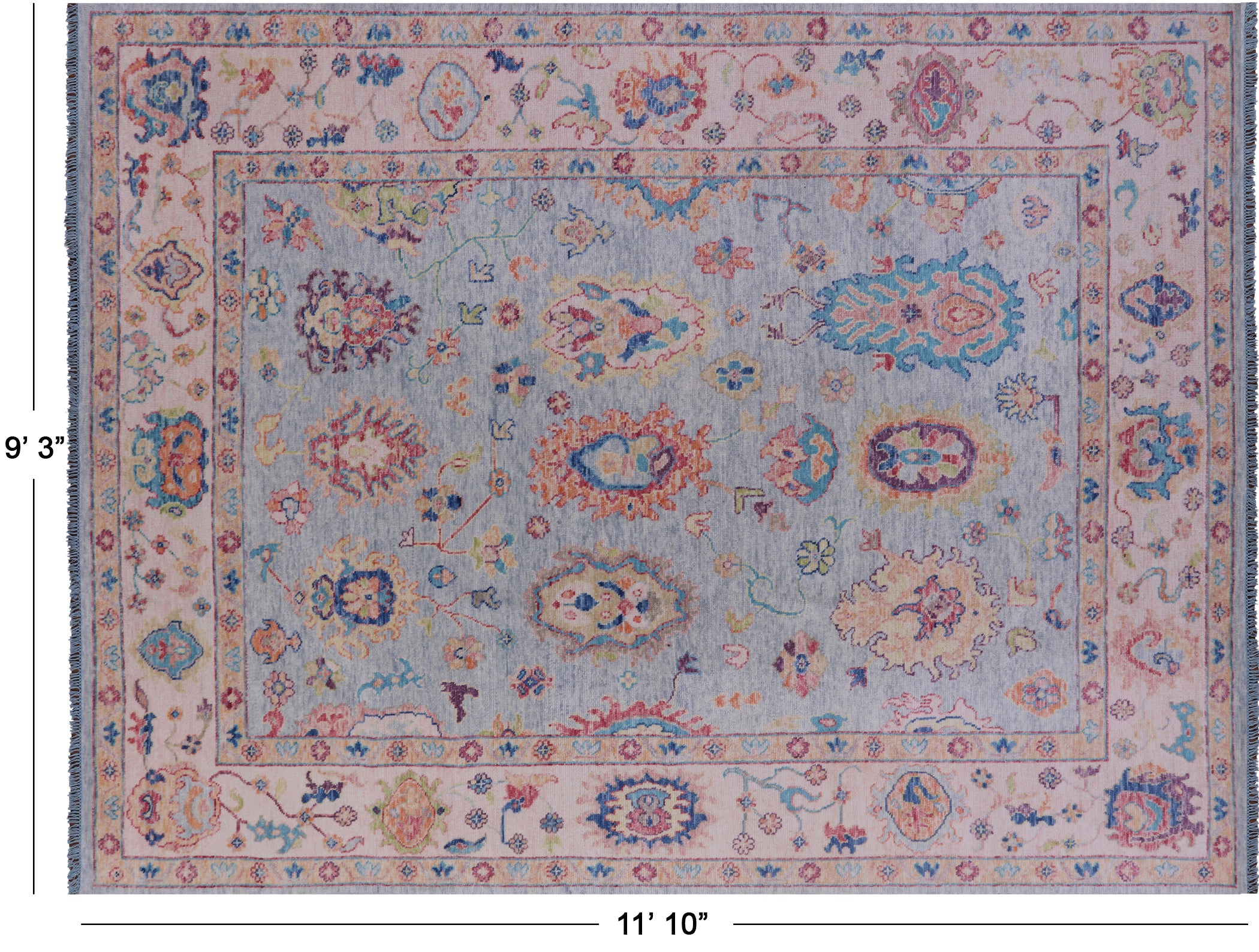 Blue 9' 3" X 11' 10" Turkish Angora Oushak Hand Knotted Wool Rug - Q18906