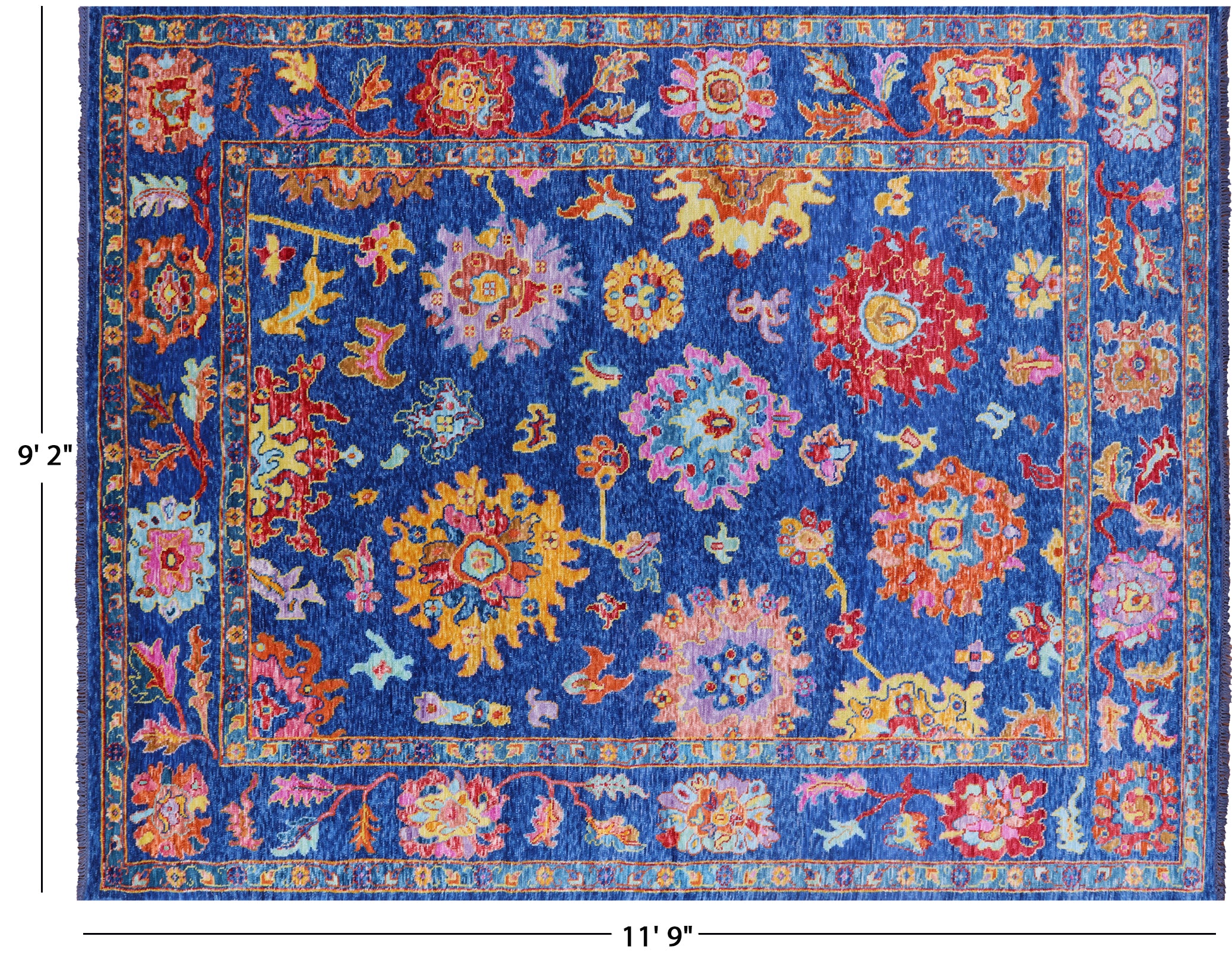 Blue 9' 2" X 11' 9" Turkish Angora Oushak Hand Knotted Wool Rug - Q18967