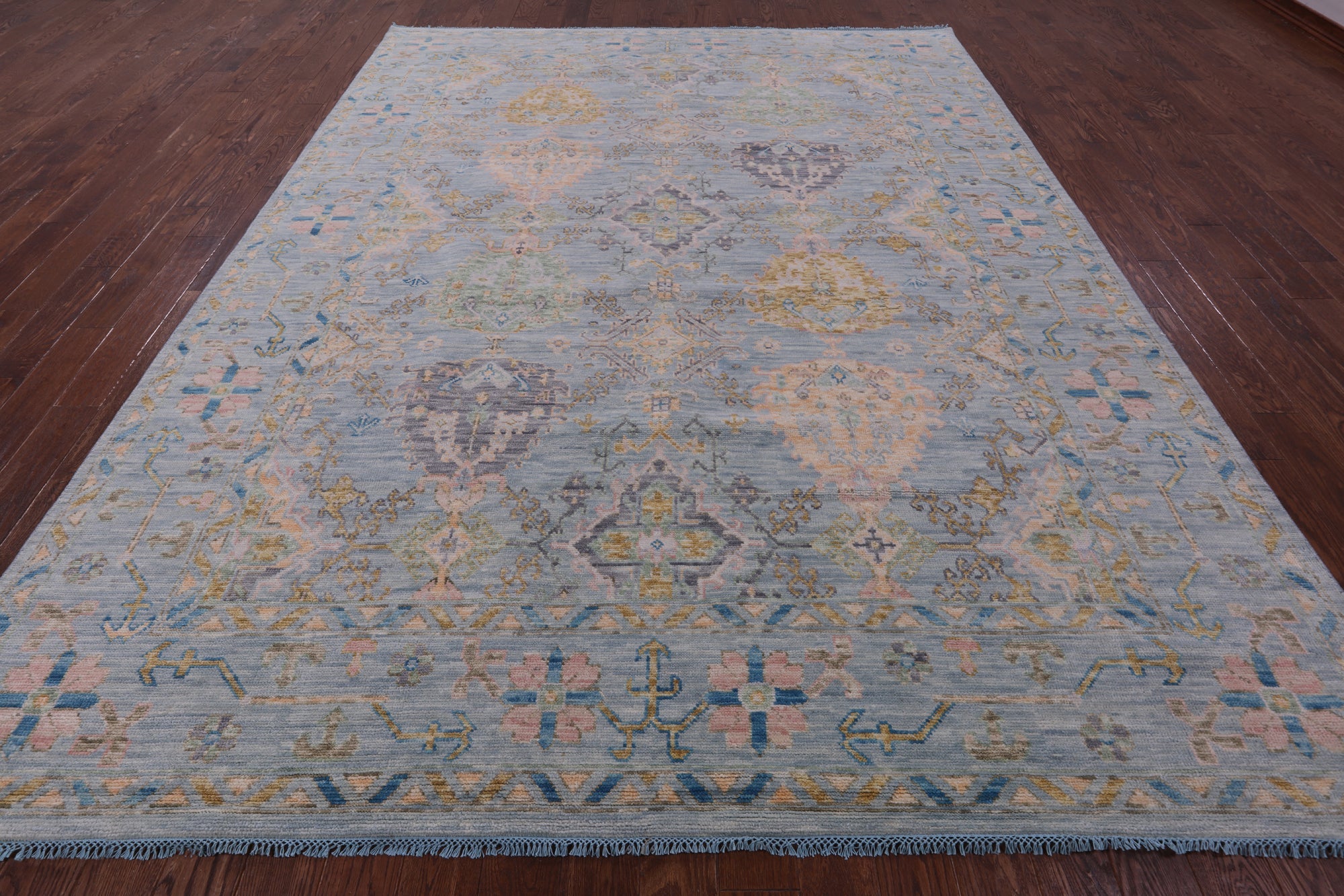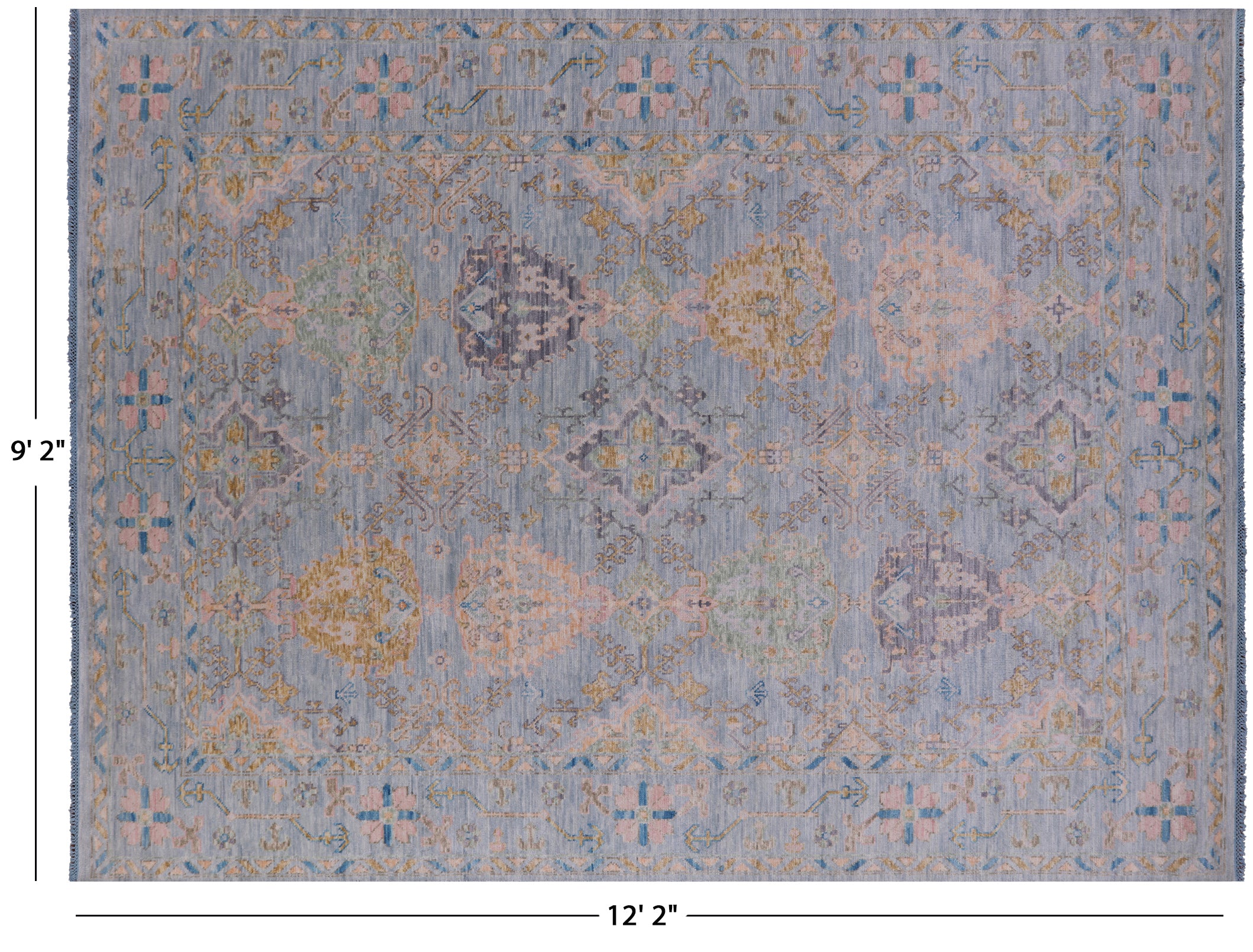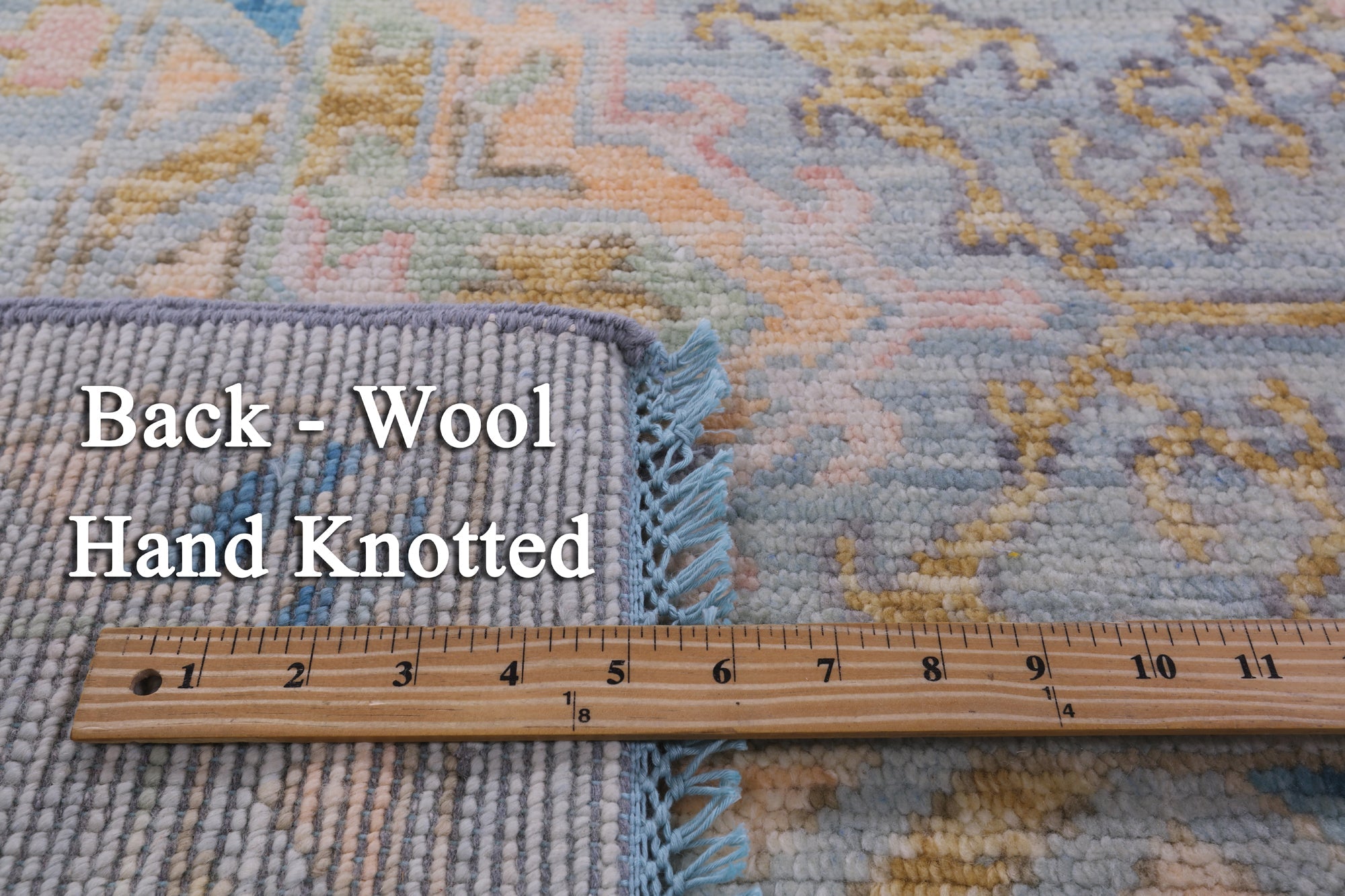 Blue Turkish Angora Oushak Hand Knotted Wool Rug 9' 2" X 12' 2" - Q19055