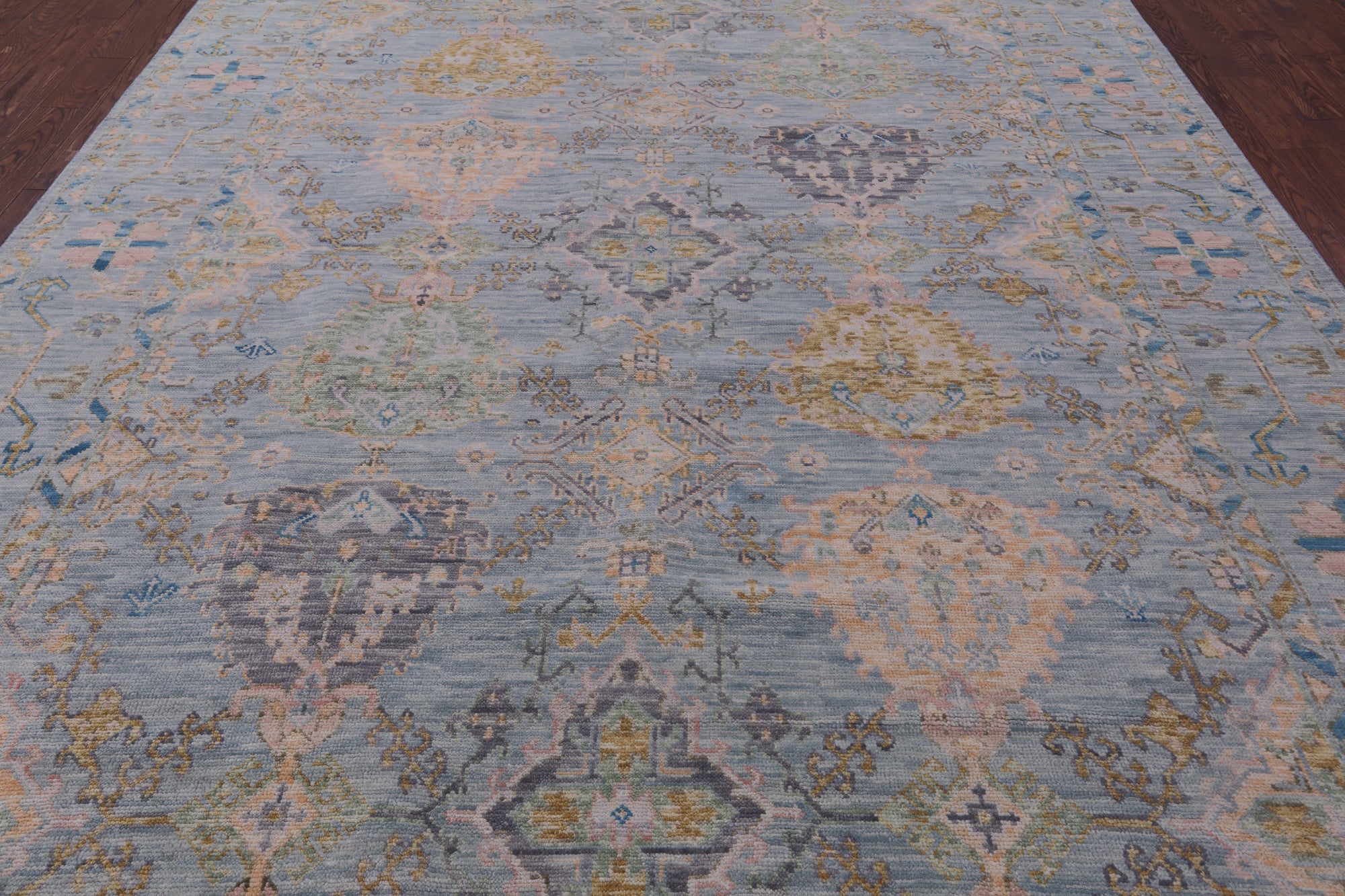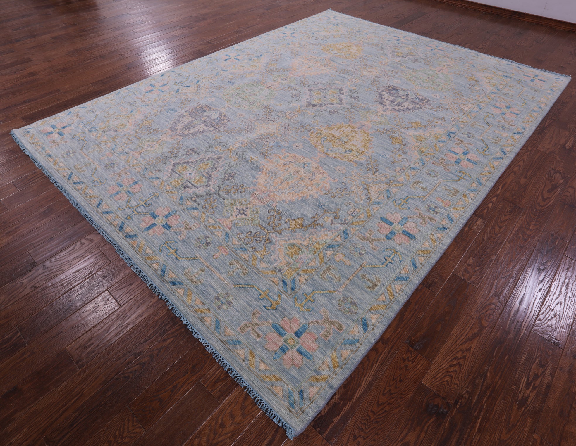 Originating in the small town of Oushak in west-central Anatolia, these rugs were highly favored by the Ottoman Empire. Oushak rugs are one of the most significant styles of Turkish rugs and are known for their beautiful antique look. They are usually designed with motifs consisting of flowers, tendrils, or even geometric shape designs. Larger medallions complement the more intricate designs, creating perfect harmony. Colors are stunningly balanced with warm and cool tones, completing the rug.