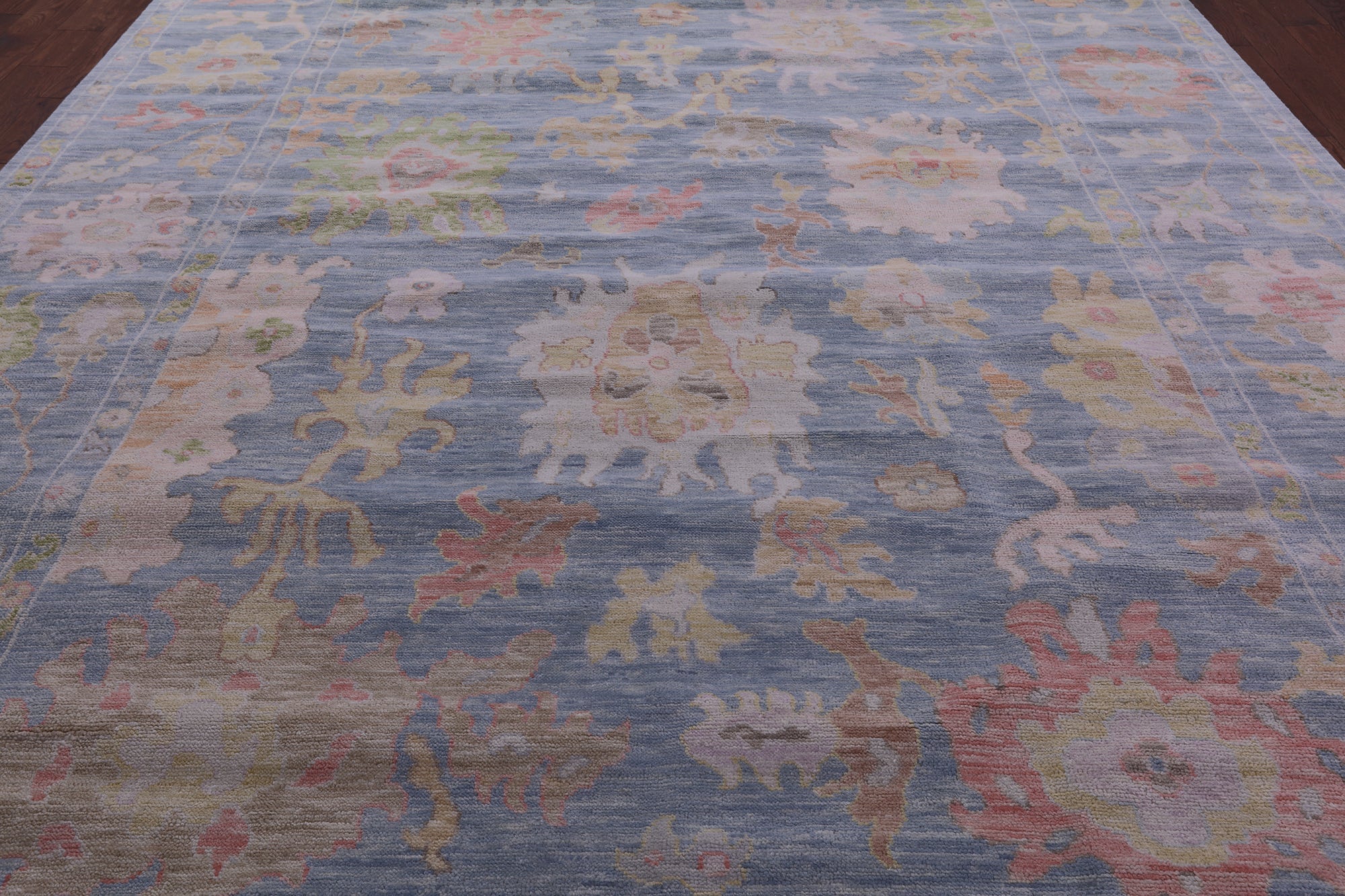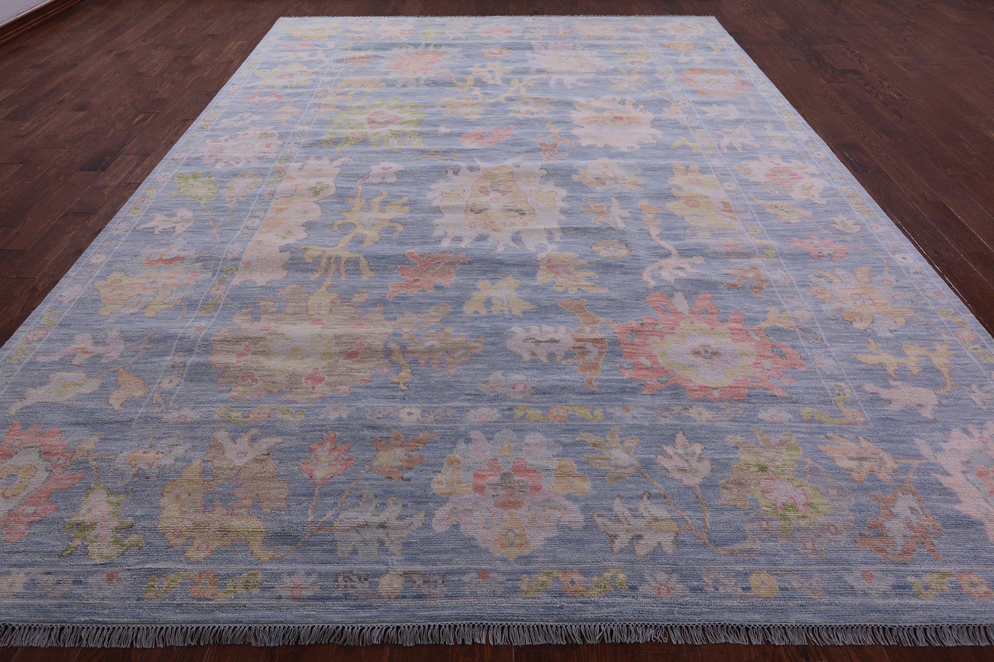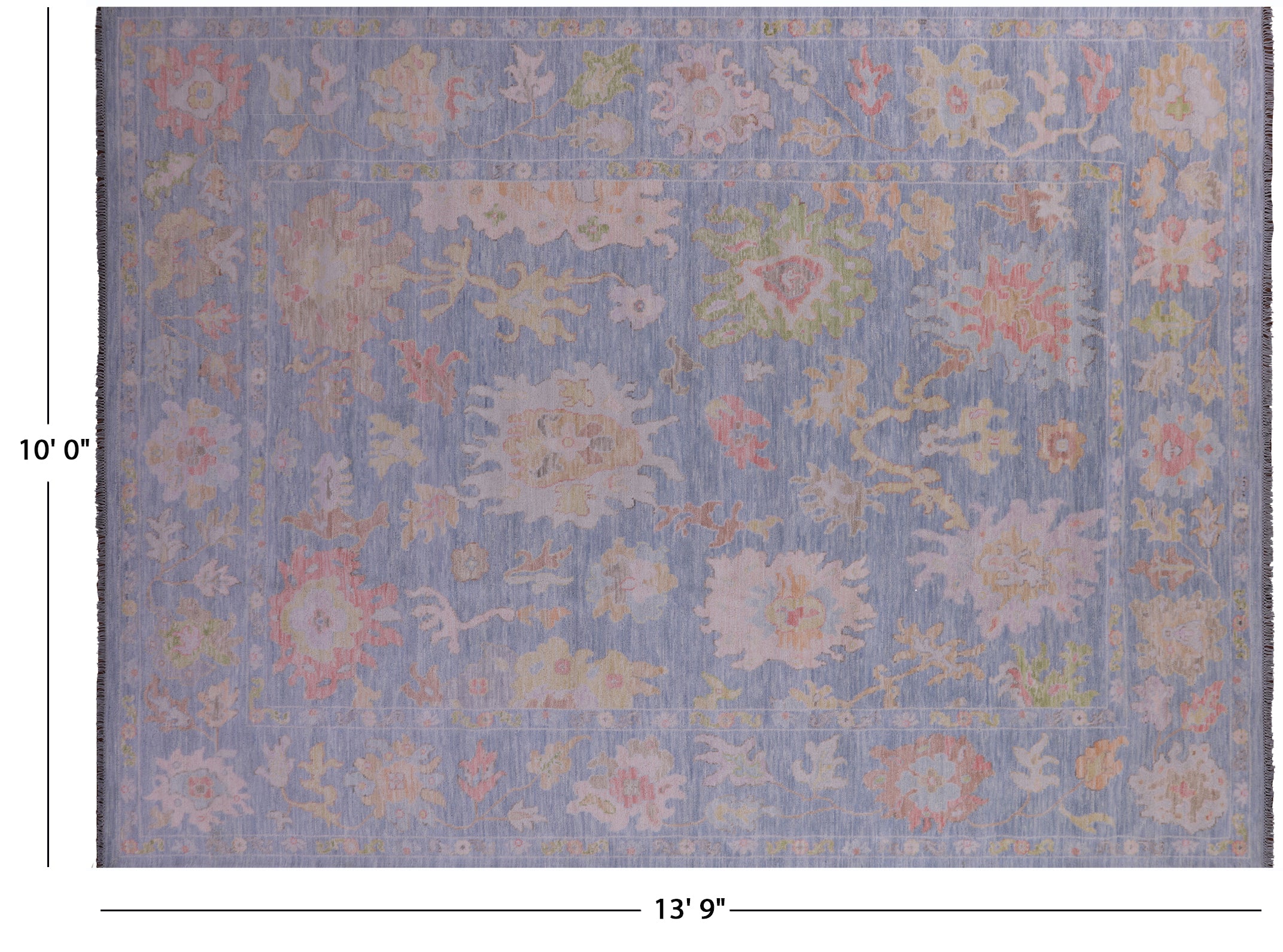 Blue Turkish Angora Oushak Hand Knotted Wool Rug 10' 0" X 13' 9" - Q19751