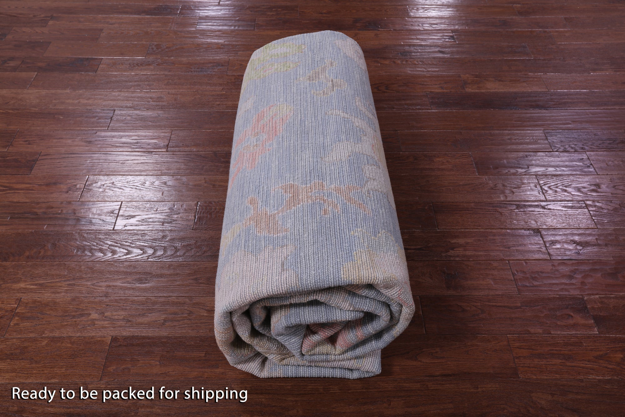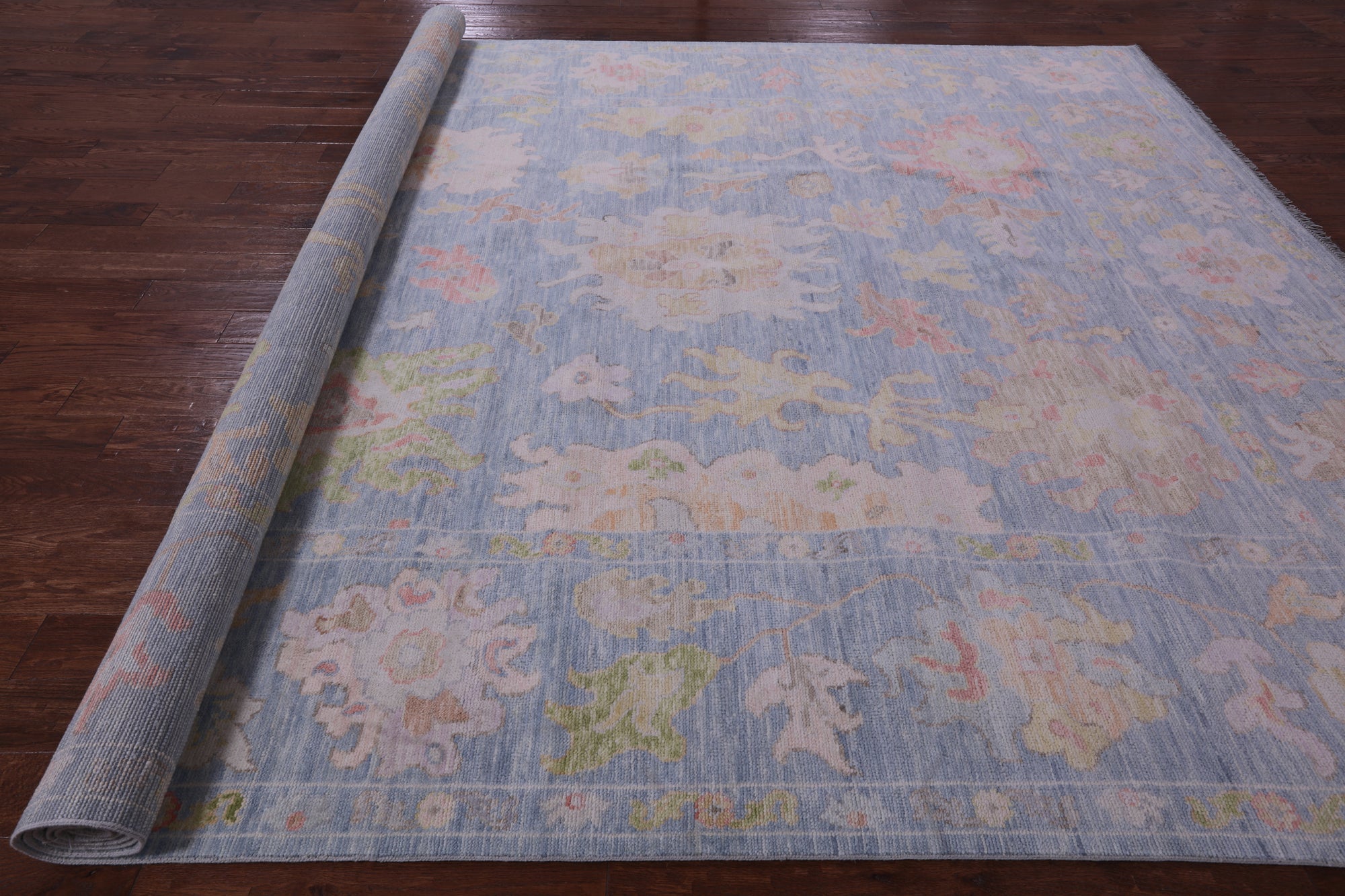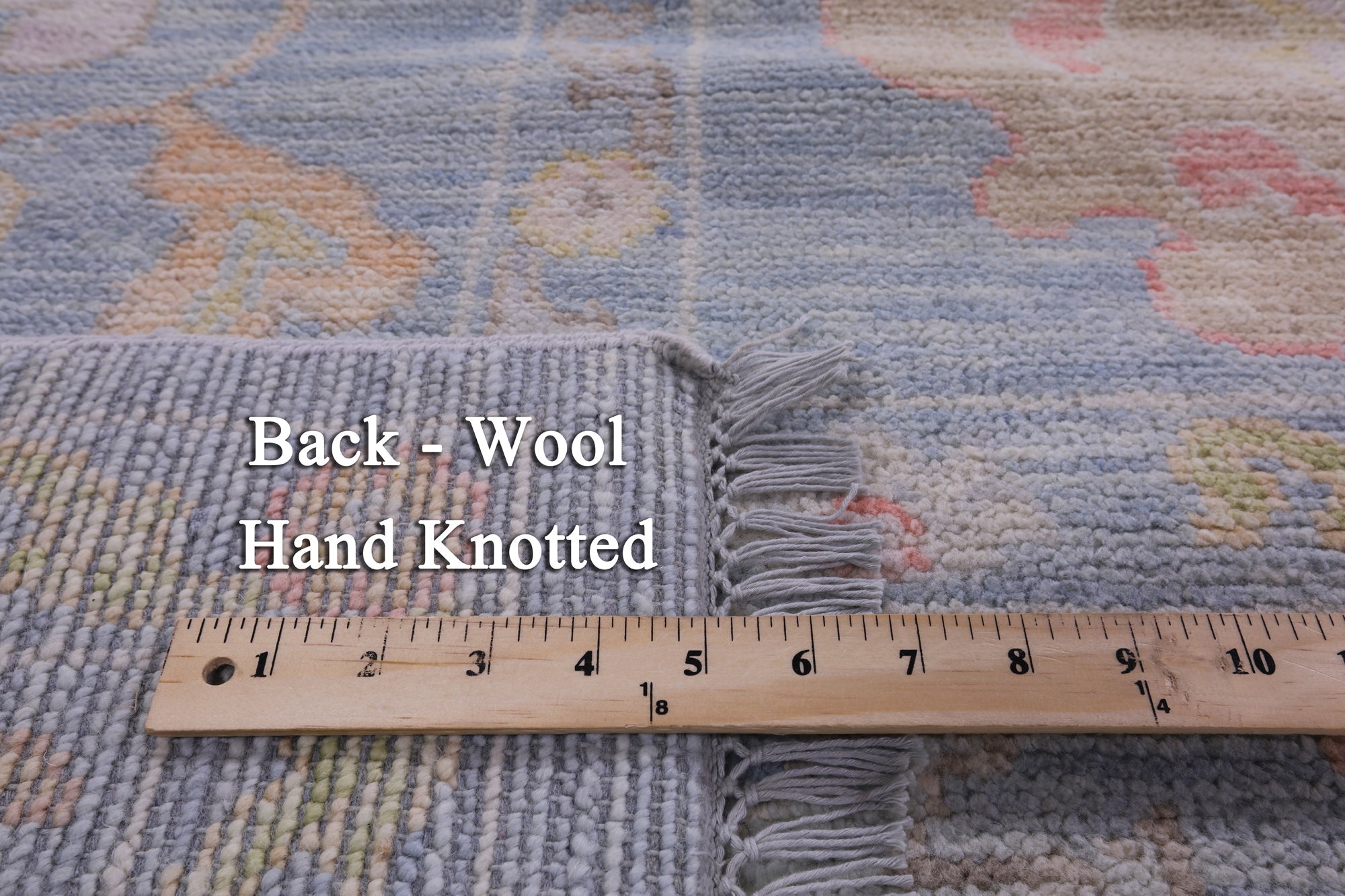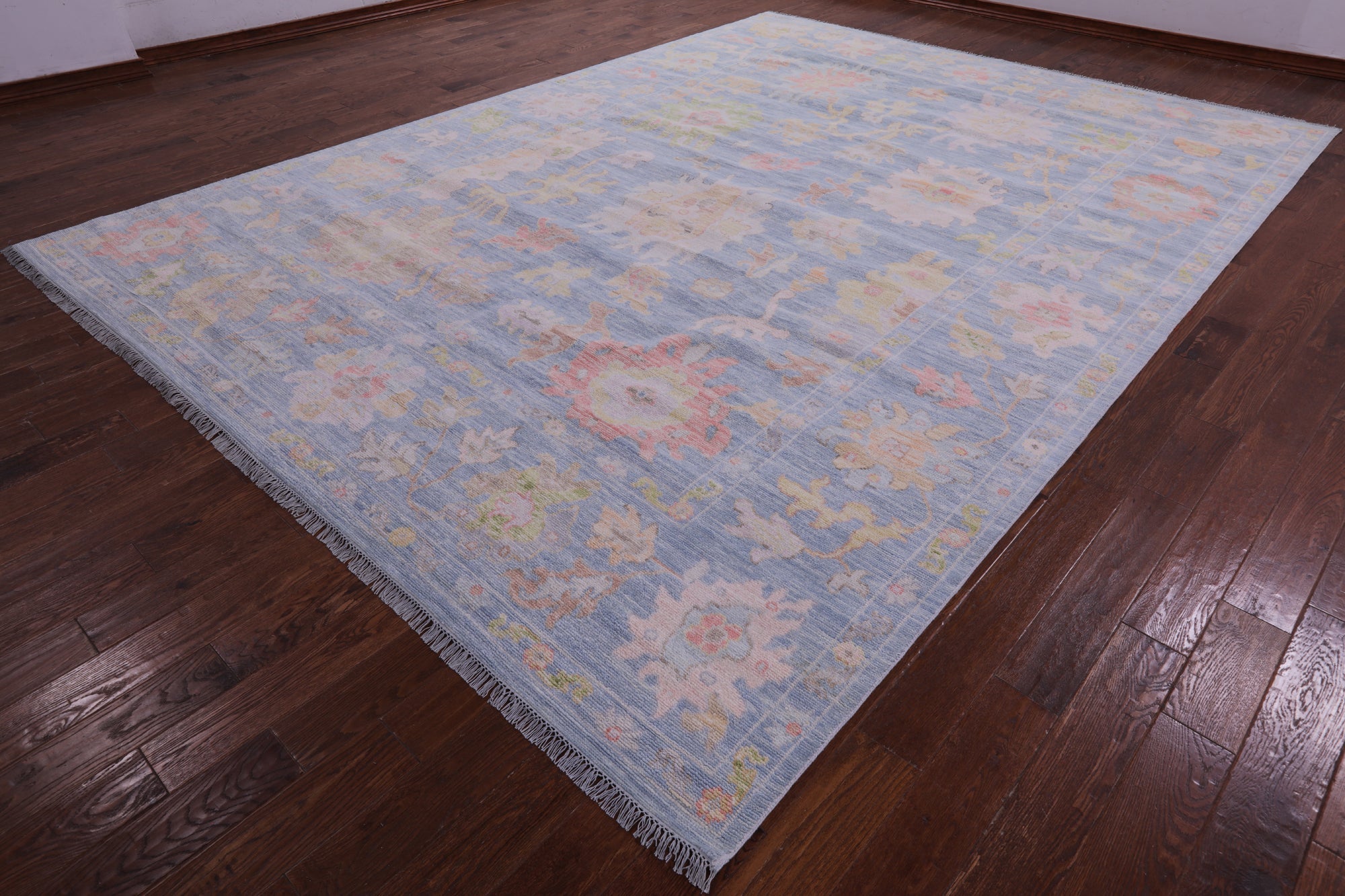 Blue Turkish Angora Oushak Hand Knotted Wool Rug 10' 0" X 13' 9" - Q19751