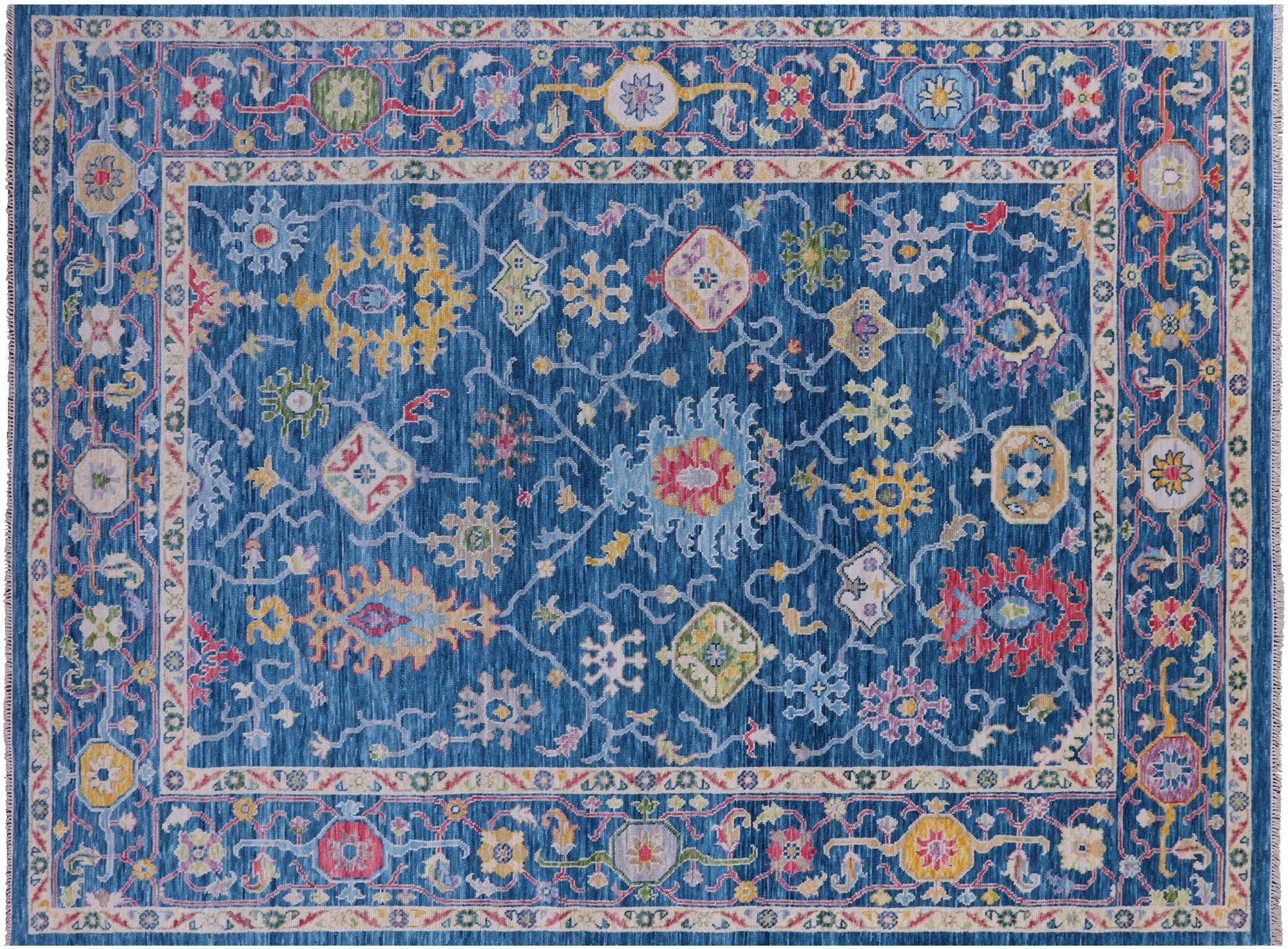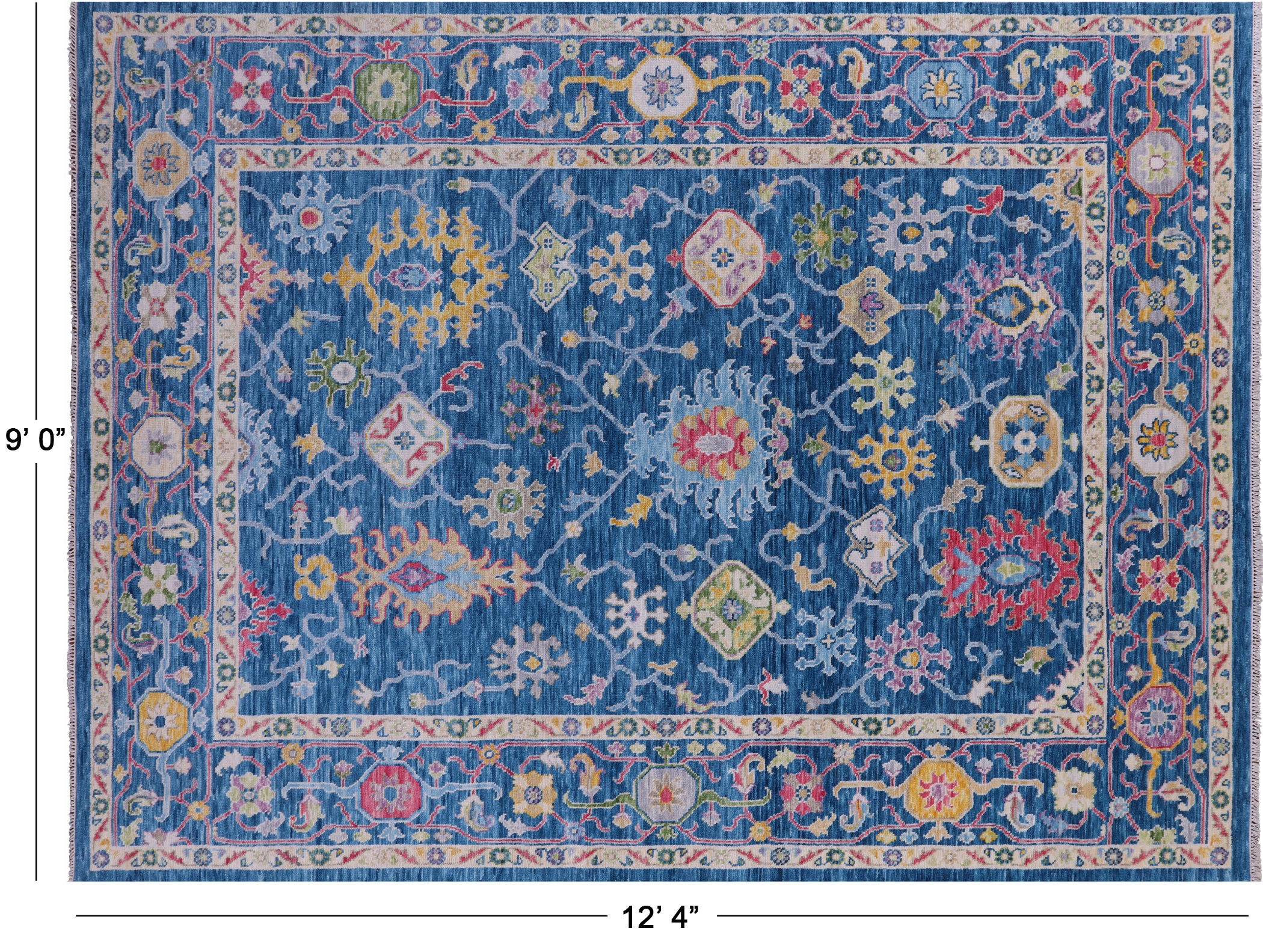 Blue Turkish Angora Oushak Hand Knotted Wool Rug 9' 0" X 12' 4" - Q20048