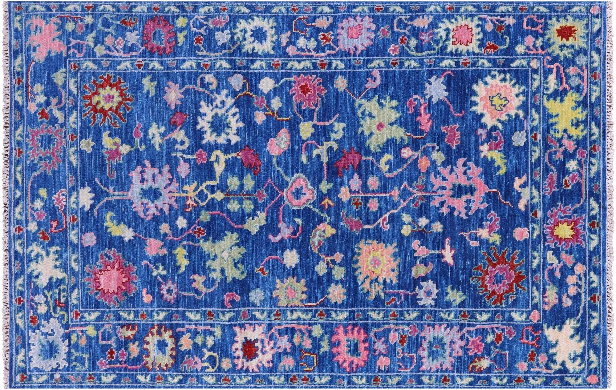 Blue 5' 0" X 8' 0" Turkish Angora Oushak Hand Knotted Wool Rug - Q20265