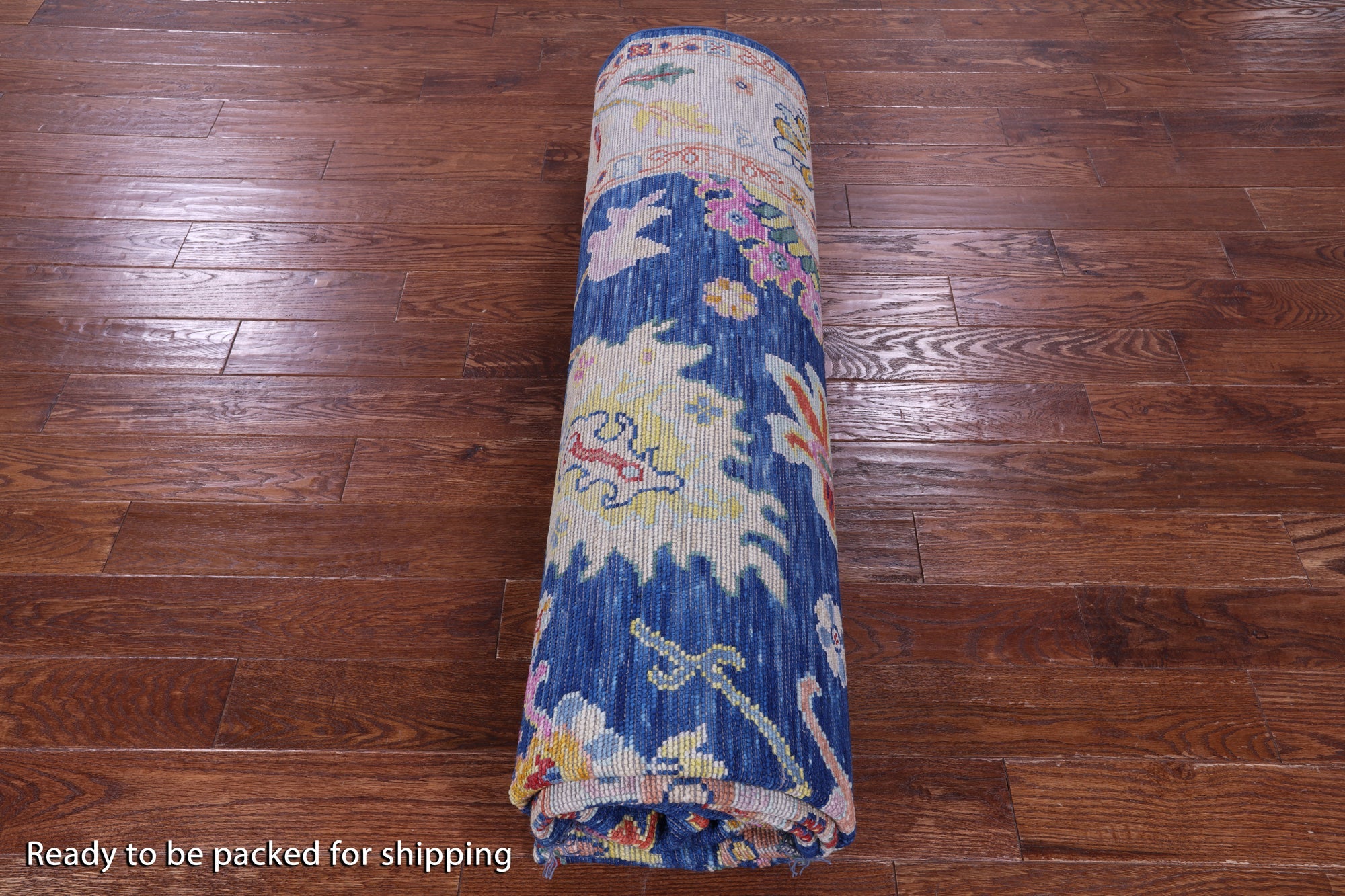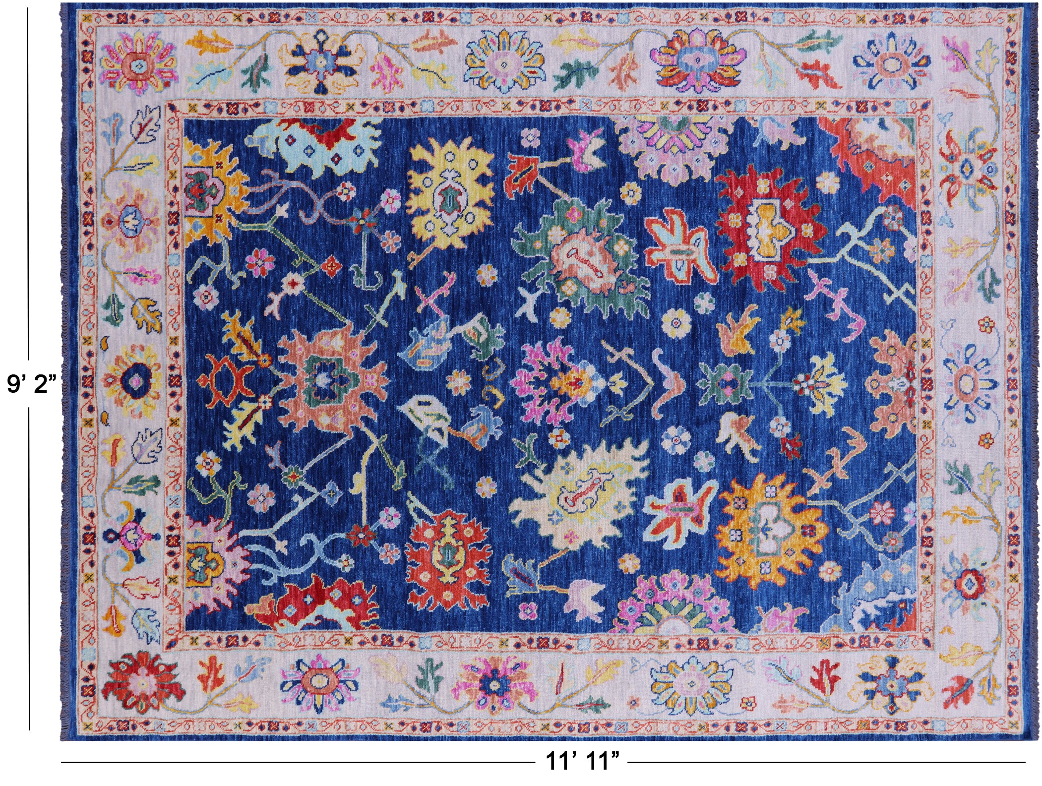 Blue Turkish Angora Oushak Hand-Knotted Wool Rug 9' 2" X 11' 11" - Q21288