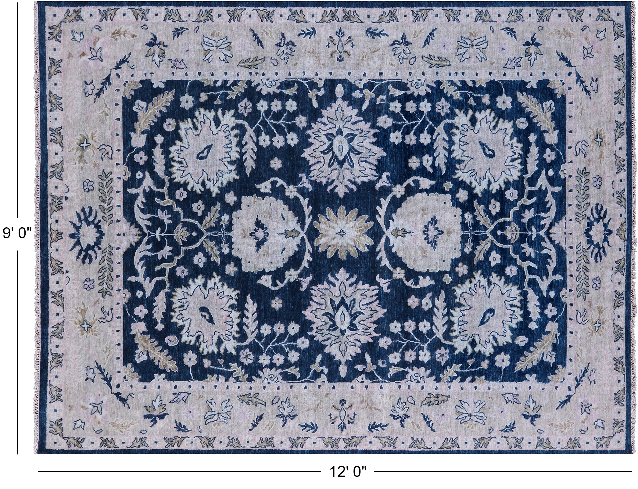 Blue Turkish Angora Oushak Hand Knotted Wool Rug 9' 0" X 12' 0" - Q8758