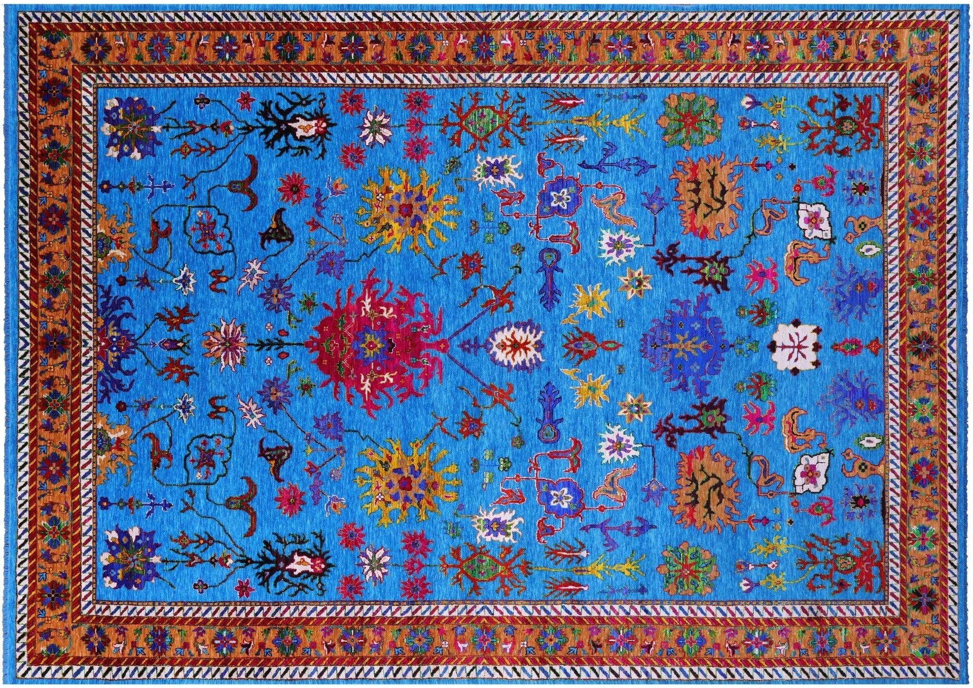 Blue 10' 1" X 14' 3" Turkish Angora Oushak Hand-Knotted Wool & Silk Rug - Q22567 is backordered and will ship as soon as it is back in stock.