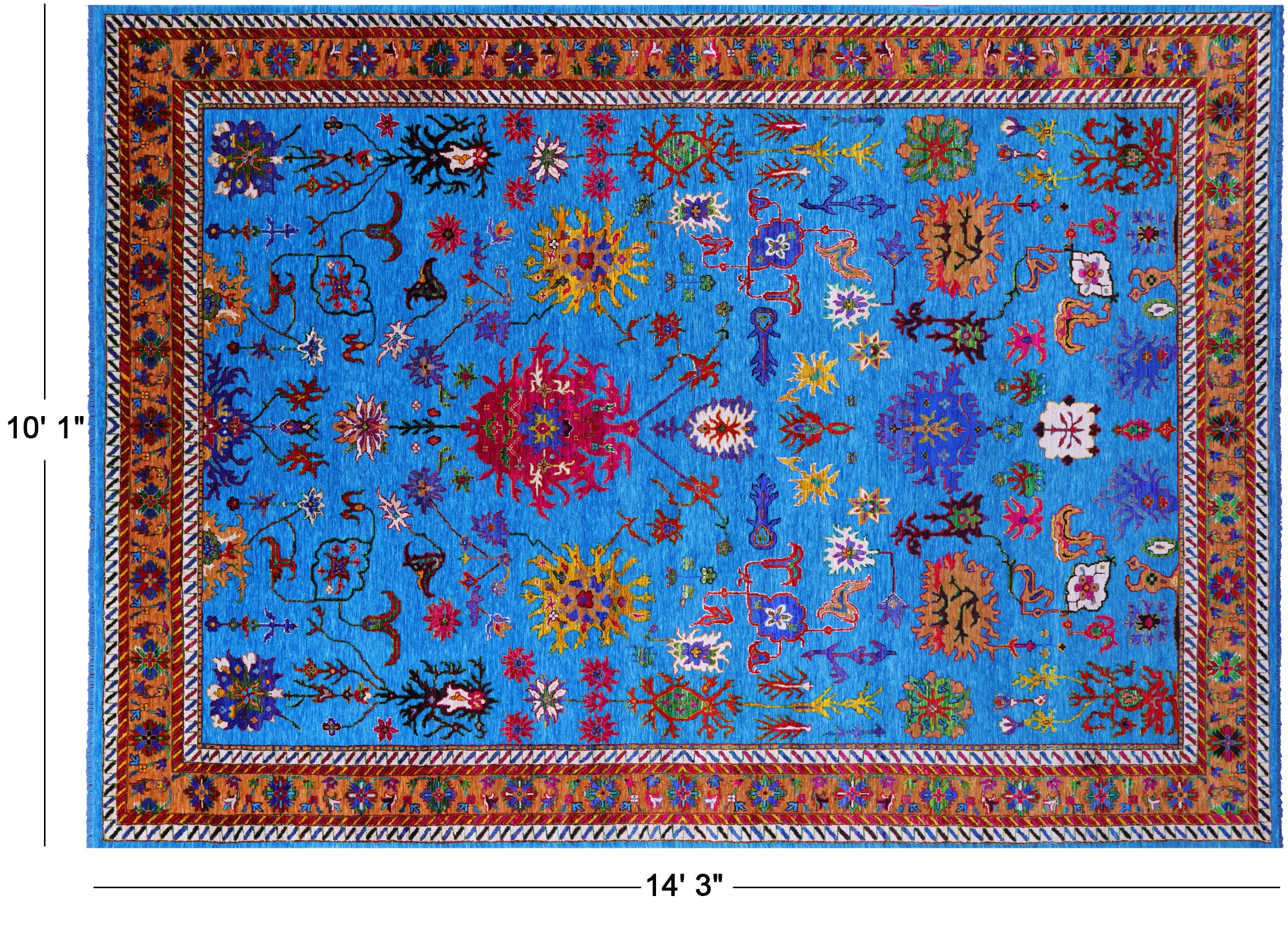 Blue 10' 1" X 14' 3" Turkish Angora Oushak Hand-Knotted Wool & Silk Rug - Q22567