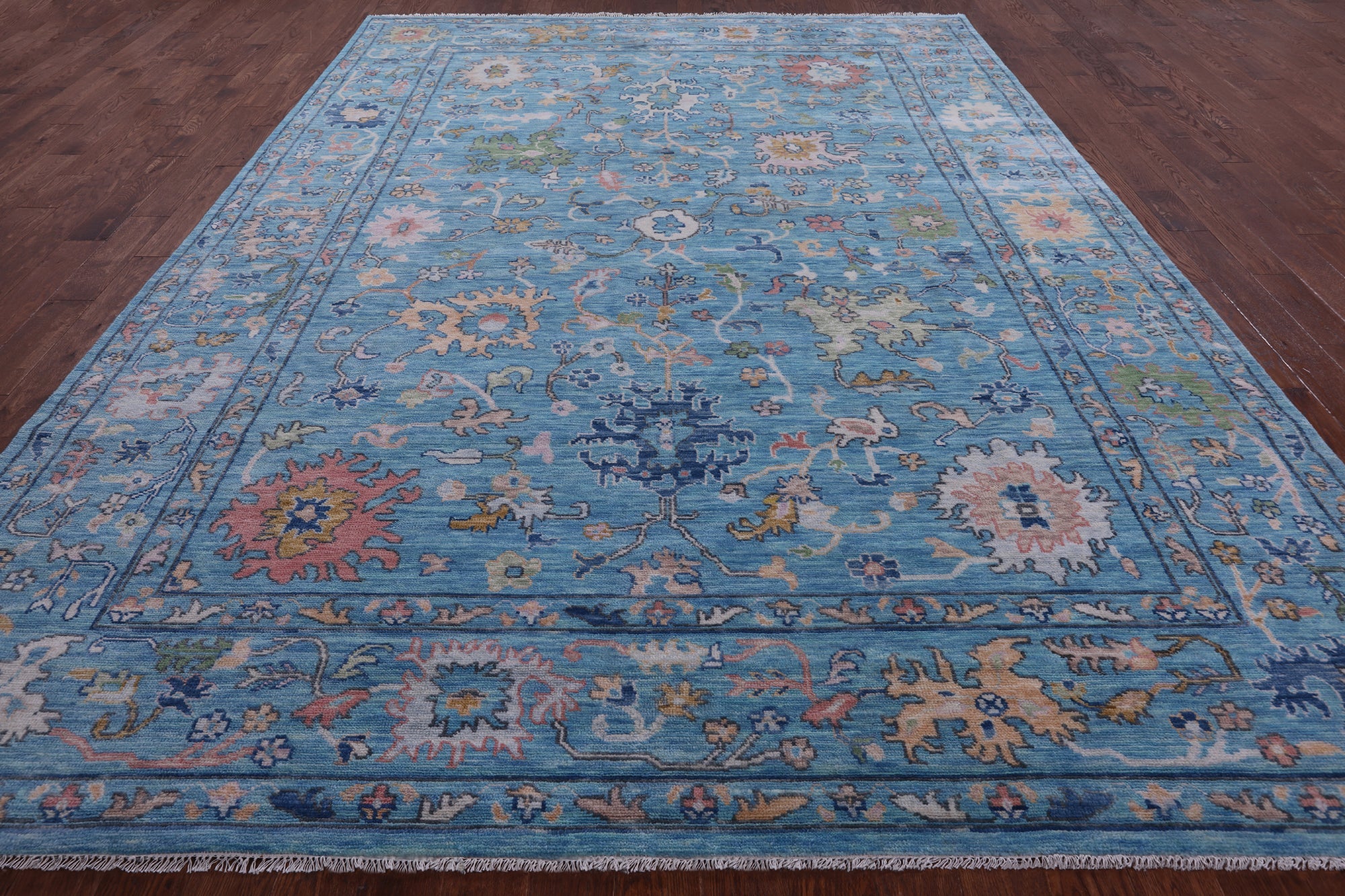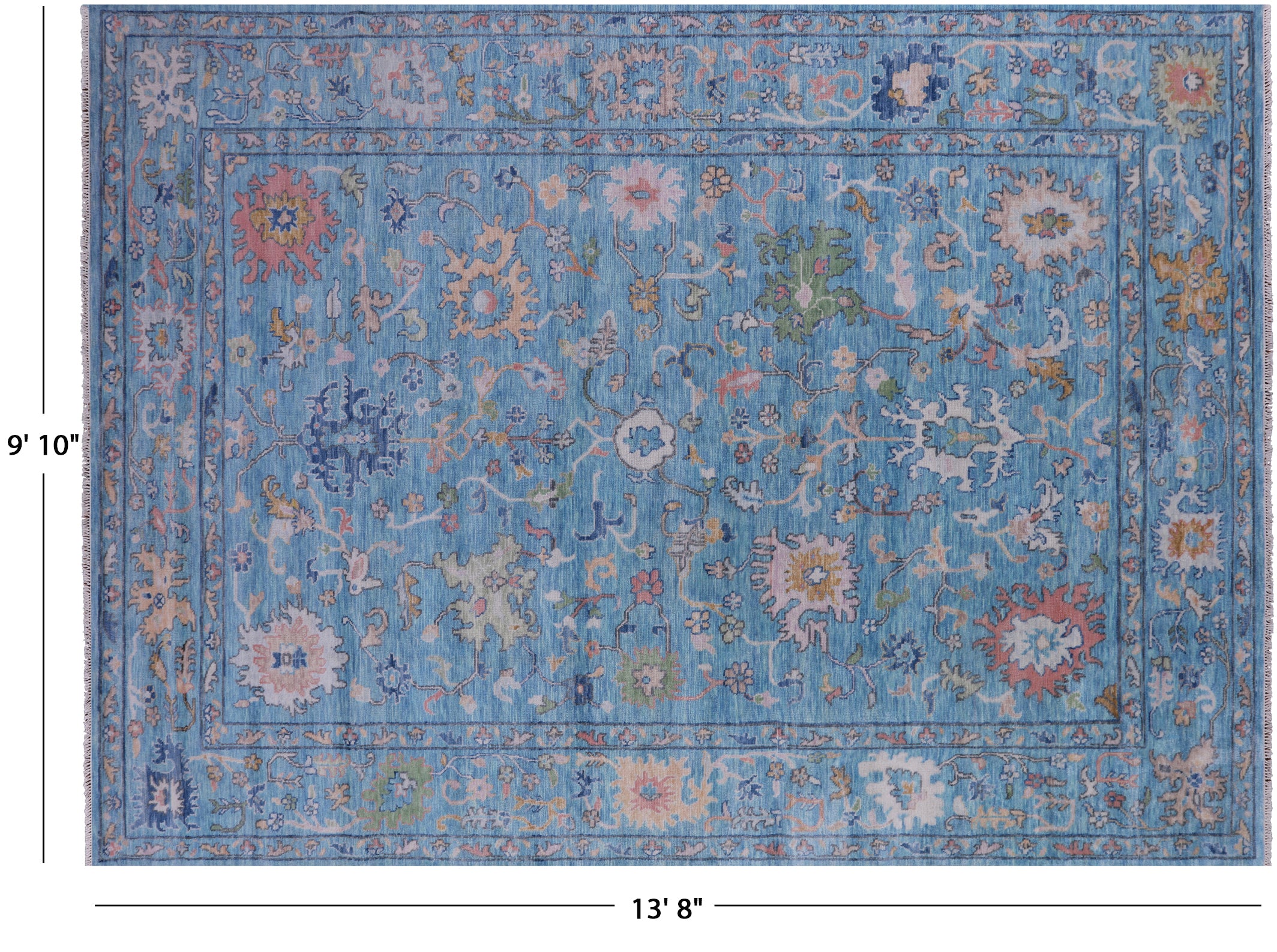 Blue Turkish Angora Oushak Handmade Rug 9' 10" X 13' 8" - Q13435