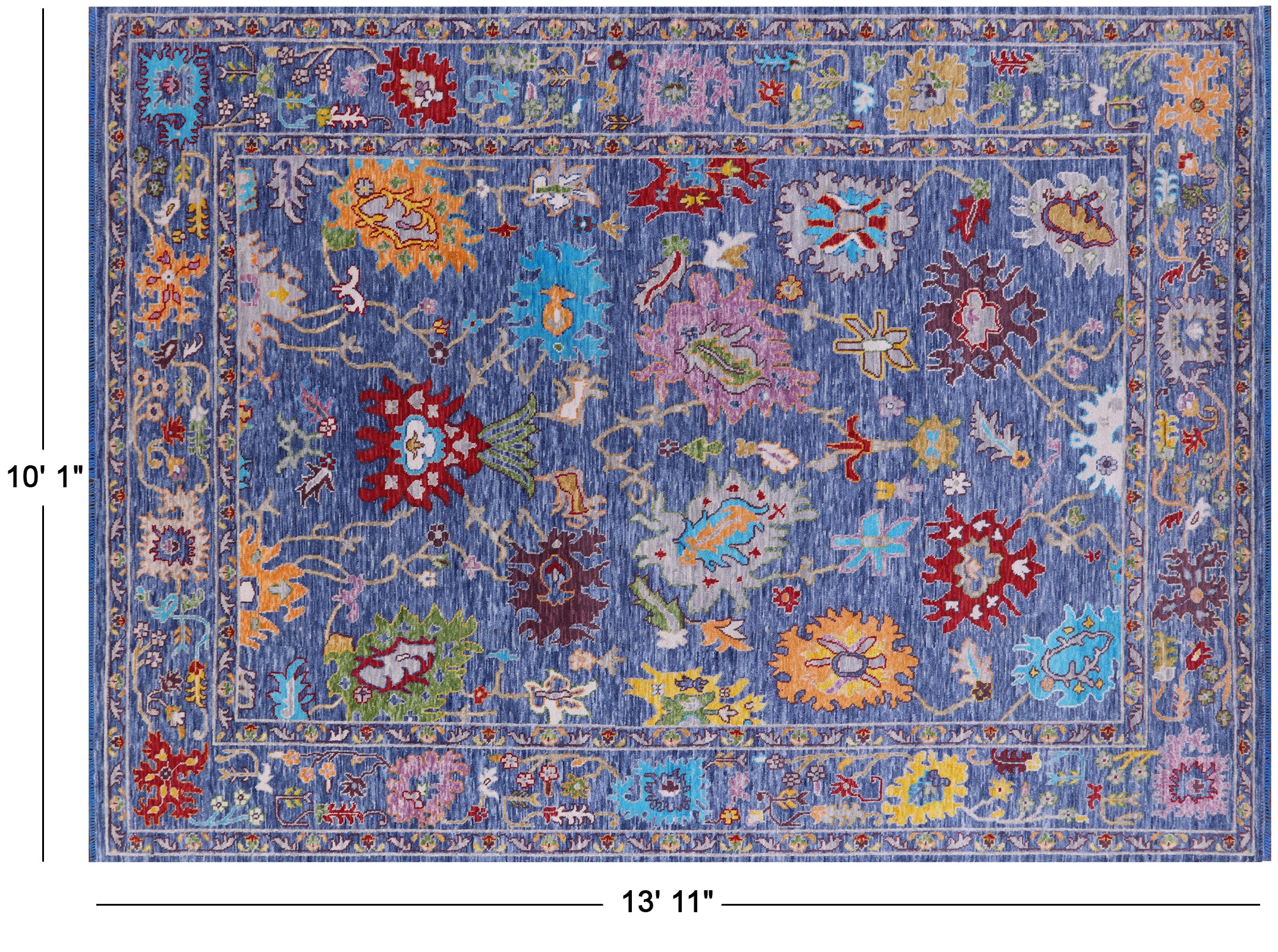 Blue 10' 1" X 13' 11" Turkish Angora Oushak Handmade Rug - Q15677
