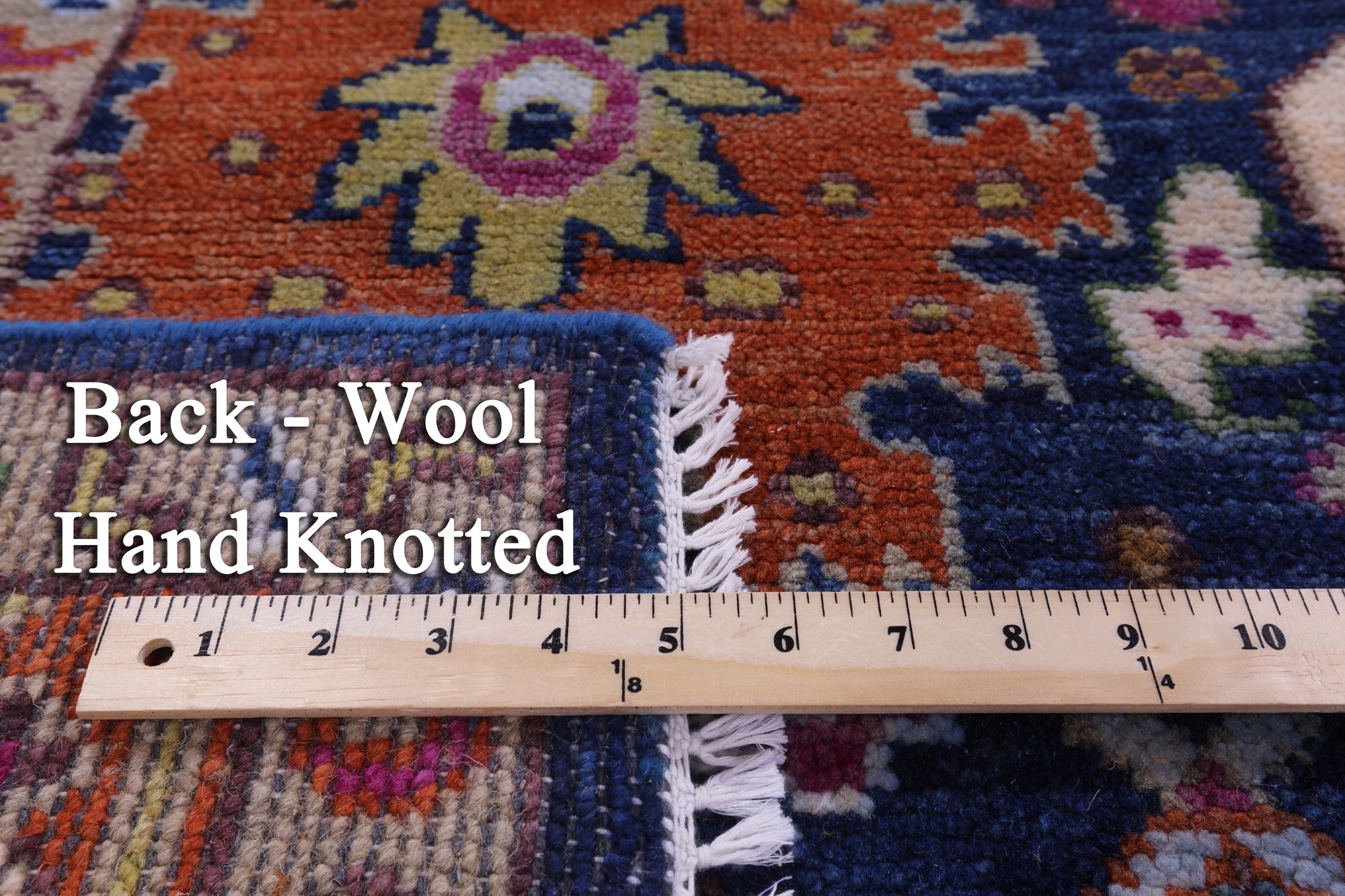 This is a genuine hand knotted cut pile rug, not tufted, hooked, or machine made. All we do is hand knotted.