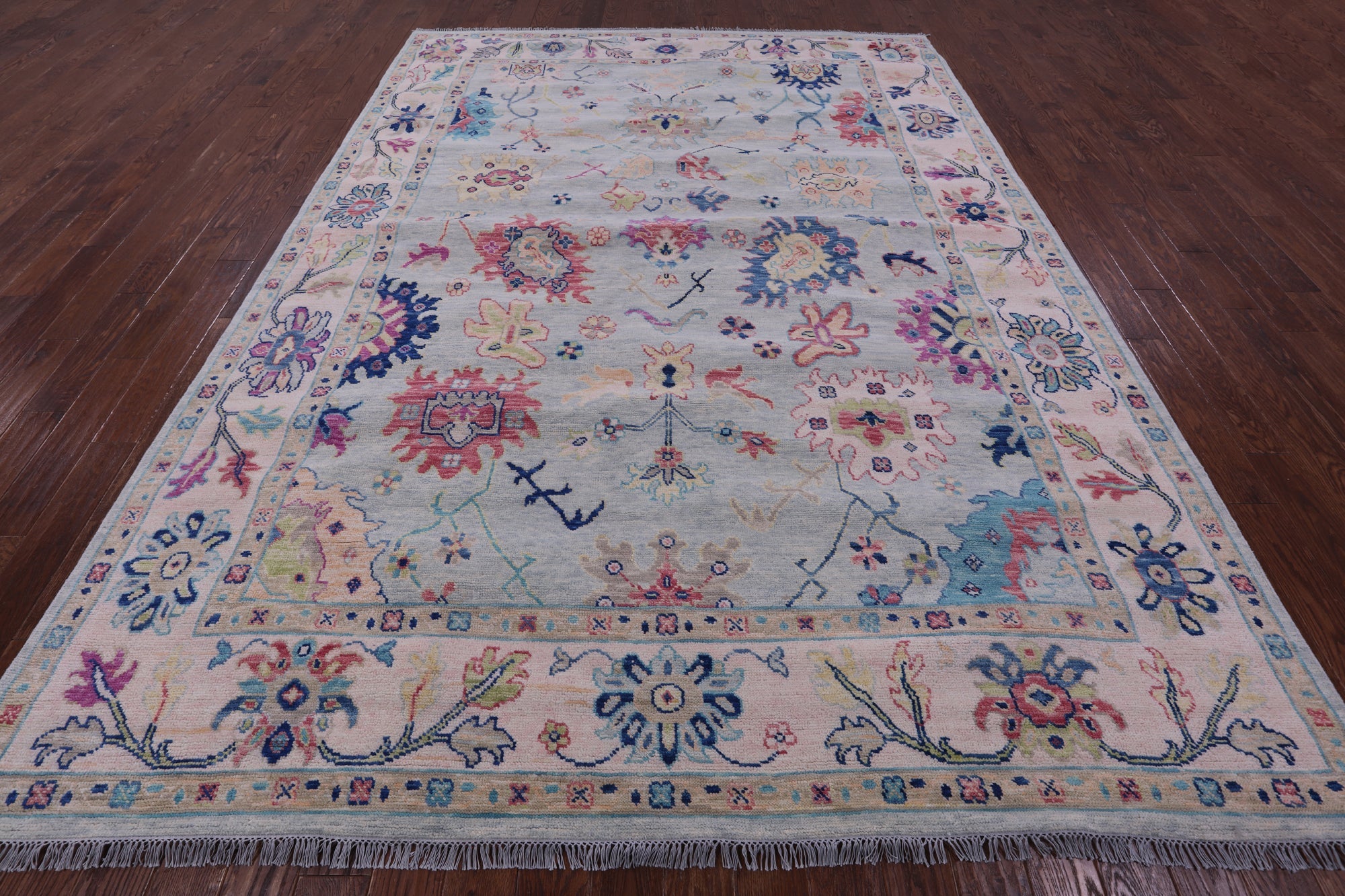Featuring a classic Oushak design, this rug is adorned with intricate geometric patterns and elegant floral motifs that are reminiscent of the art and architecture of the Ottoman Empire. The soft and plush pile is a pleasure to walk on, making it perfect for use in a bedroom, living room, or dining room.