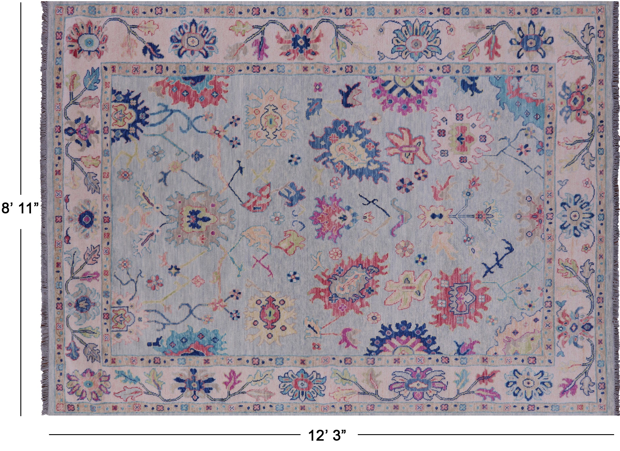 Blue 8' 11" X 12' 3" Turkish Angora Oushak Handmade Rug - Q19794