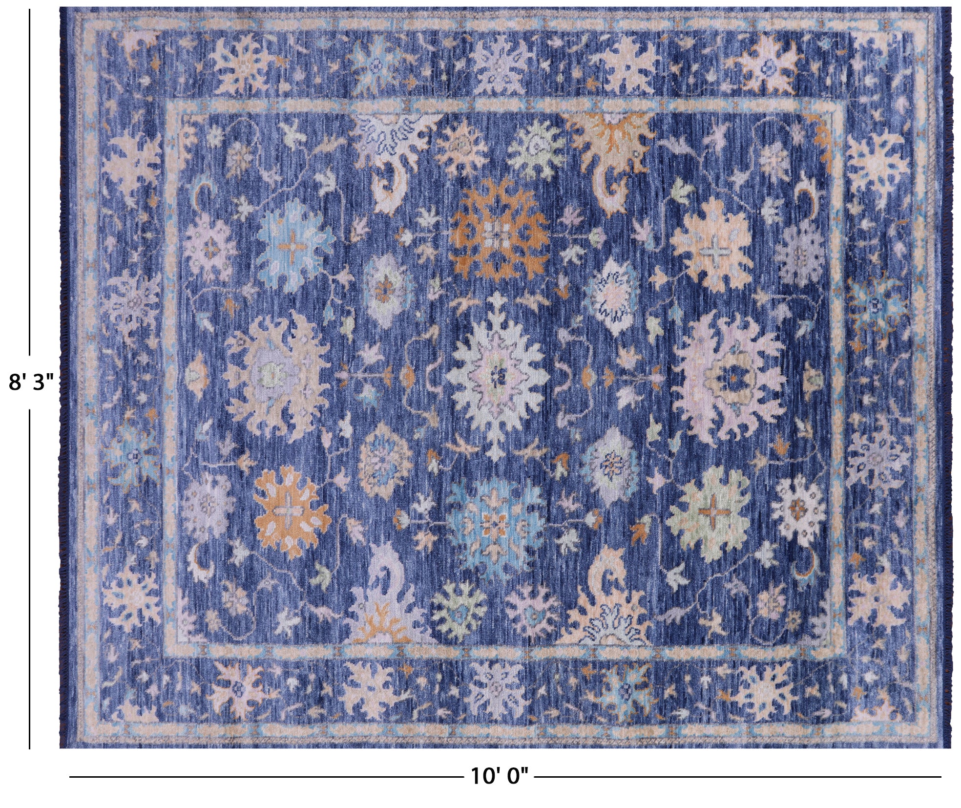 Blue 8' 3" X 10' 0" Turkish Angora Oushak Handmade Wool Rug - Q13271
