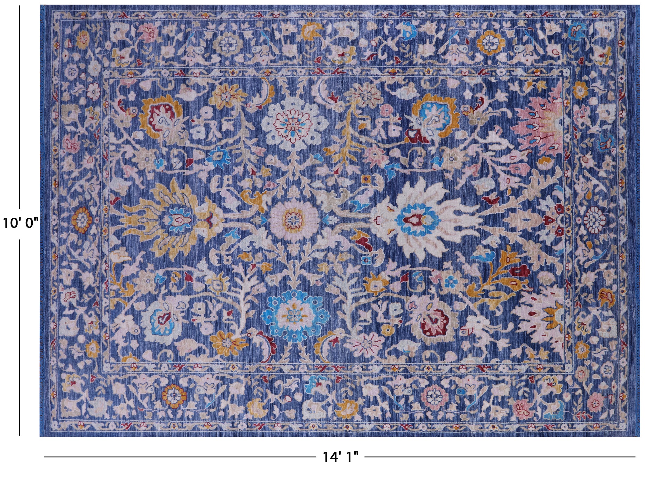 Blue Turkish Angora Oushak Handmade Wool Rug 10' 0" X 14' 1" - Q13443