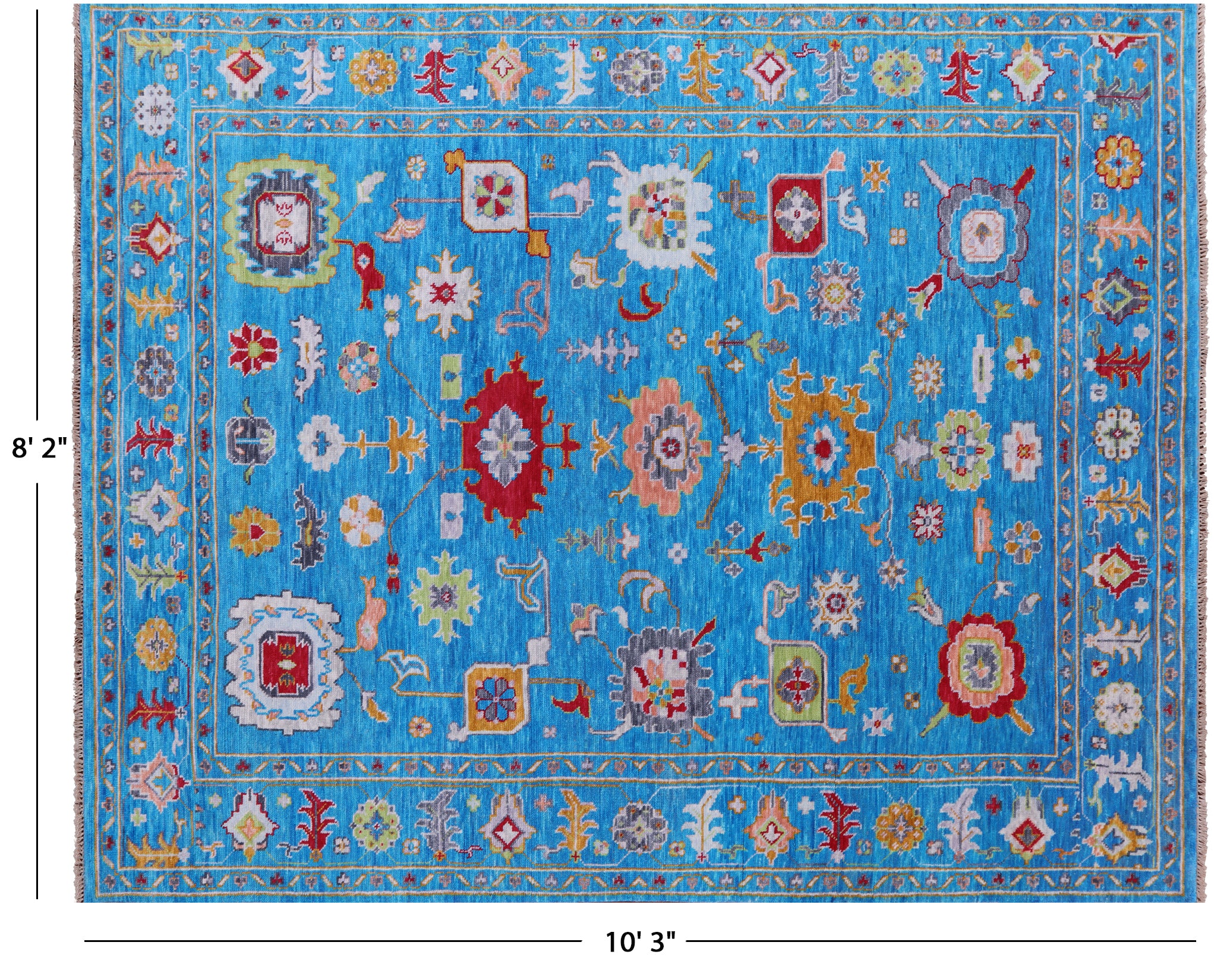 Blue 8' 2" X 10' 3" Turkish Angora Oushak Handmade Wool Rug - Q13479