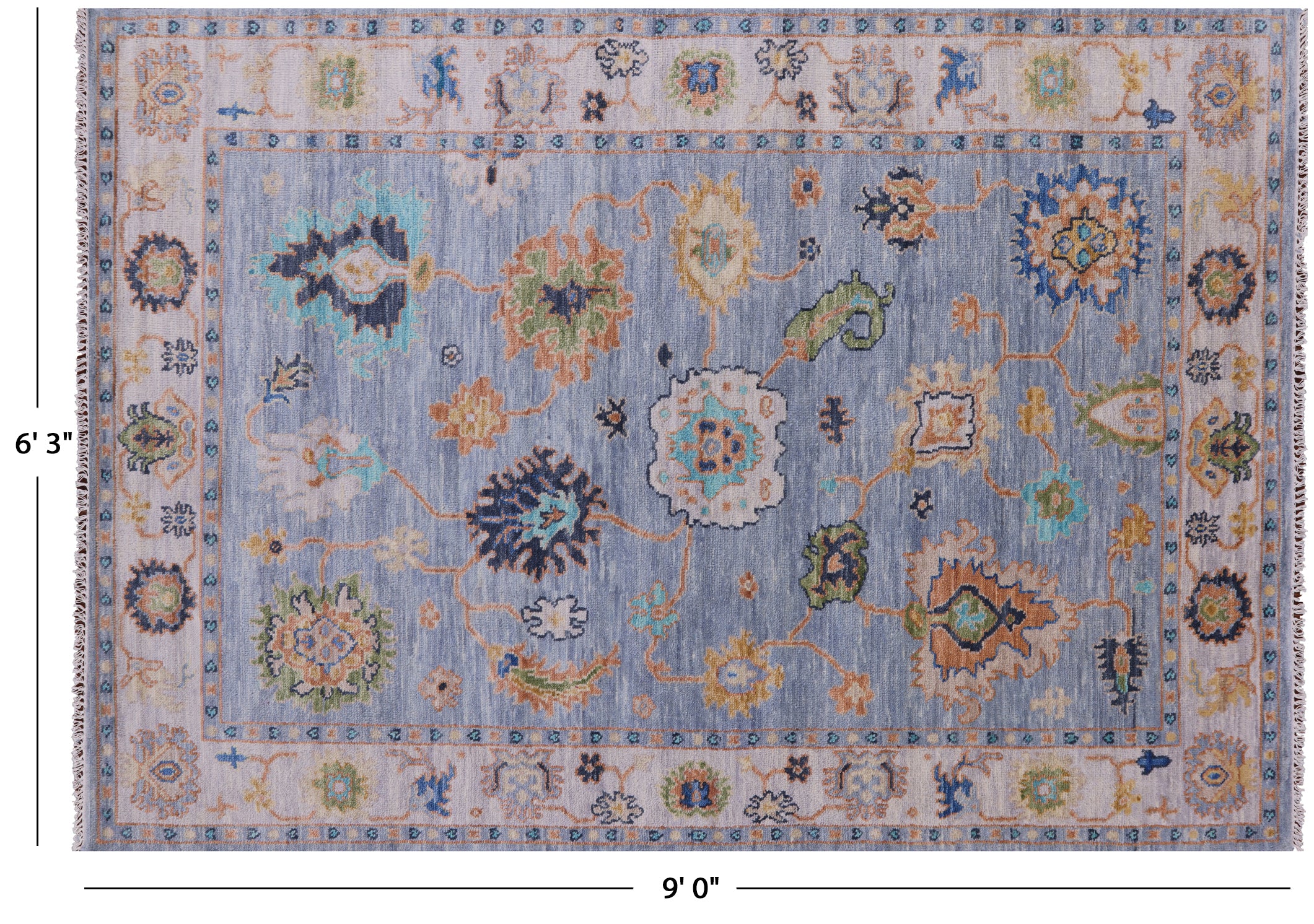 Blue Turkish Angora Oushak Handmade Wool Rug 6' 3" X 9' 0" - Q13659