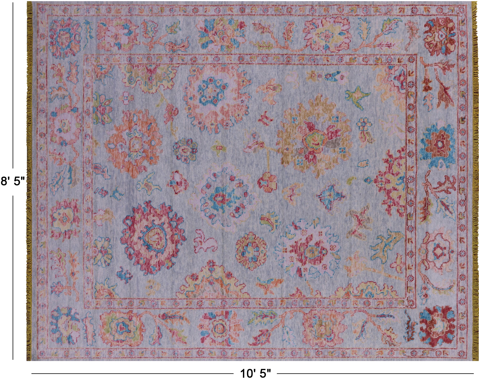 Blue 8' 5" X 10' 5" Turkish Angora Oushak Handmade Wool Rug - Q14844