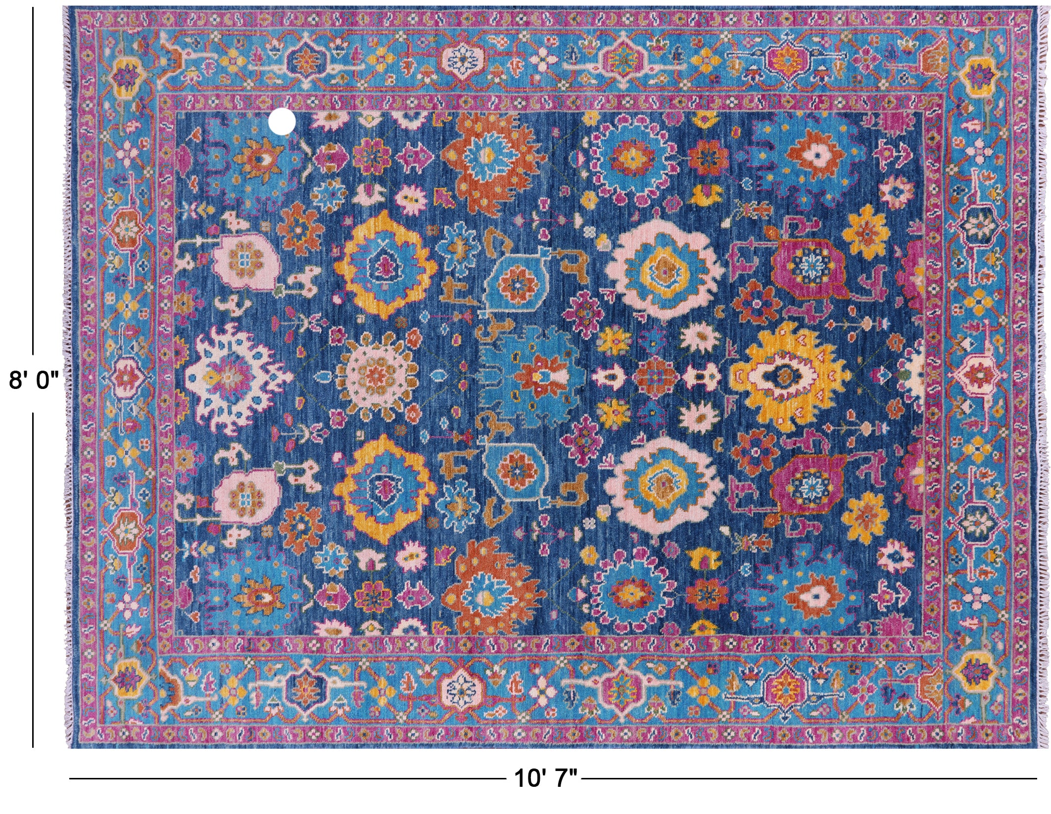Blue 8' 0" X 10' 7" Turkish Angora Oushak Handmade Wool Rug - Q15407