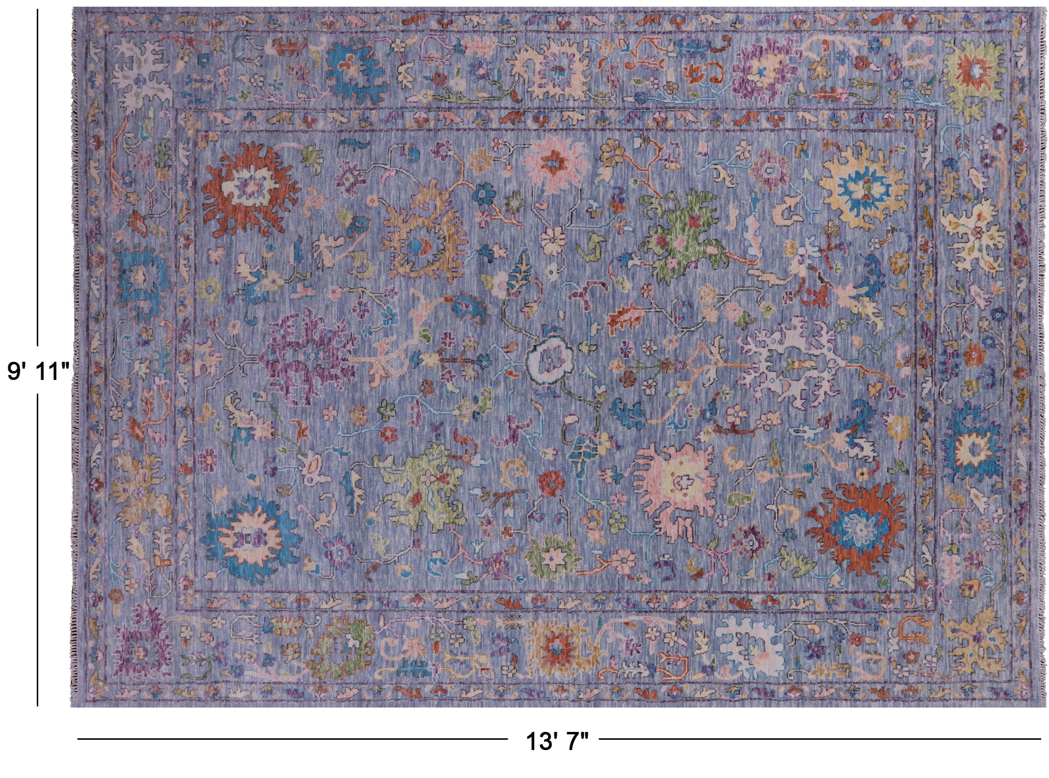 Blue 9' 11" X 13' 7" Turkish Angora Oushak Handmade Wool Rug - Q15681