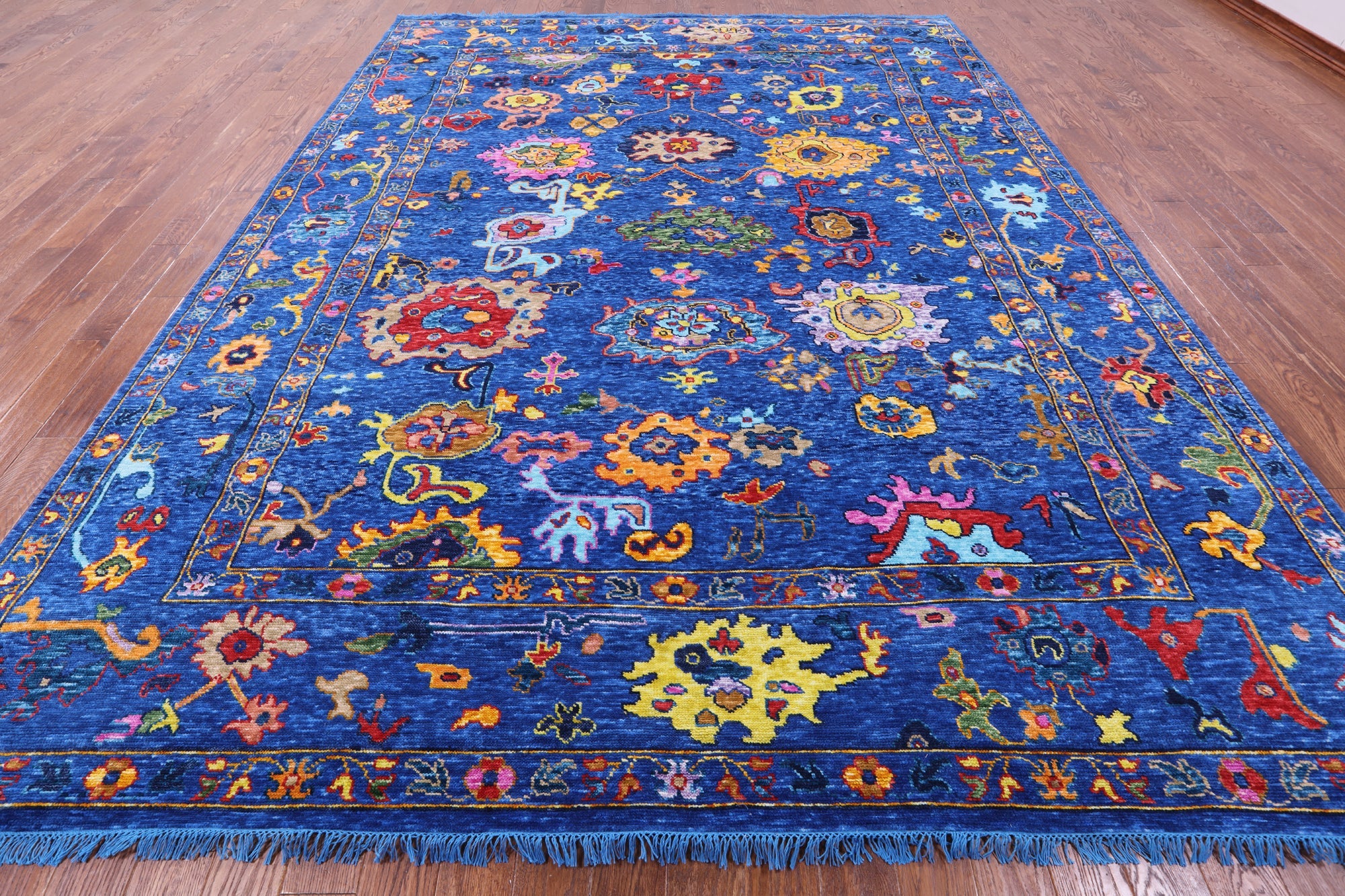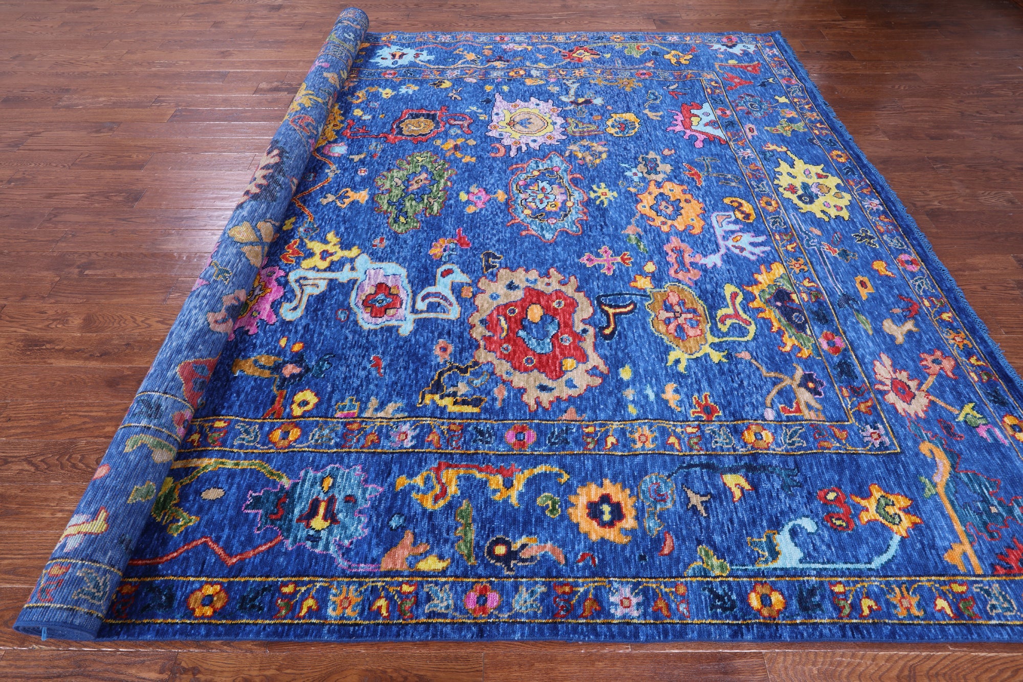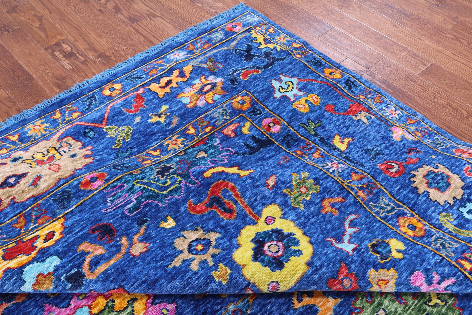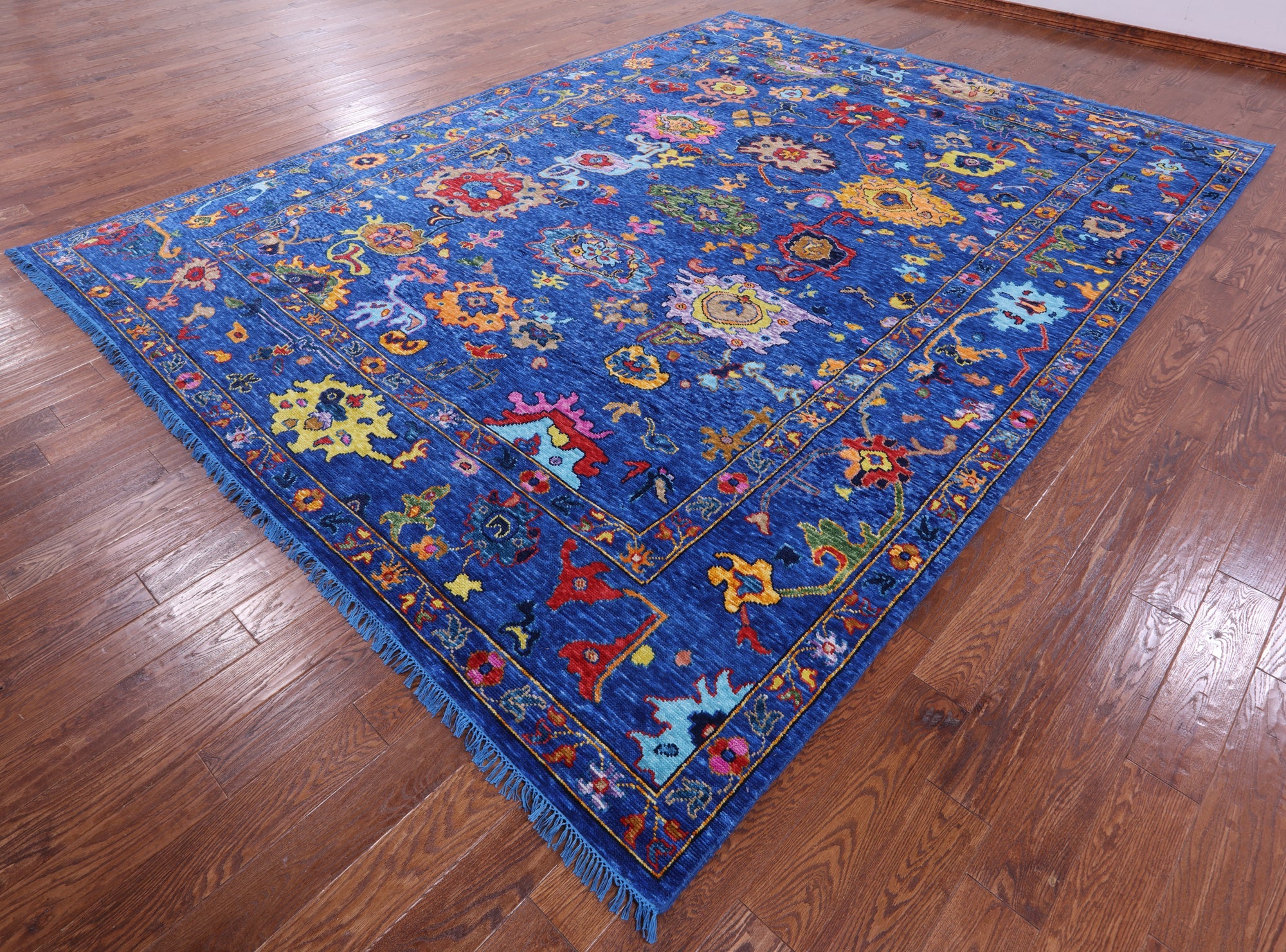 Blue 10' 2" X 13' 7" Turkish Angora Oushak Handmade Wool Rug - Q16096