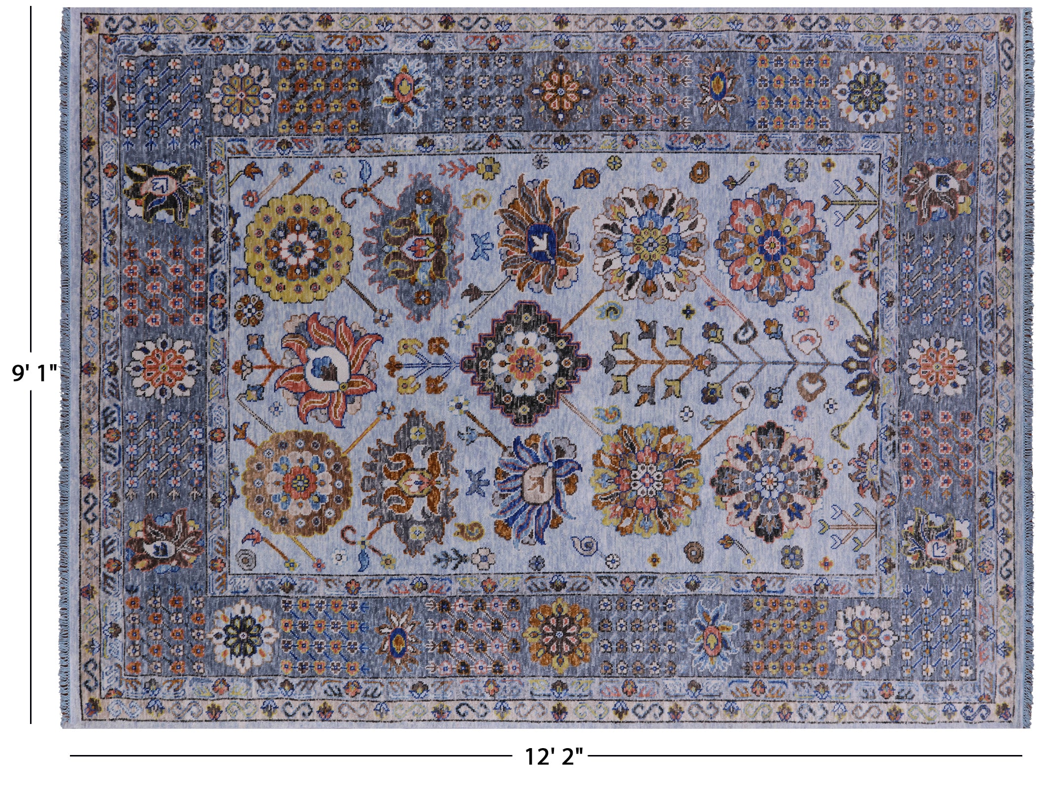 Blue Turkish Angora Oushak Handmade Wool Rug 9' 1" X 12' 2" - Q18911