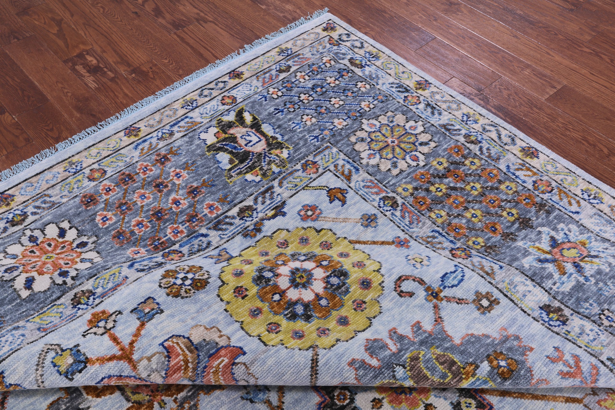 Blue Turkish Angora Oushak Handmade Wool Rug 9' 1" X 12' 2" - Q18911 is backordered and will ship as soon as it is back in stock.
