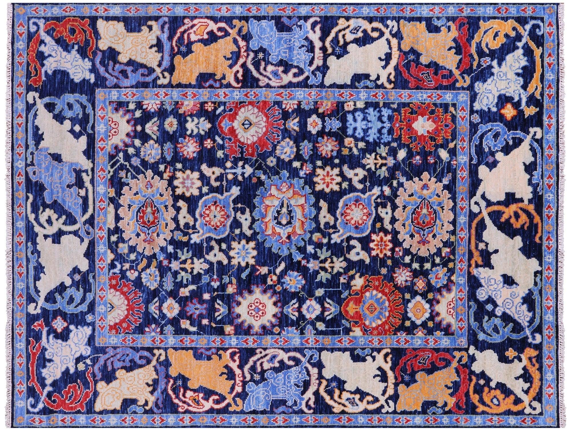 Blue Turkish Angora Oushak Handmade Wool Rug 8' 2" X 10' 4" - Q21592