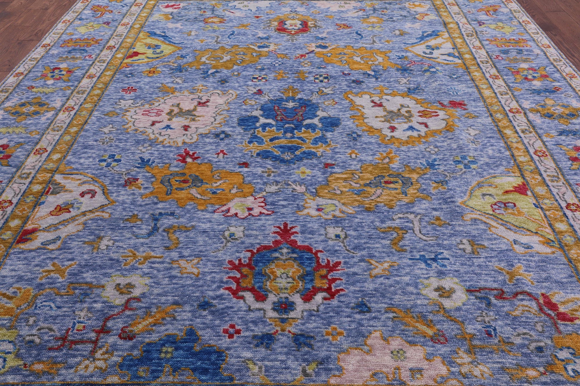 Blue 9' 4" X 12' 0" Turkish Angora Oushak Handmade Wool Rug - Q9167 is backordered and will ship as soon as it is back in stock.