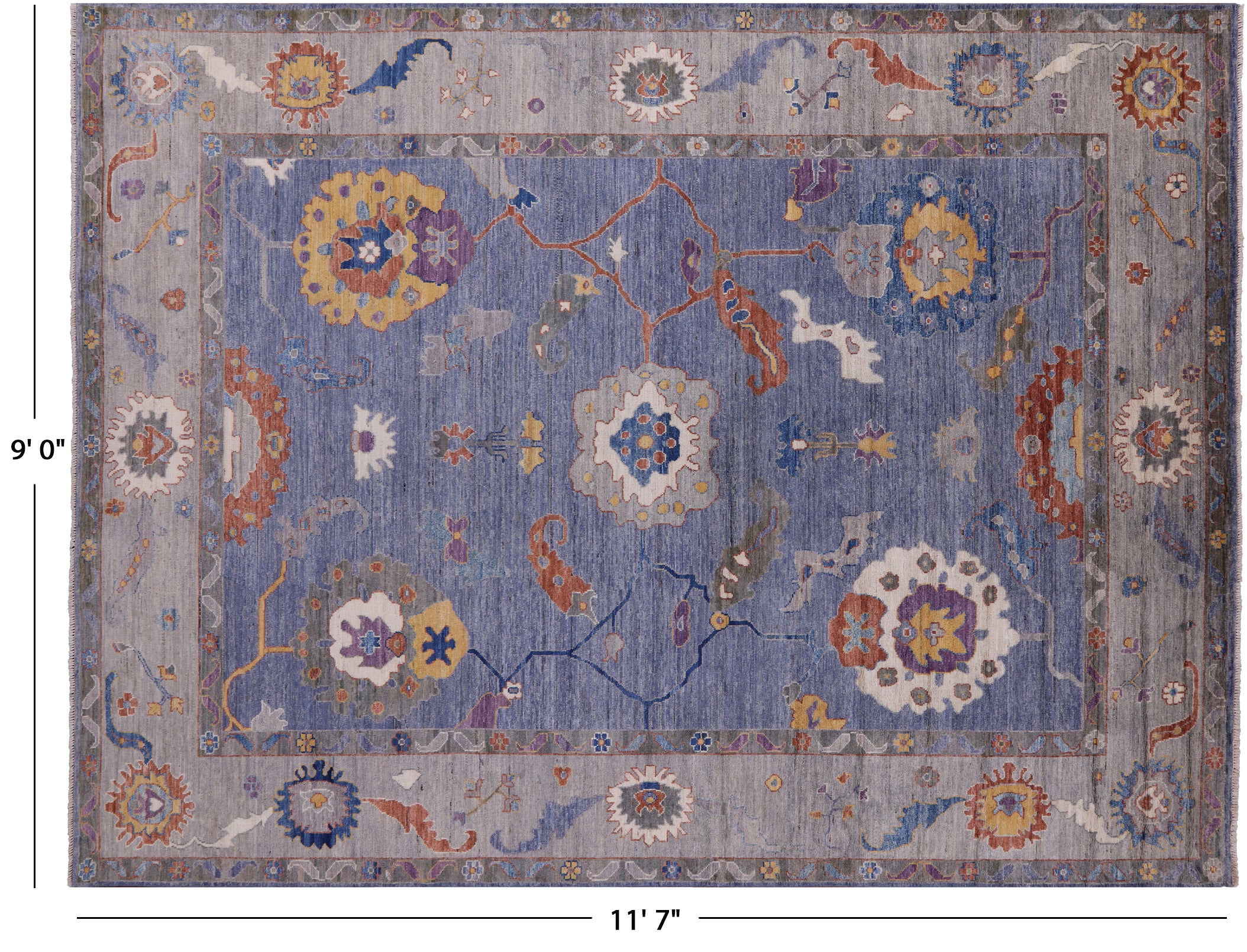 Blue Turkish Oushak Hand Knotted Rug 9' 0" X 11' 7" - Q9619