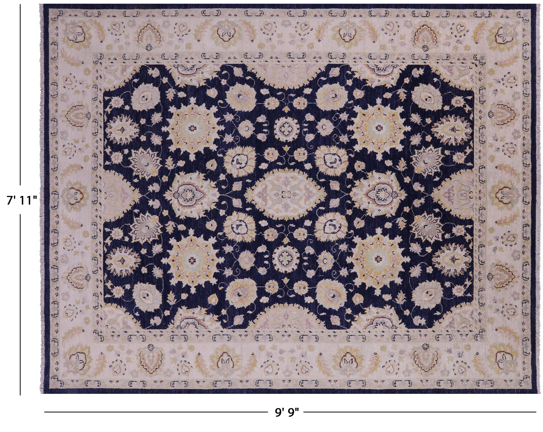 Blue 7' 11" X 9' 9" Turkish Oushak Hand Knotted Wool Rug - Q10195