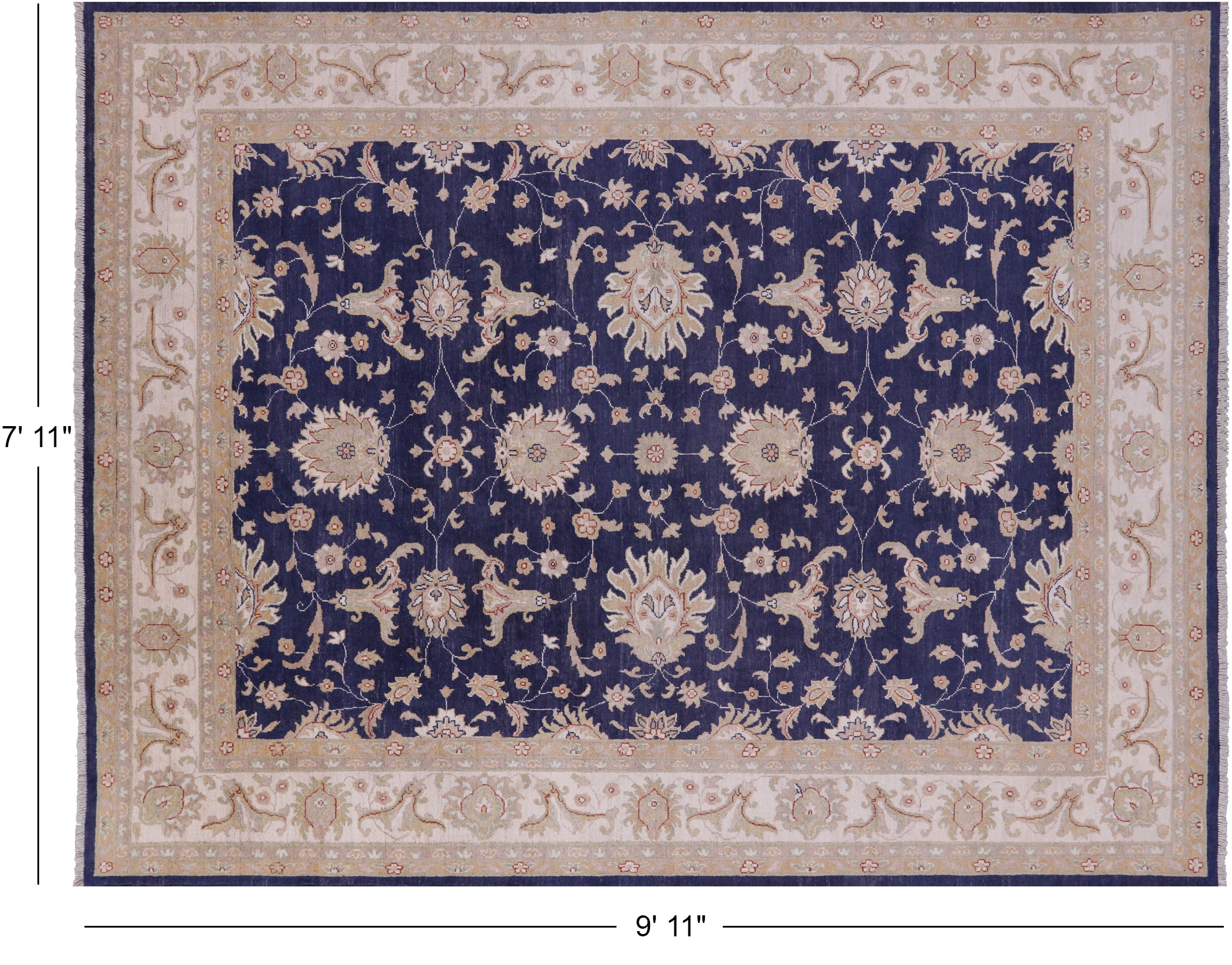 Blue Turkish Oushak Hand Knotted Wool Rug 7' 11" X 9' 11" - Q10198