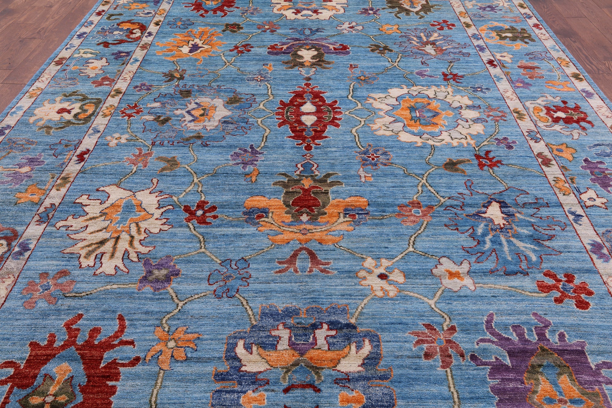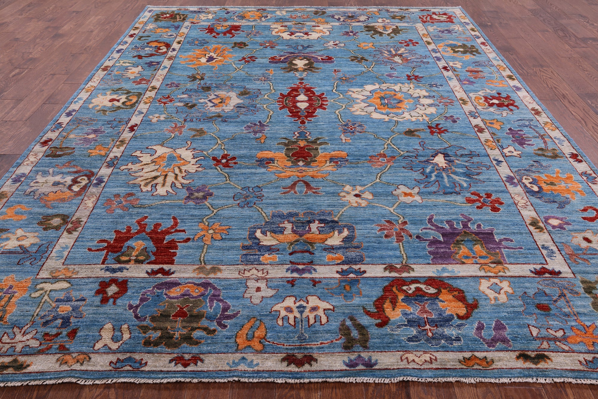 Blue Turkish Oushak Hand-Knotted Wool Rug 8' 9" X 12' 3" - Q8157 is backordered and will ship as soon as it is back in stock.