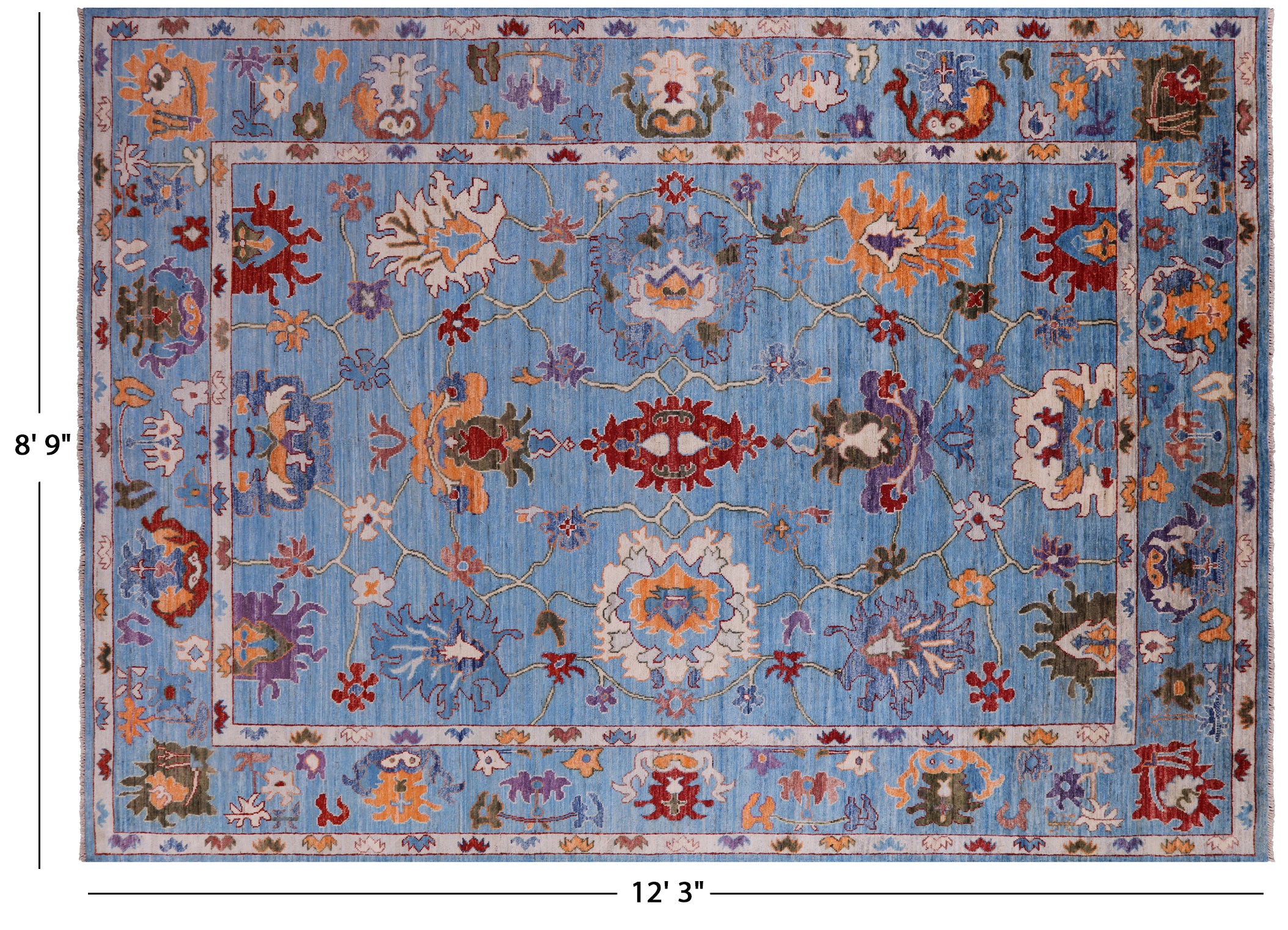 Blue Turkish Oushak Hand-Knotted Wool Rug 8' 9" X 12' 3" - Q8157