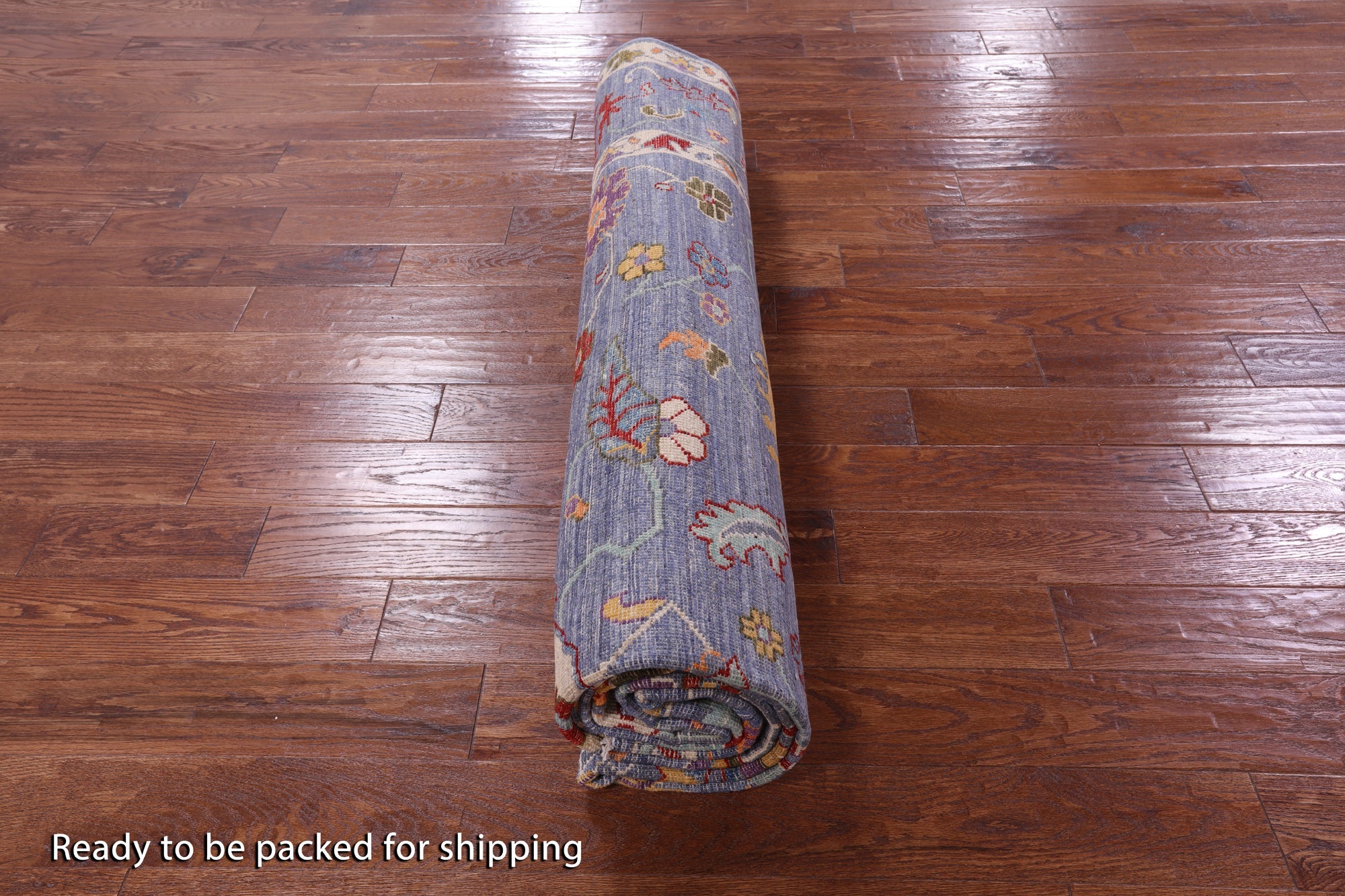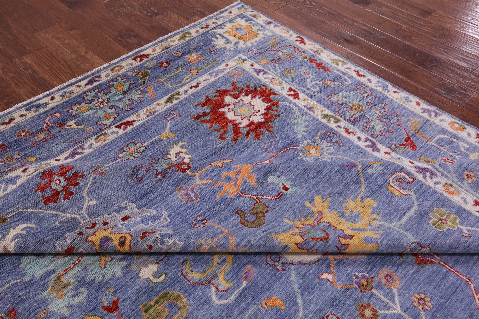 Blue Turkish Oushak Hand Knotted Wool Rug 9' 0" X 11' 10" - Q9731