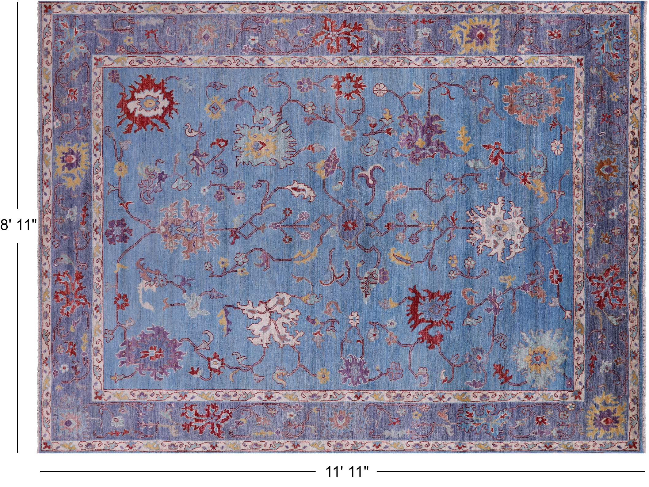 Blue 8' 11" X 11' 11" Turkish Oushak Handmade Wool Rug - Q9786