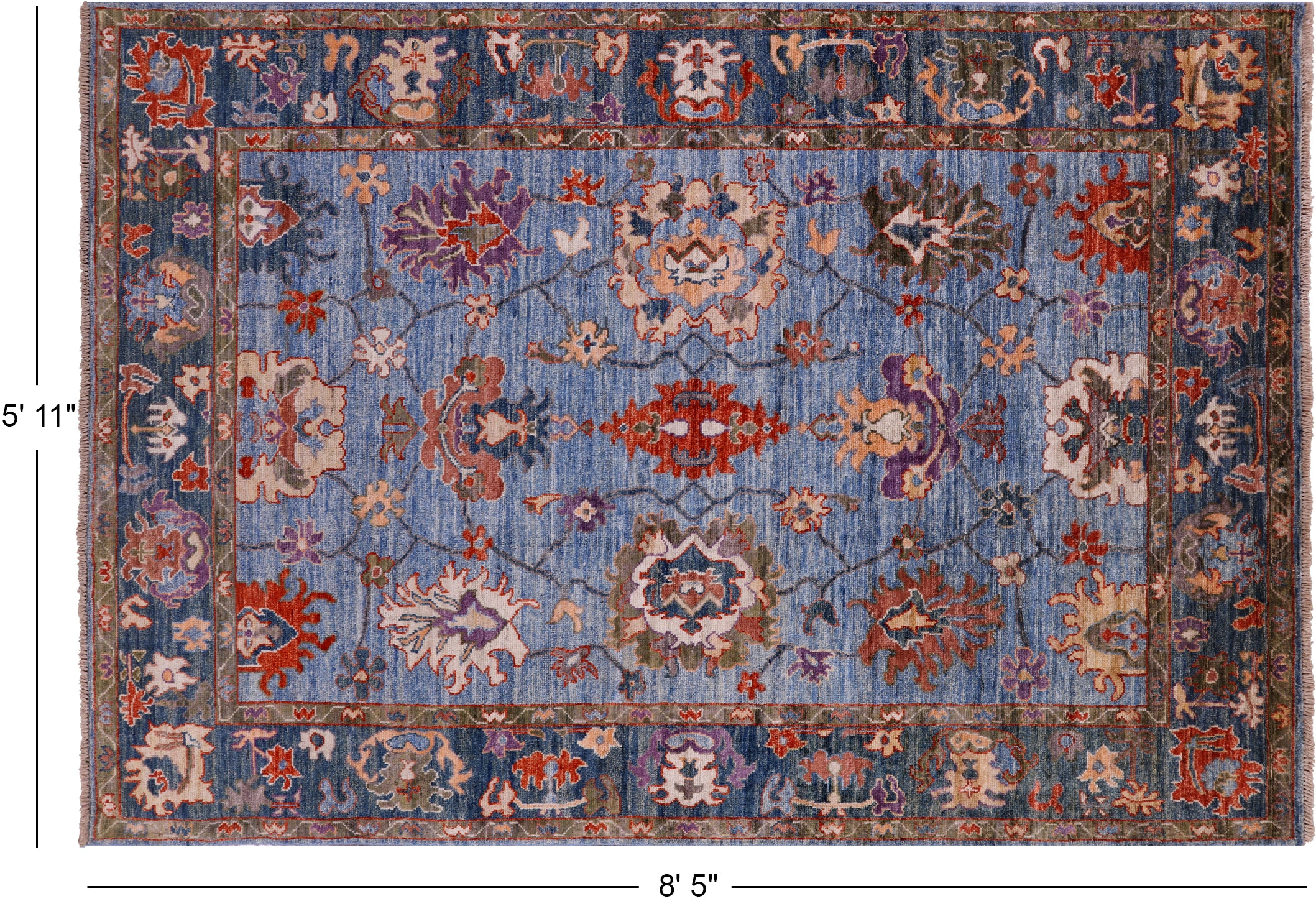 Blue Turkish Oushak Handmade Wool Rug 5' 11" X 8' 5" - Q9790 is backordered and will ship as soon as it is back in stock.