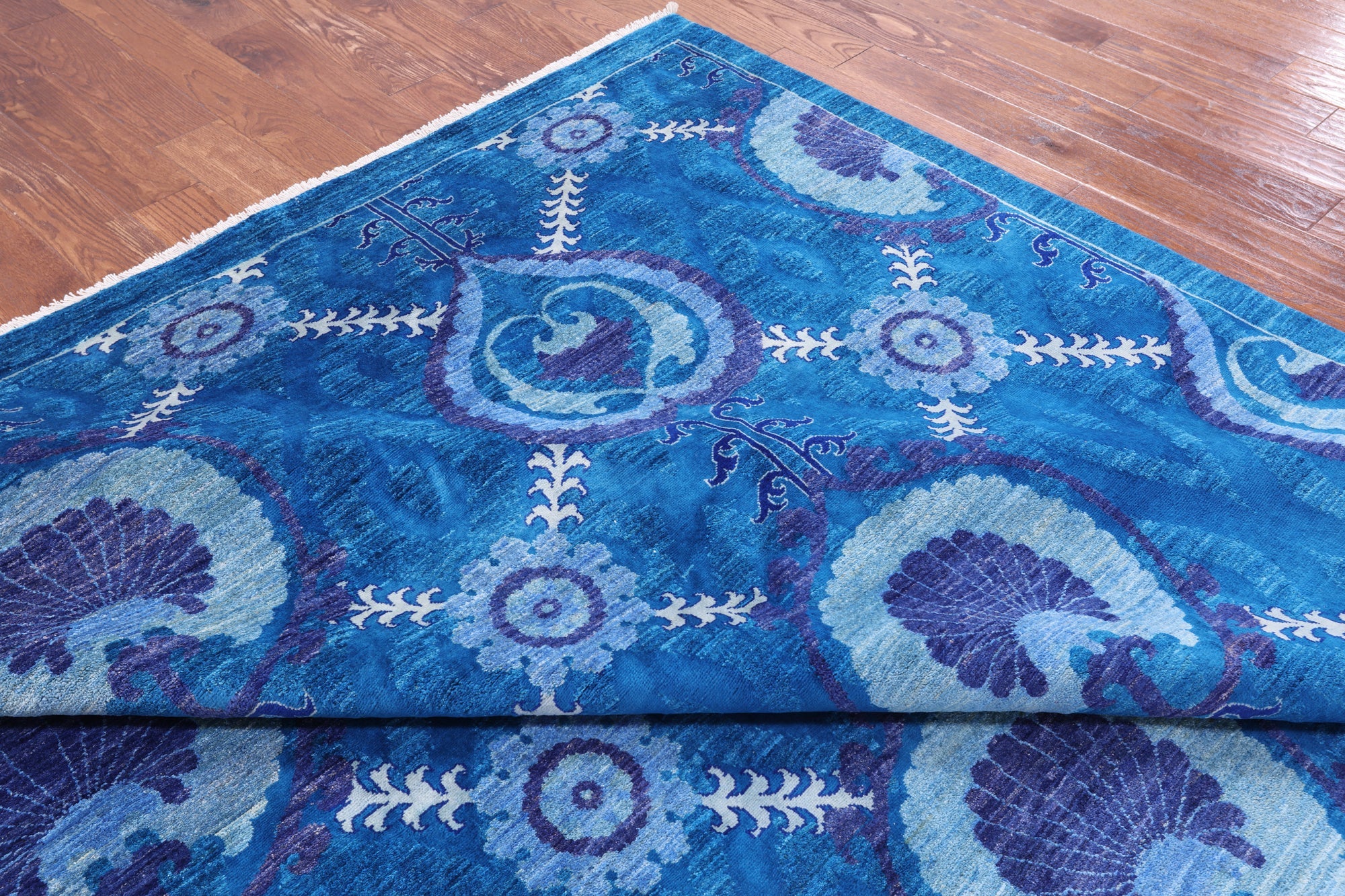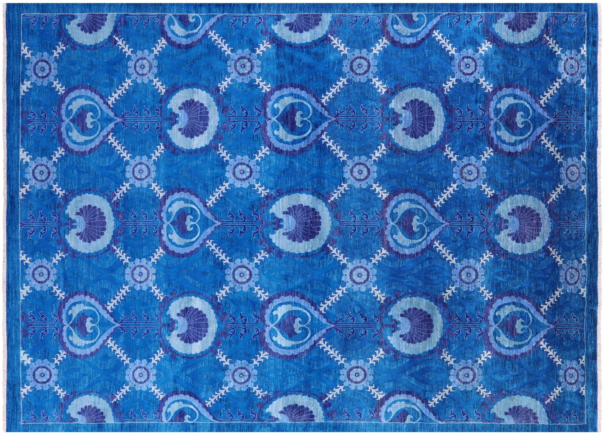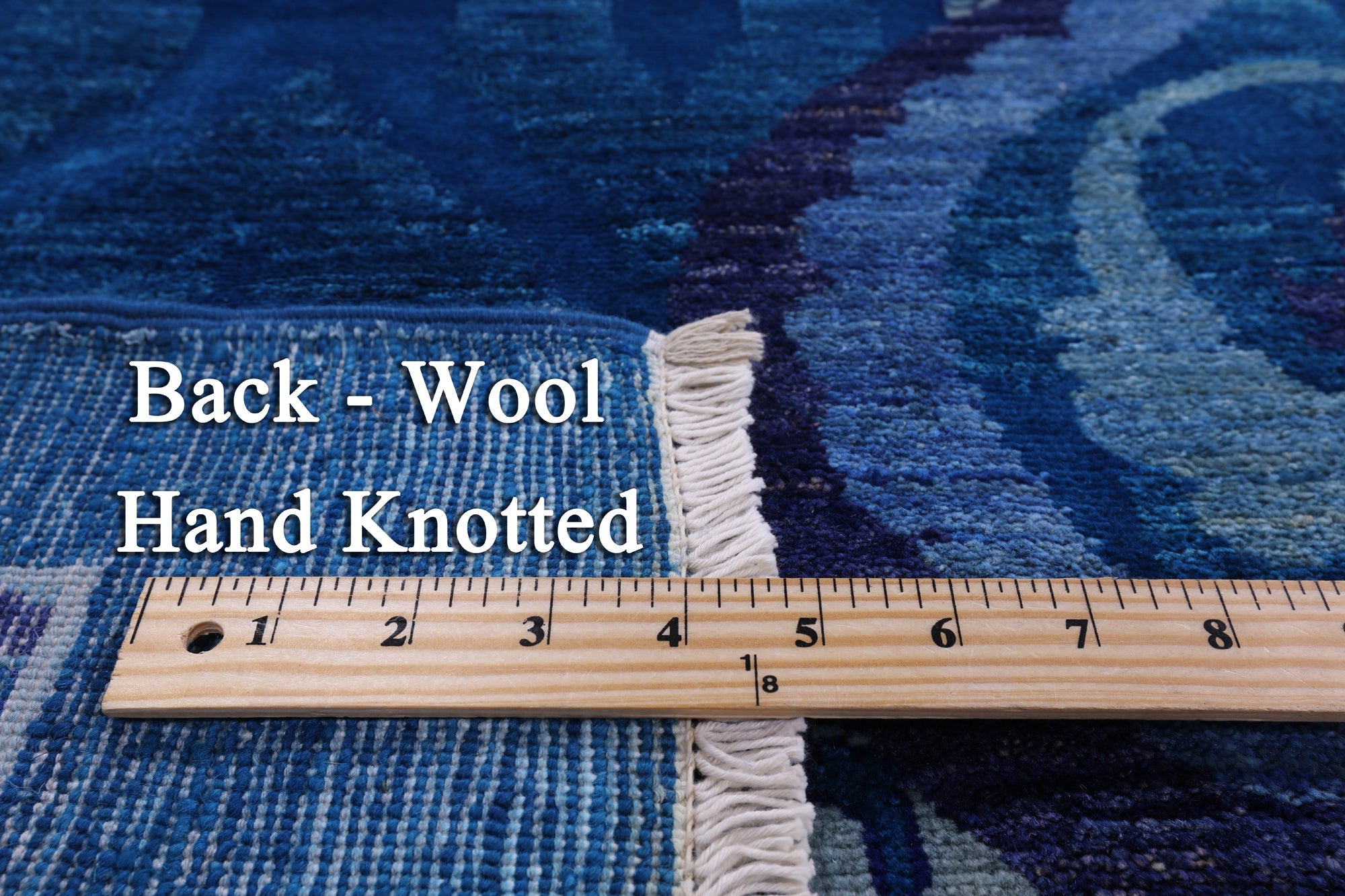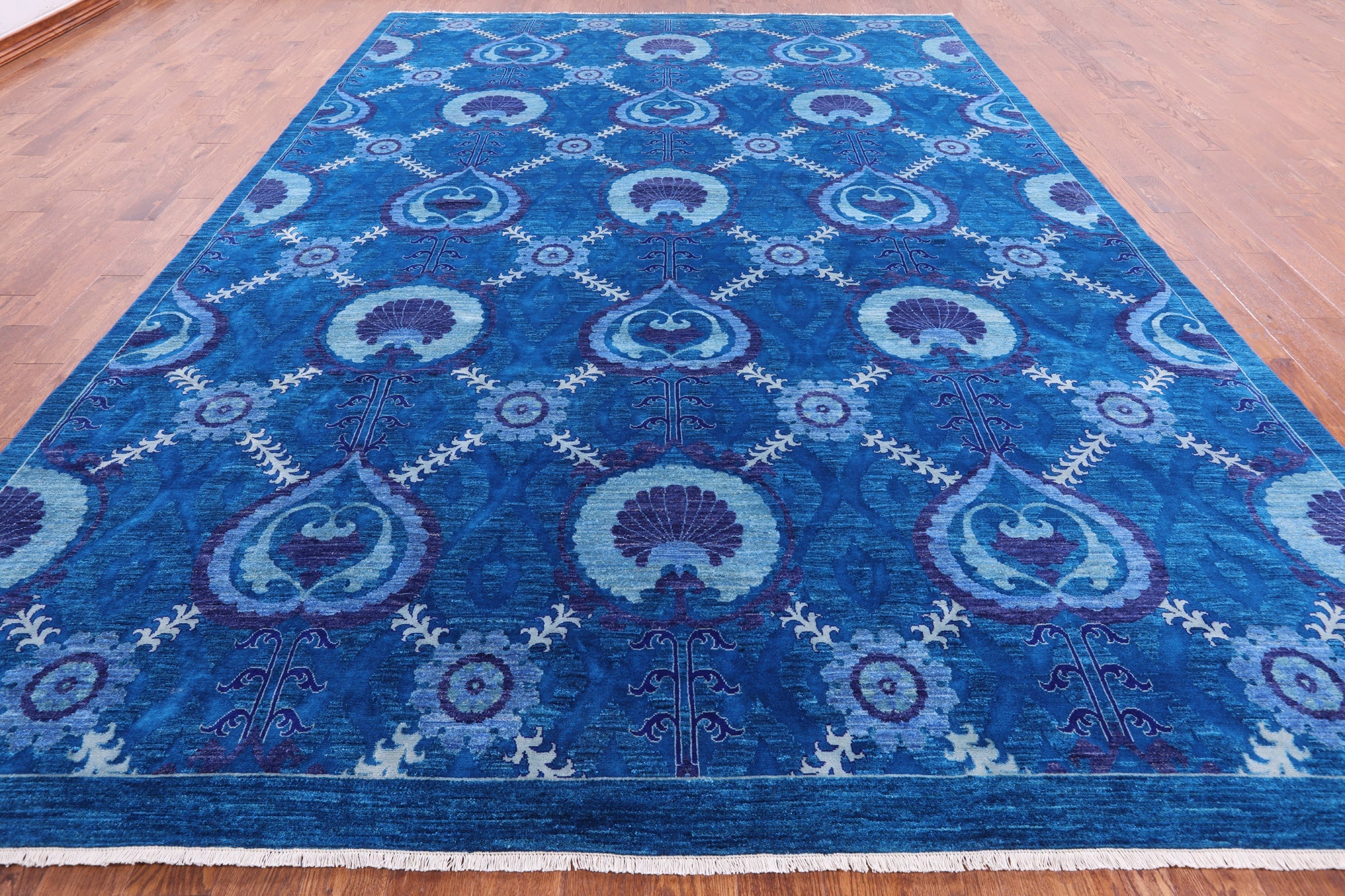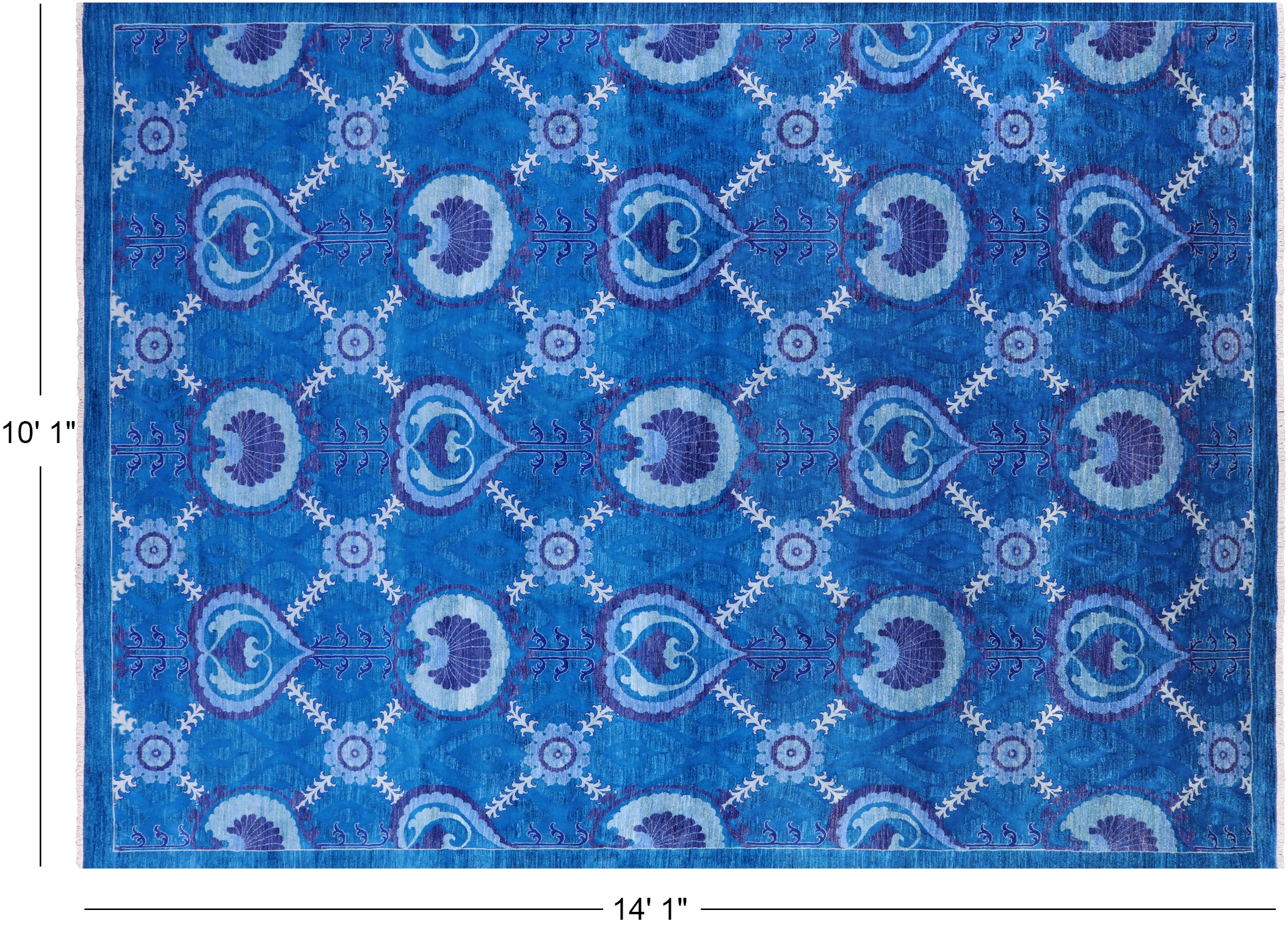 Blue 10' 1" X 14' 1" William Morris Hand Knotted Wool Rug - Q6686