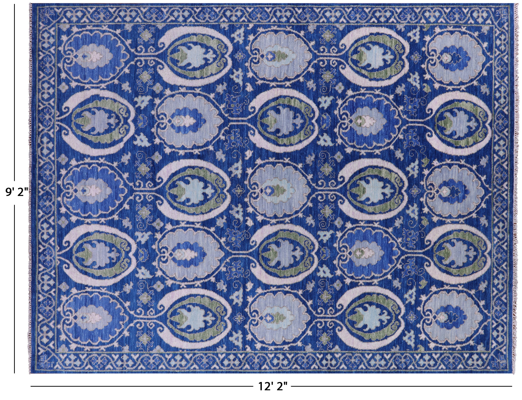 Blue William Morris Handmade Wool Rug 9' 2" X 12' 2" - Q13599