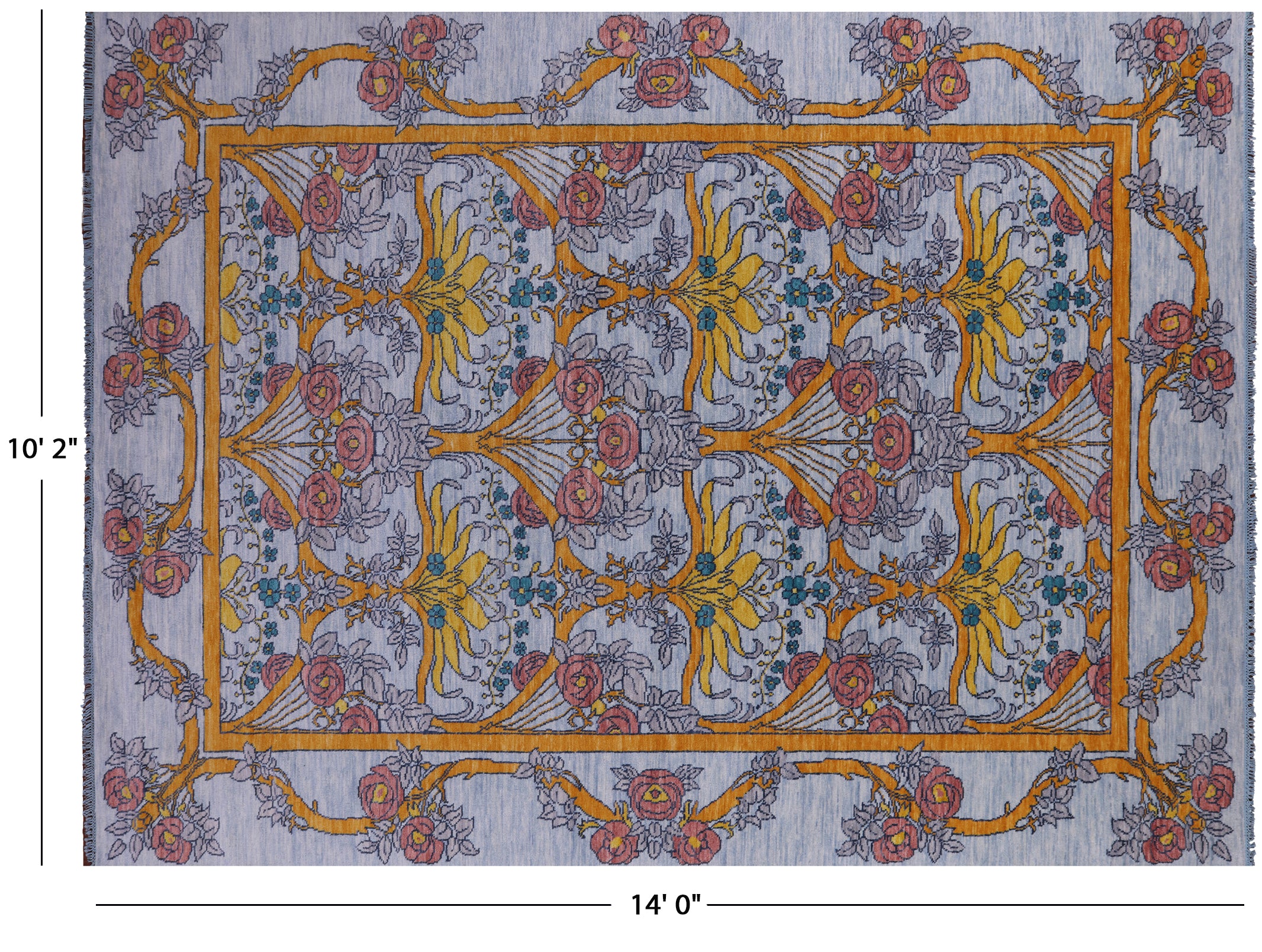 Blue William Morris Handmade Wool Rug 10' 2" X 14' 0" - Q19029 is backordered and will ship as soon as it is back in stock.
