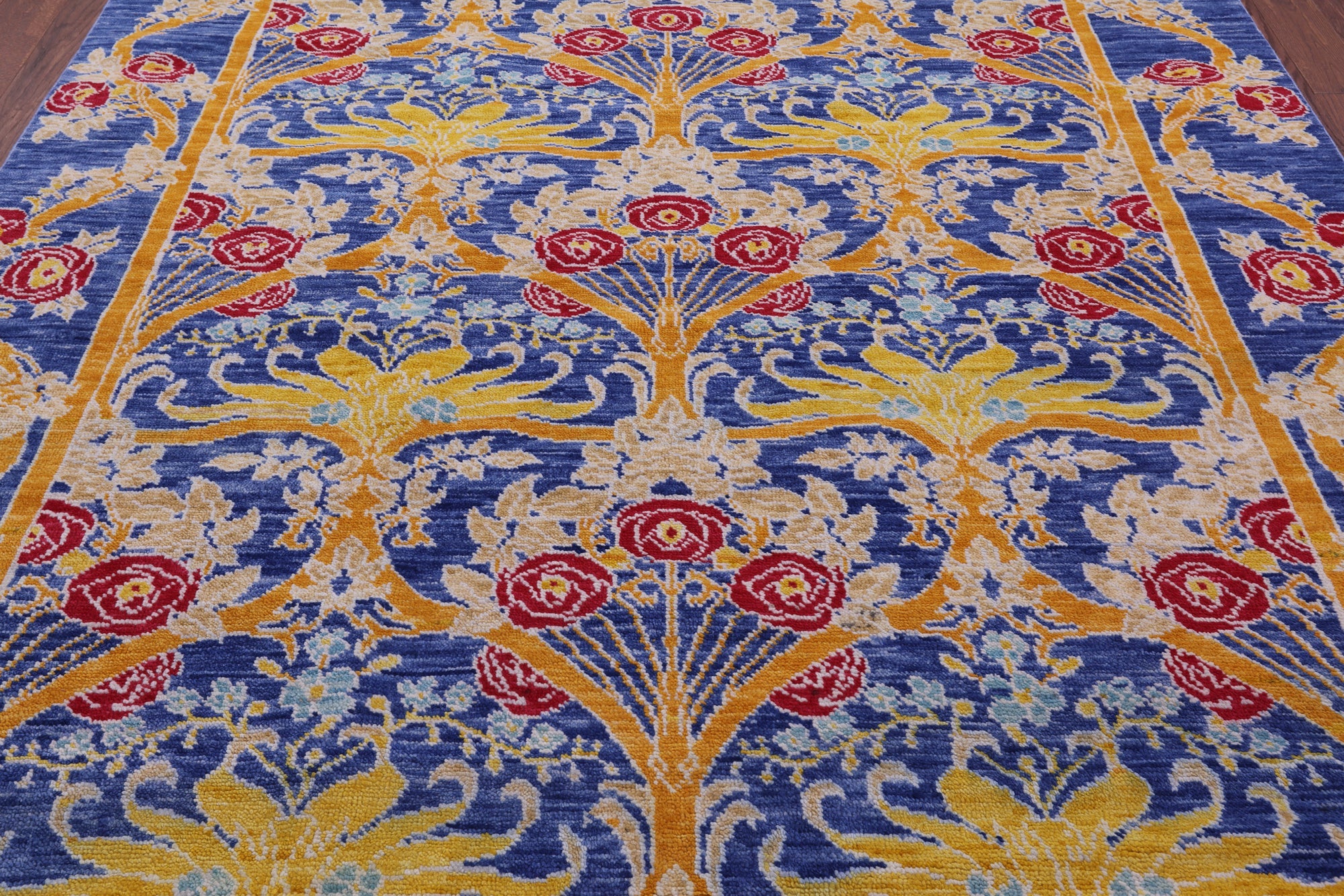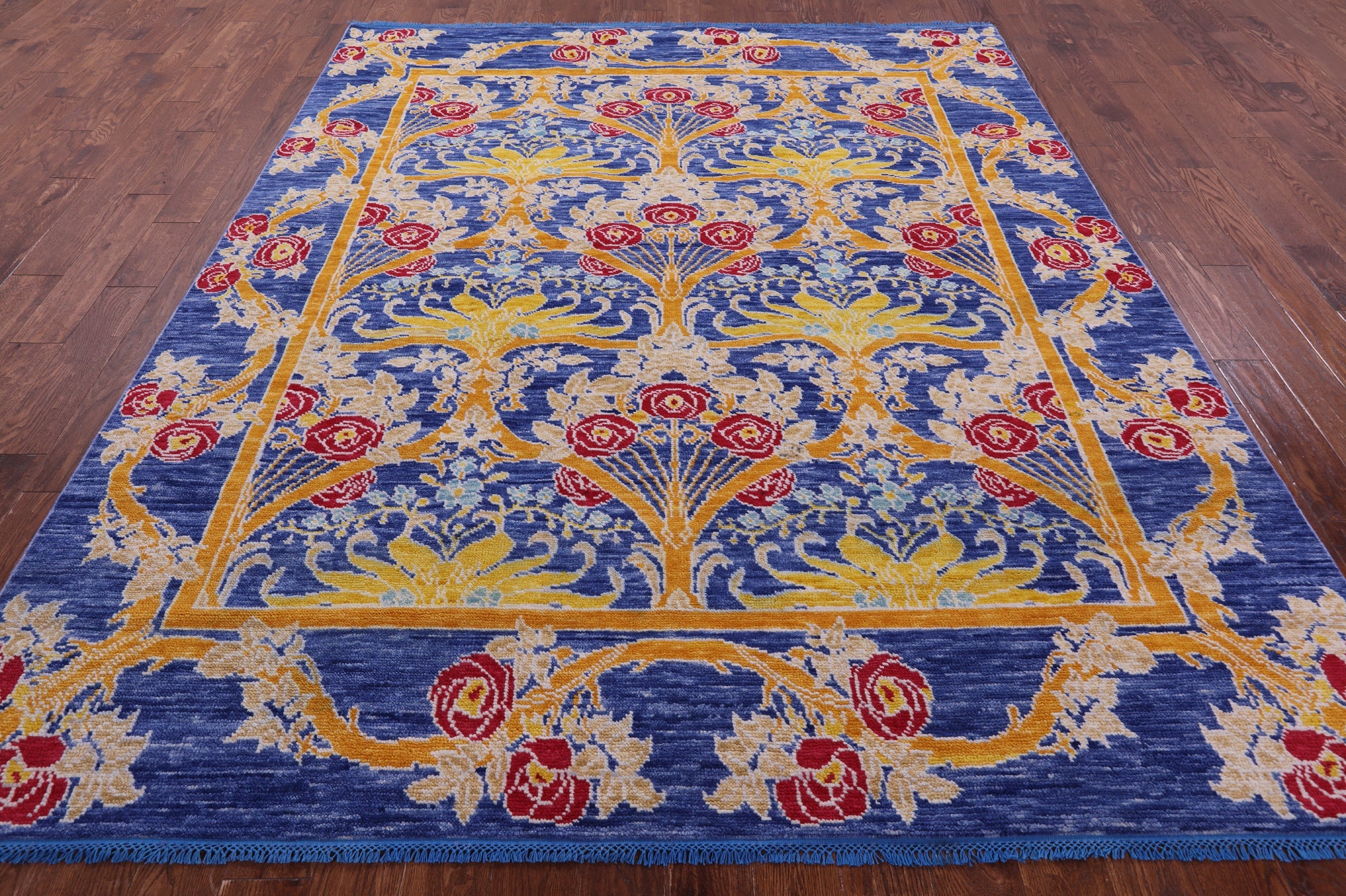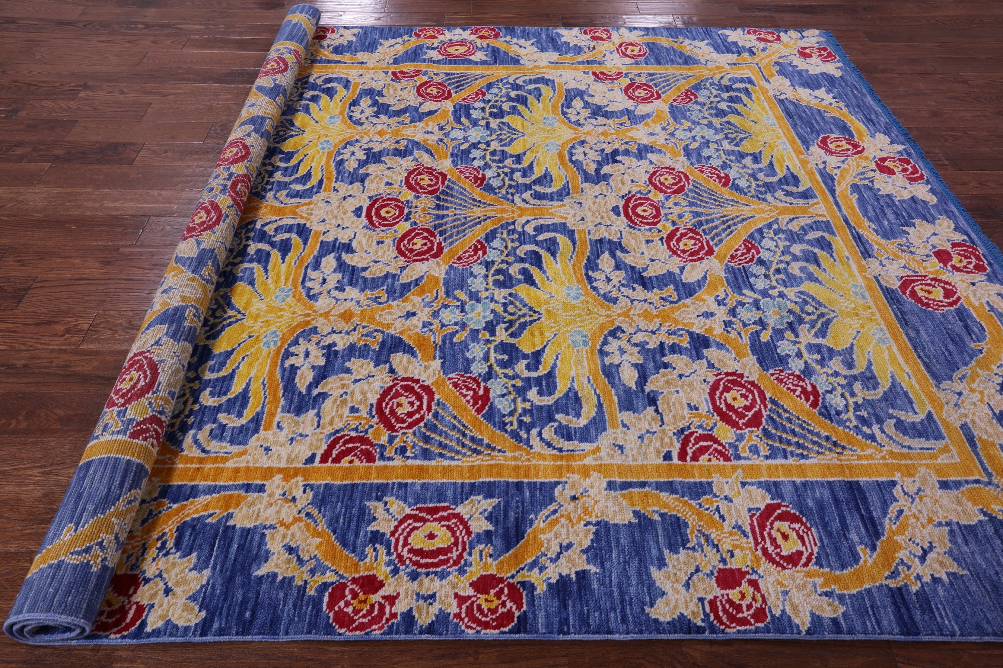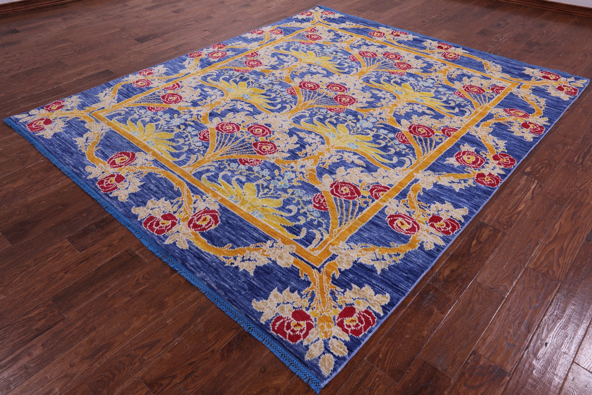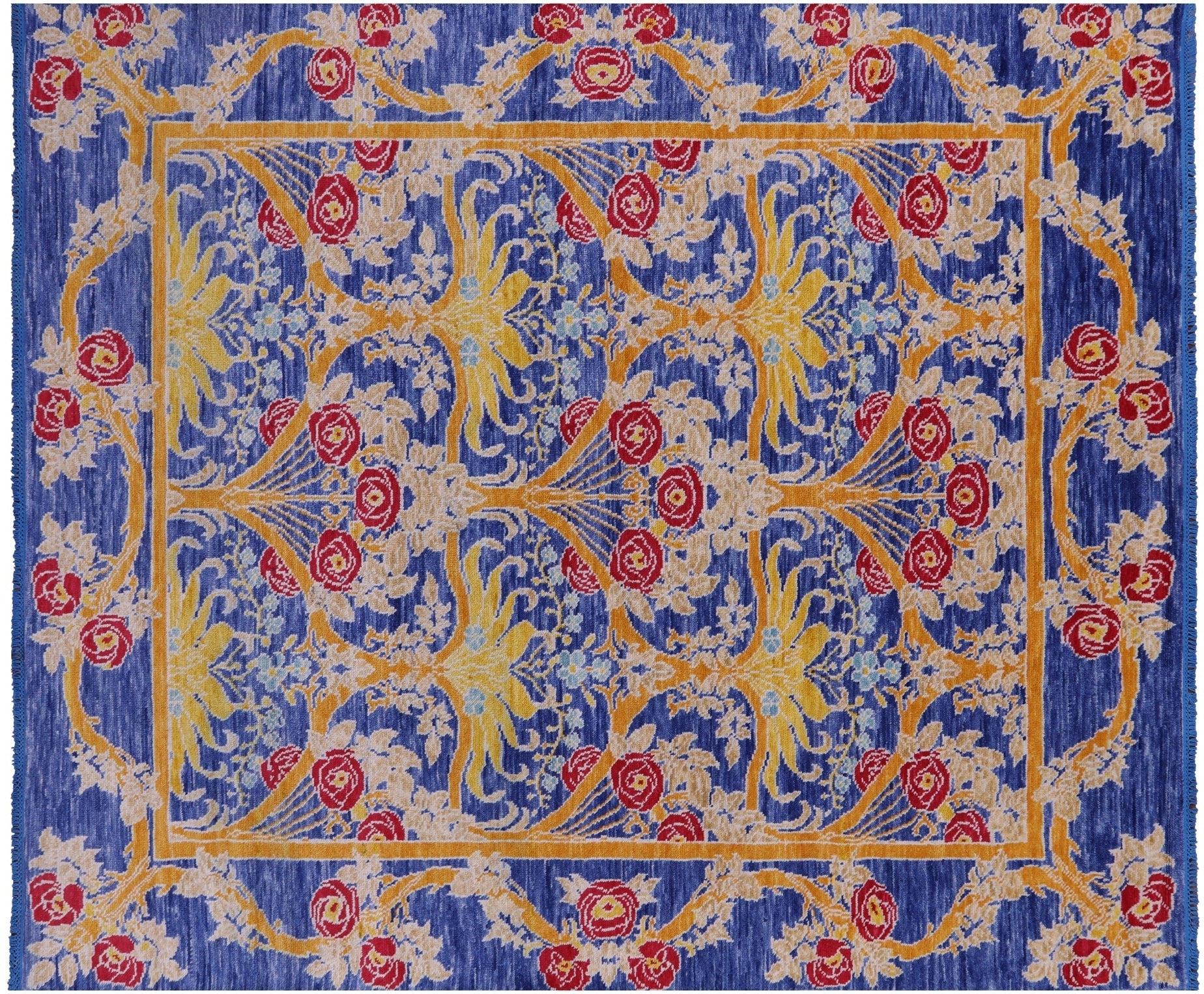 Blue William Morris Handmade Wool Rug 8' 0" X 9' 5" - Q19051