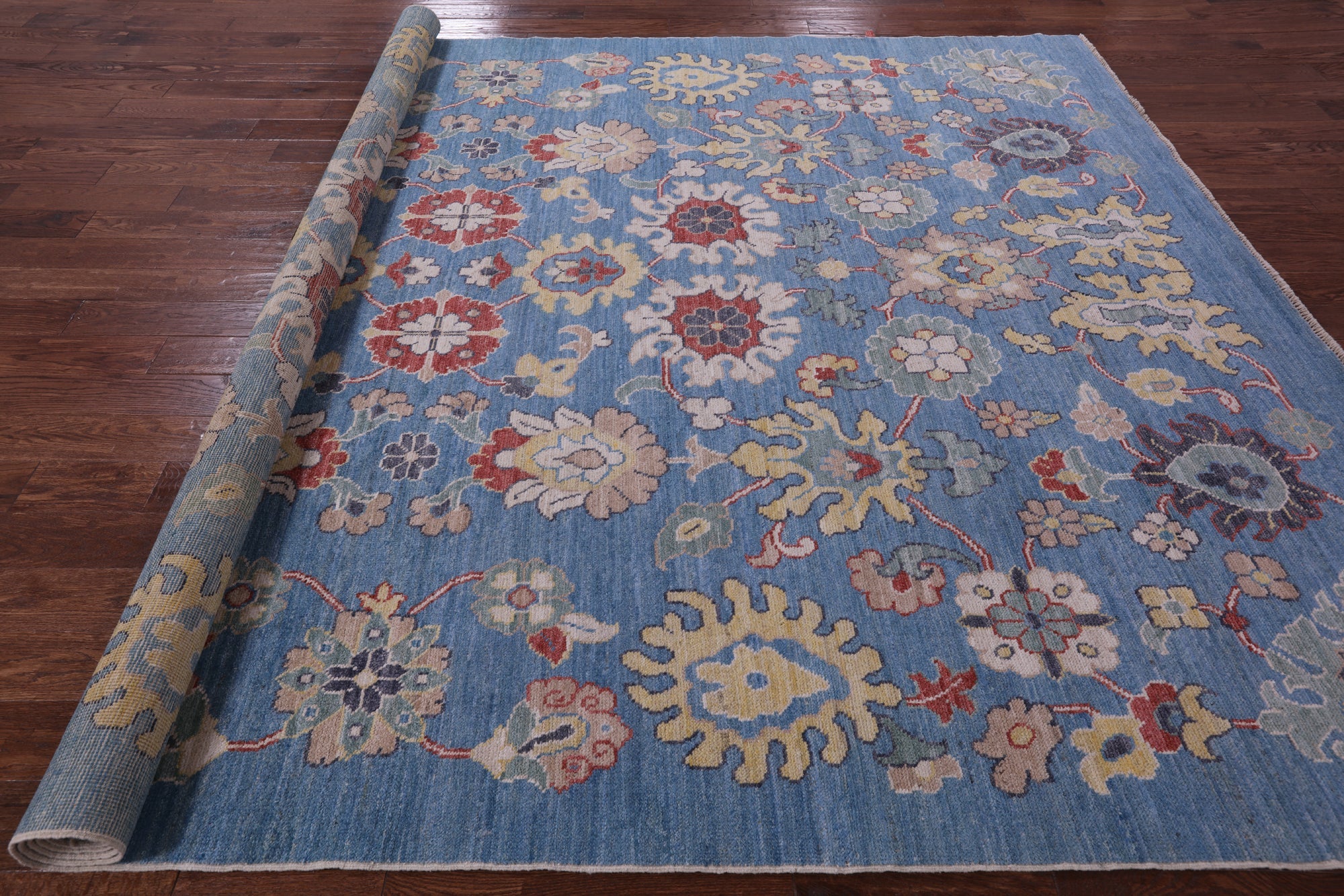 Blue Wool On Wool Turkish Oushak Handmade Rug 9' 0" X 12' 7" - Q10501 is backordered and will ship as soon as it is back in stock.