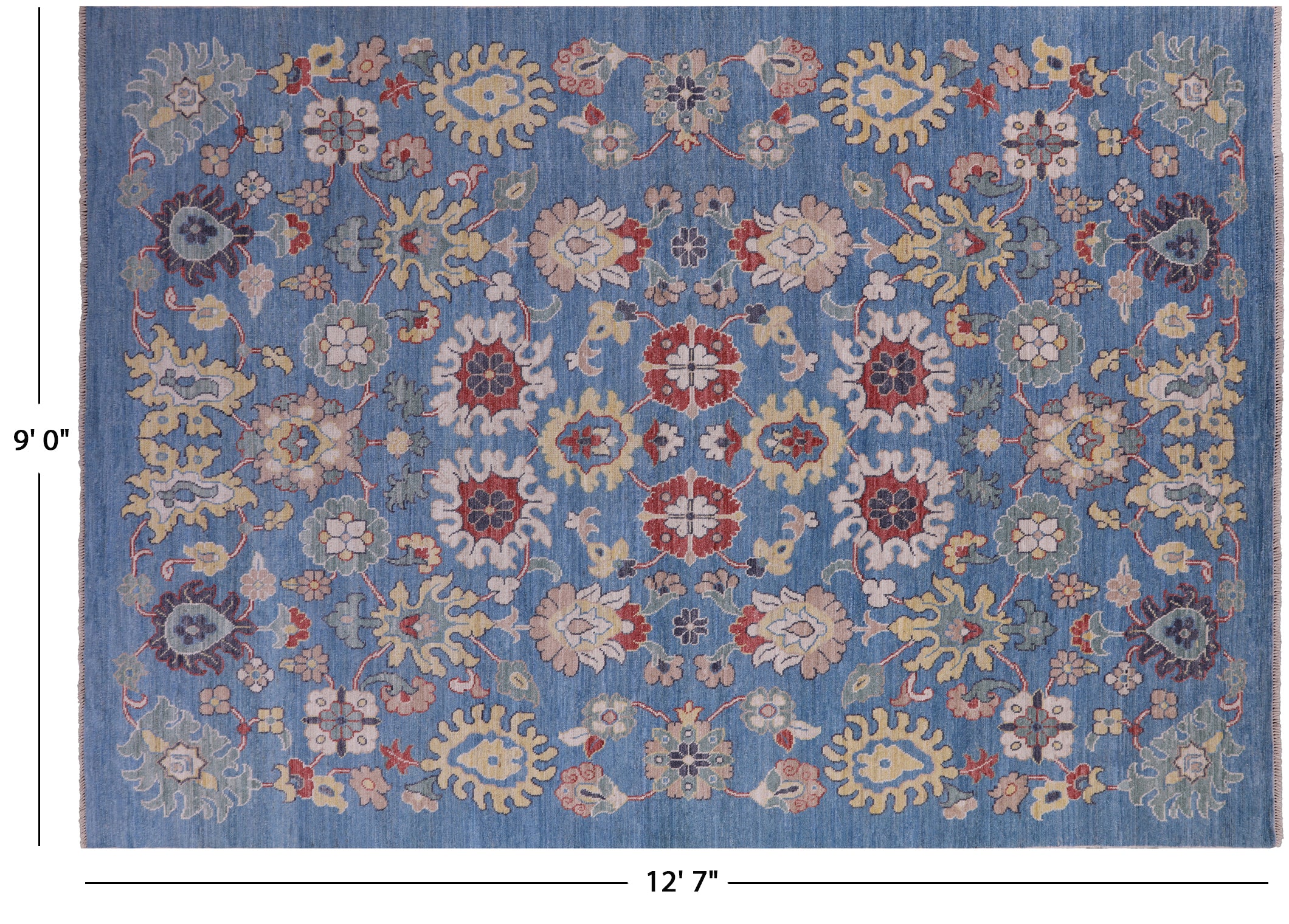 Blue Wool On Wool Turkish Oushak Handmade Rug 9' 0" X 12' 7" - Q10501
